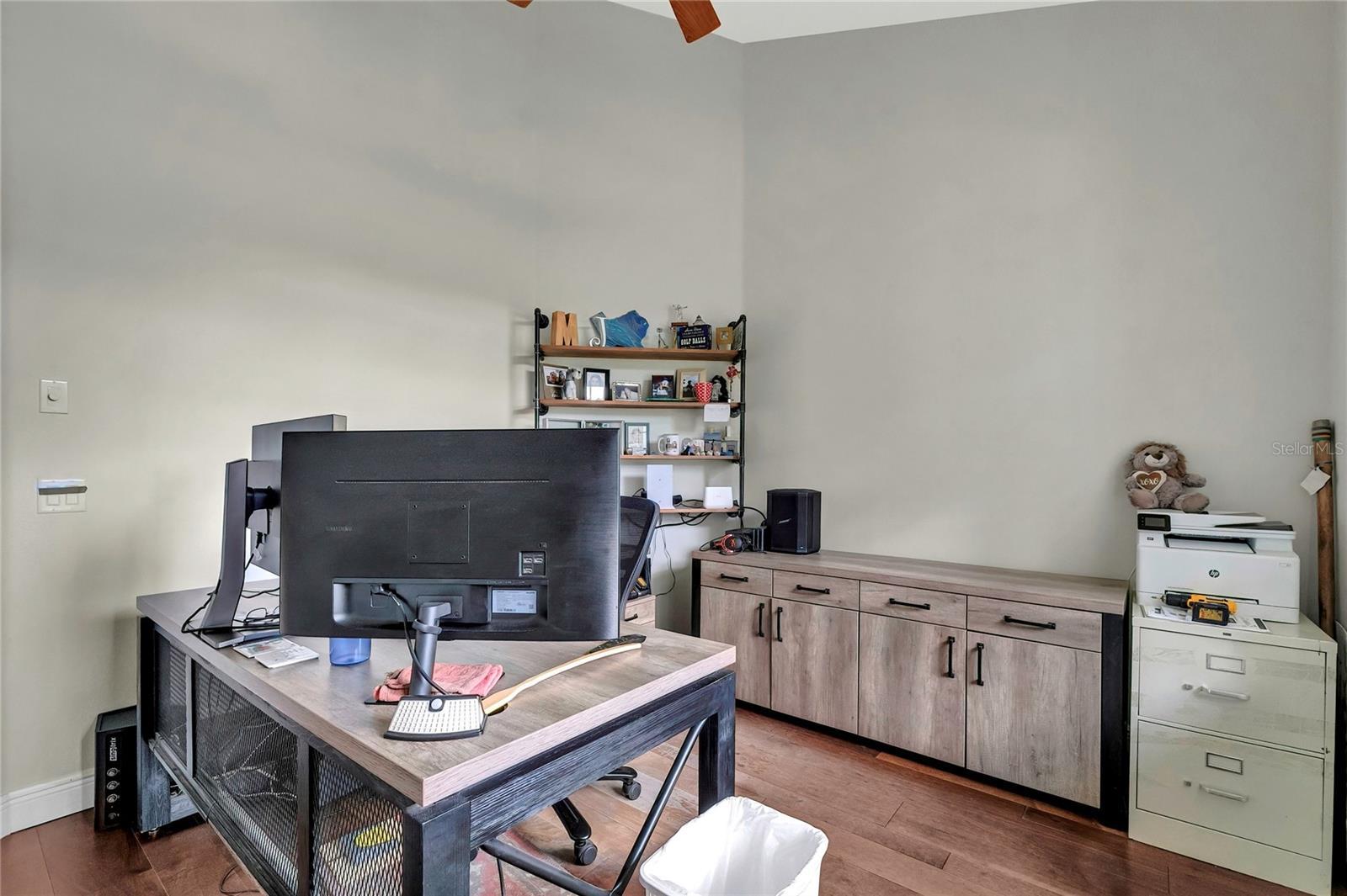 - Cathedral Ceiling(s), Ceiling Fans(s), Eat-in Kitchen, High Ceilings, Kitchen/Family Room Combo, Open Floorplan, Primary Bedroom Main Floor, Solid Surface Counters, Solid Wood Cabinets, Walk-In Closet(s), Window Treatments