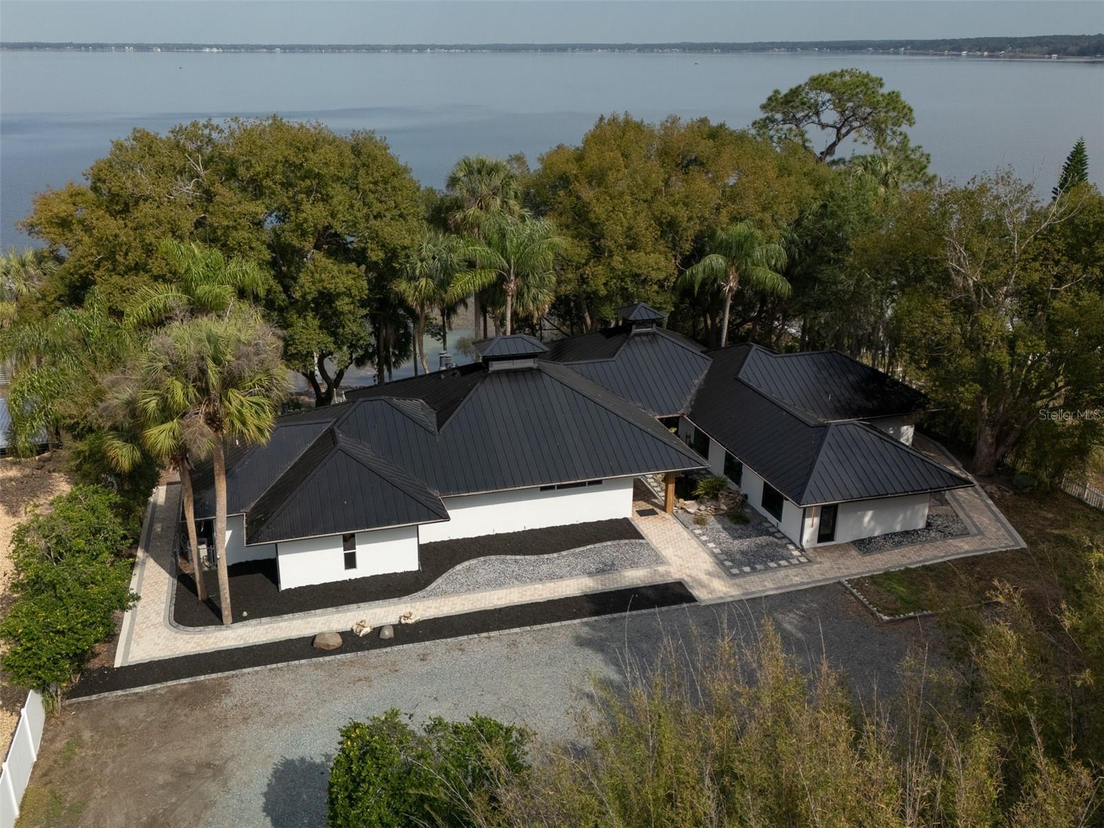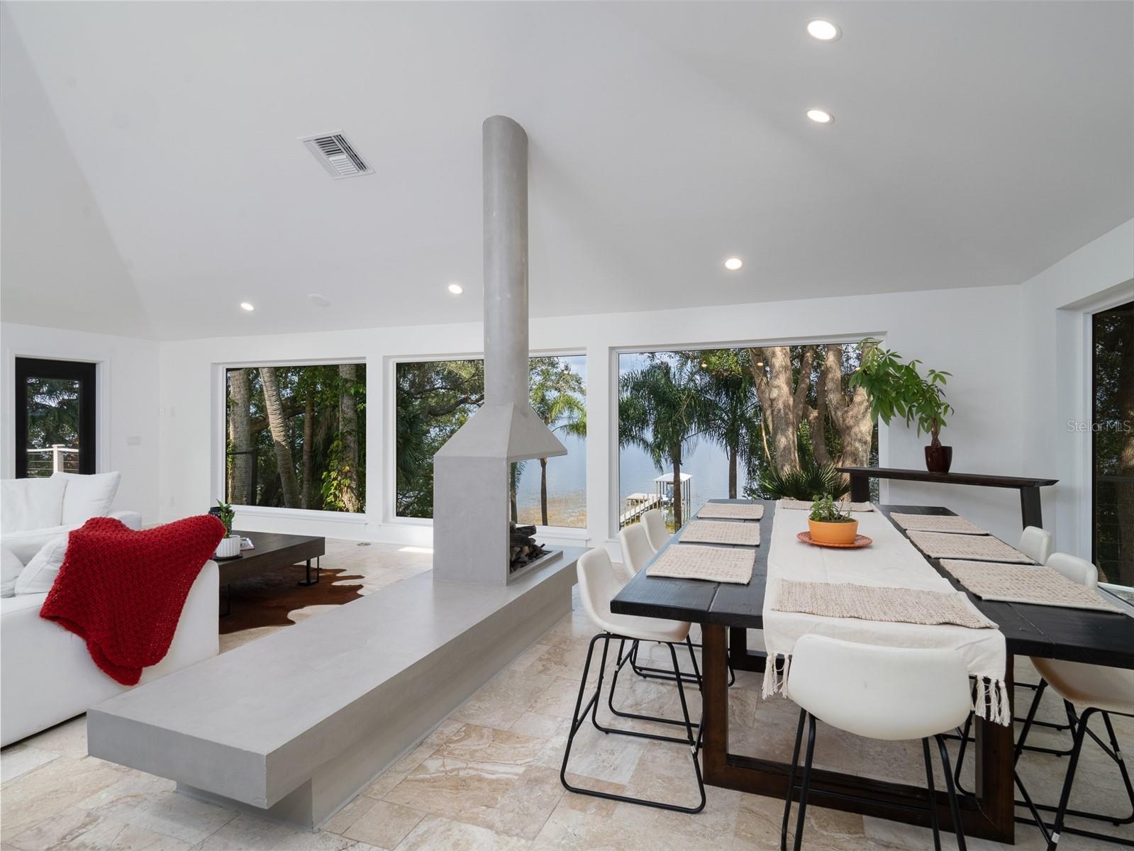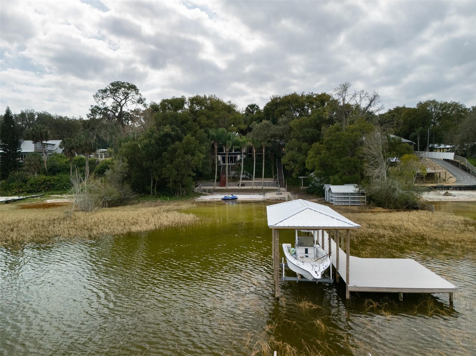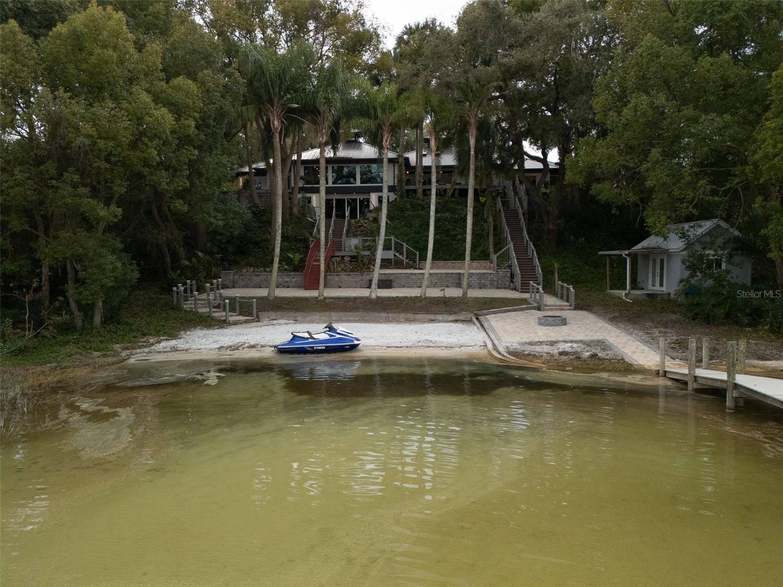 Located on the shores of Lake Weir, this 1.23-acre property offers the ultimate lakeside retreat. Boasting 100 feet of private beachfront and a dock with a boat lift, it's a paradise for water enthusiasts. The two-story home is designed to maximize natural light, with large windows throughout that provide sweeping views of the lake and the stunning backyard oasis. The home features 3 spacious bedrooms, 4 full bathrooms, a sauna, and a gym. The open living and dining area centers around a cozy fireplace, creating the perfect space for relaxation and entertaining. The lower level offers a versatile family room/guest suite, complete with a kitchenette and a Murphy bed, providing a private retreat for guests. Step outside through sliding doors to discover an inviting outdoor kitchen with a fireplace, a spacious patio, and stairs that lead you directly to the water. This exceptional property blends luxurious living with the best of lakeside living, making it an opportunity you won’t want to miss!