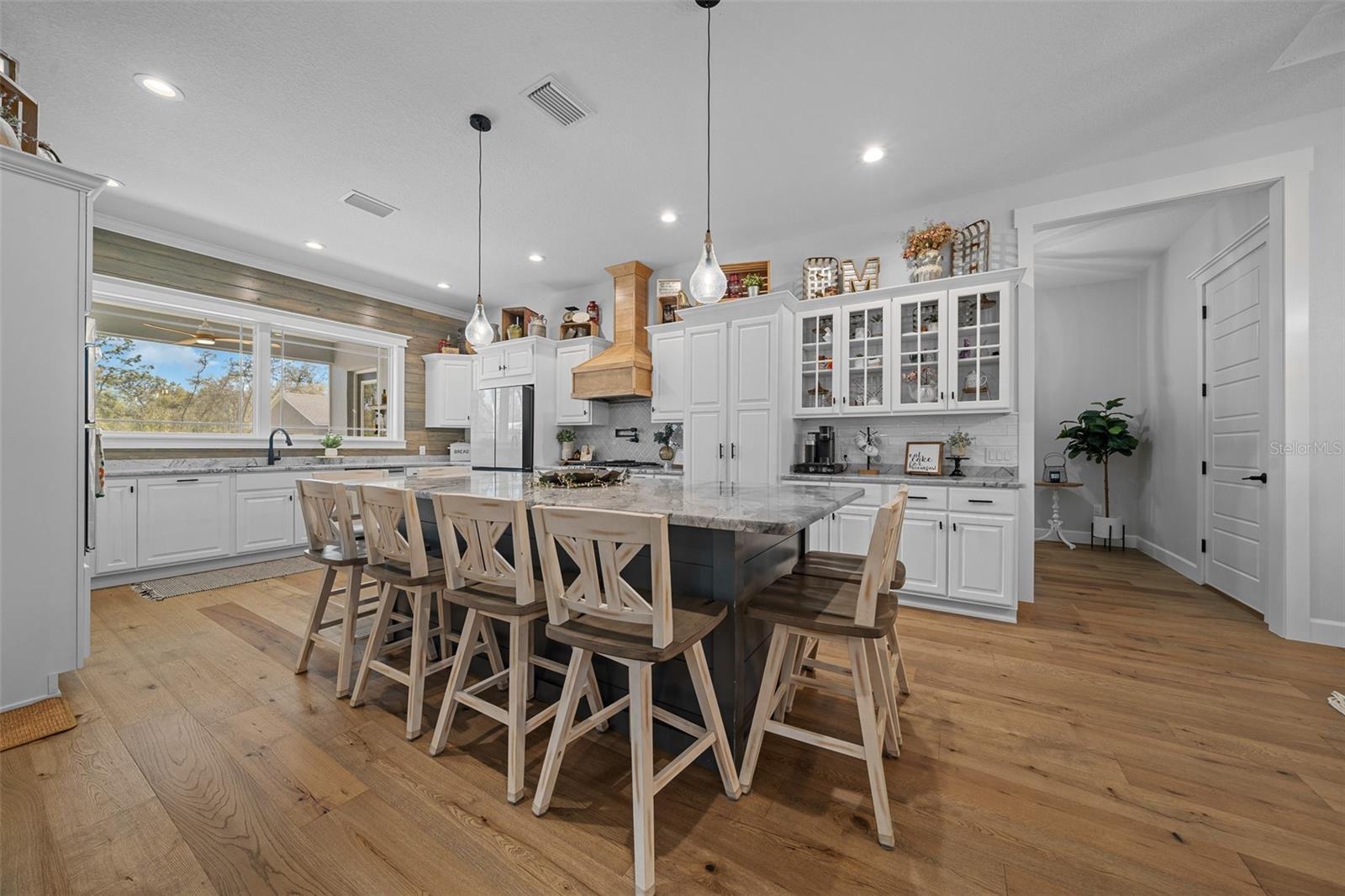 This Custom Built Dream Home is nestled on just under 4 acres in this horse friendly Rolling Hills Gated Community of Avonlea of Smith Lake. This professionally landscape pool home offers a spacious property with 4 bedrooms and 3 full bathrooms and 2 half baths. Bedrooms offer generous walk-in closets, providing plenty of storage. Enjoy the convenience of a walk-in pantry, luxurious primary bathroom with tub and dual faucet walk in shower. The Mother in law Suite is great for family or guests. The heart of the home is the open kitchen and dining area for your many family gatherings. The cozy electric fireplace adds warmth and charm. Step outside to enjoy the large screened-in lanai that opens to a sparkling salt-water pool and hot tub offering the perfect oasis for relaxation and fun along with a Tiki Bar and cooking area for entertainment. A oversized 2 car garage provides plenty of space for vehicles and equipment. The inviting front porch and back lanai showcases breathtaking views that will make each day feel special with recently added electric fireplace and tile flooring to the back lanai for those cool nights spent with family. For hobbyists or those in need of extra space, a detached workshop with over 3,000 square feet awaits, 2 large roll up doors large enough for your Class A Motor-Home and Boat is ready to accommodate your projects and storage needs, includes full bath, kitchen area, custom bar and large loft area for additional space and additional attached buildout on shop to accommodate your horses or additional shop needs. The property includes underground utilities, 250 gal. propane tank that services the stove, pool heater and 2 instant hot water heaters. The community includes a Lake Access to the spring fed Smith Lake, including a boat ramp, dock and a community area on the lake. So many custom features such as subway tiles, glass cabinetry, wood work, brick fireplace, chandeliers, multiple A/C units, Engineered hardwood floors, along with using energy efficient building materials.