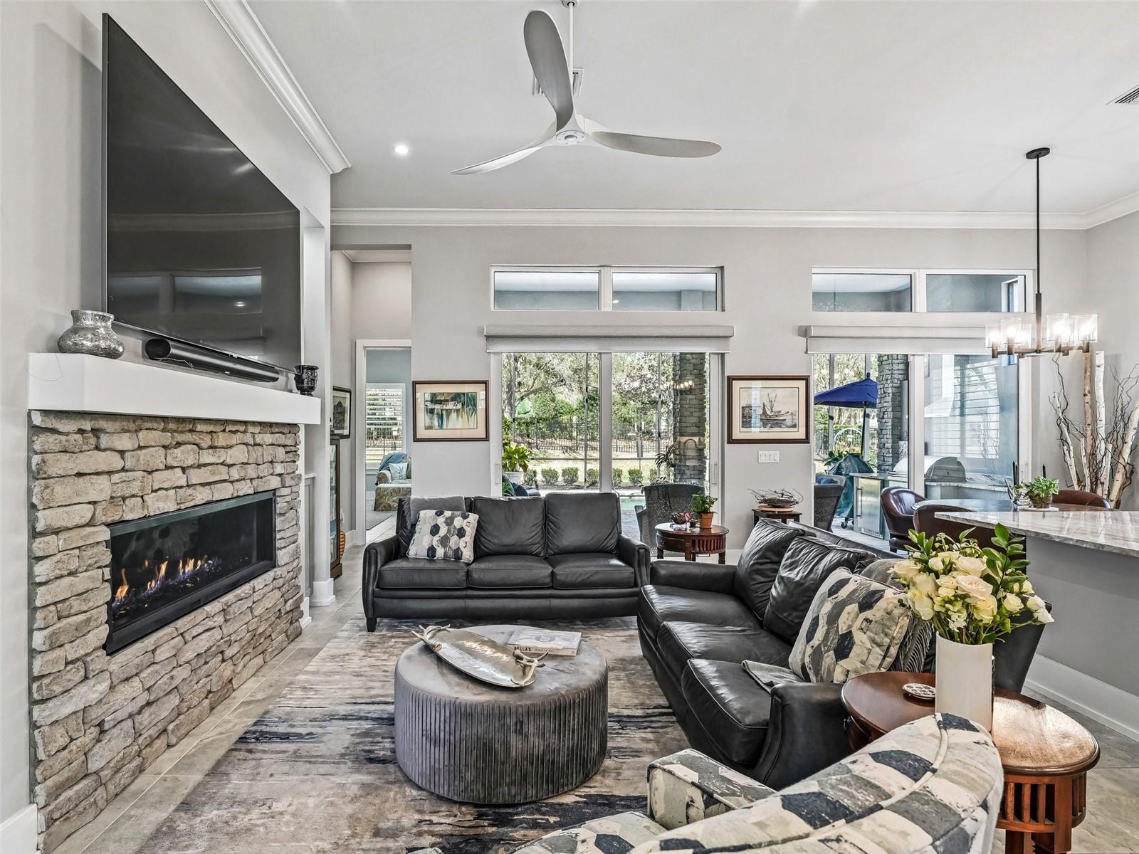 - Ceiling Fans(s), High Ceilings, Kitchen/Family Room Combo, Open Floorplan, Primary Bedroom Main Floor, Solid Wood Cabinets, Split Bedroom, Stone Counters, Walk-In Closet(s), Window Treatments