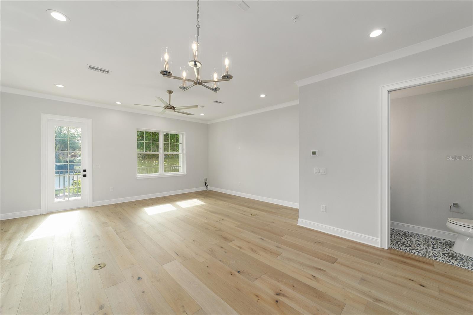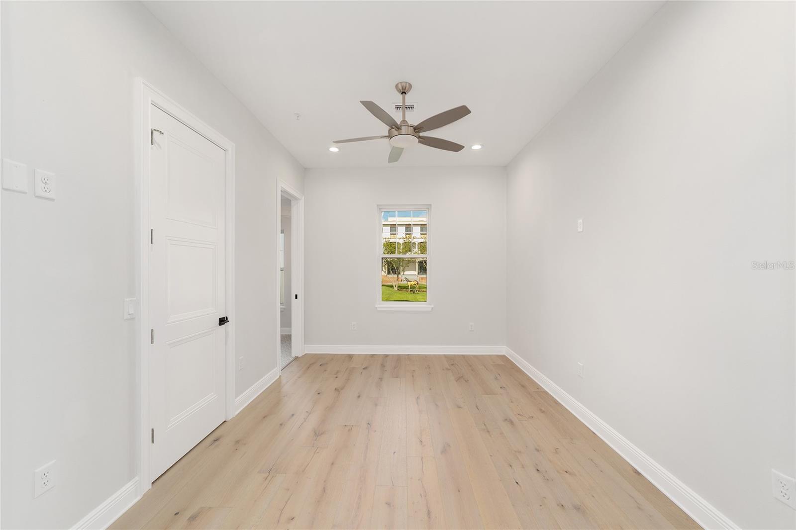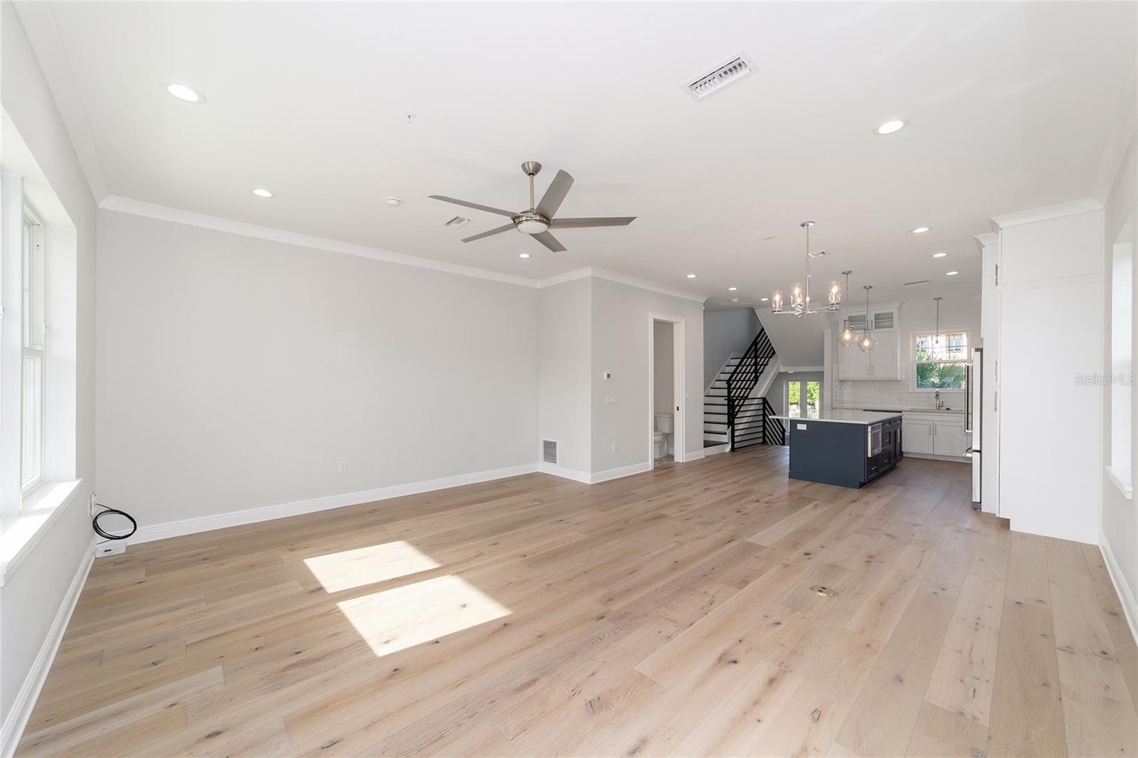 - Ceiling Fans(s), Crown Molding, High Ceilings, Kitchen/Family Room Combo, PrimaryBedroom Upstairs, Solid Surface Counters, Solid Wood Cabinets, Split Bedroom, Stone Counters, Thermostat, Walk-In Closet(s)