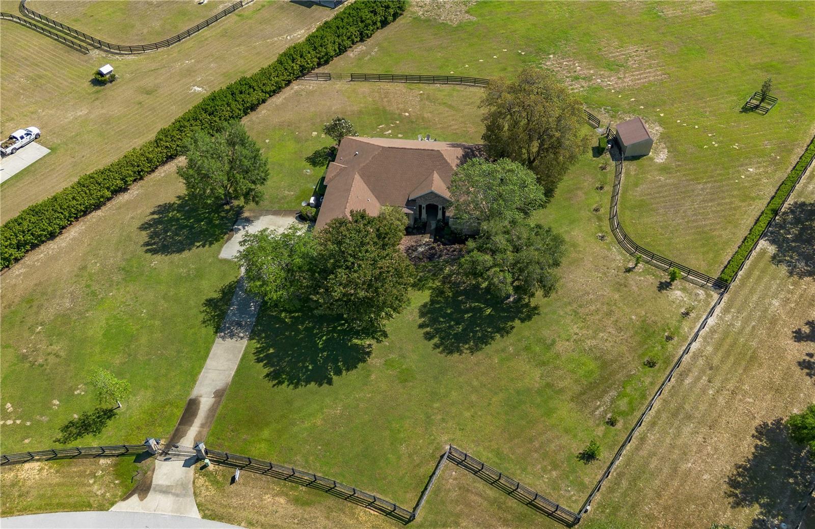 Discover this beautifully curated, turnkey 3.49-acre estate in the gated Estates at Pleasant Hill. Just 15 minutes from the World Equestrian Center and 5 miles to HITS, it's an ideal option for those wanting to experience the charm of Horse Country without the demands of full-sized farm management. Tucked away on a quiet dead-end street, the property welcomes you with manicured landscaping and a covered front entry, leading into a custom ranch-style home thoughtfully designed for comfort and style. The split-bedroom floor plan features 3 bedrooms and 3 full baths, offering both privacy and functionality. Inside, crown molding, arched doorways, decorative recesses, and soaring ceilings are complemented by an abundance of natural light. The spacious family room opens through French doors to an insulated, air-conditioned Florida room—an ideal space to relax and take in views of the property year-round. The kitchen is a standout, with solid cherry cabinetry, top-tier KitchenAid appliances, a large island with bar seating, breakfast nook, and a walk-in pantry. The primary suite is a private retreat with its own Florida room access, while the additional bedrooms and baths are generously sized and tastefully finished. Step outside to cleared, level land fully enclosed by four-board fencing with no-climb wire. A grass paddock with an electric-equipped run-in shed provides the option to have a horse if desired, and the 1.5-mile, 60-foot-wide community bridle path offers scenic space to ride right at home. Additional highlights include designer furnishings throughout, a 24kW Generac whole-house generator with 500-gallon propane tank, water softener, and AC units with anti-allergen micro lights. Fruit trees—including peach, lime, fig, banana—and berry shrubs add a flavorful touch to this peaceful retreat. This move-in-ready estate delivers upscale rural living in one of the area’s most desirable equestrian communities. Fully furnished with Ethan Allen and Pottery Barn furniture.