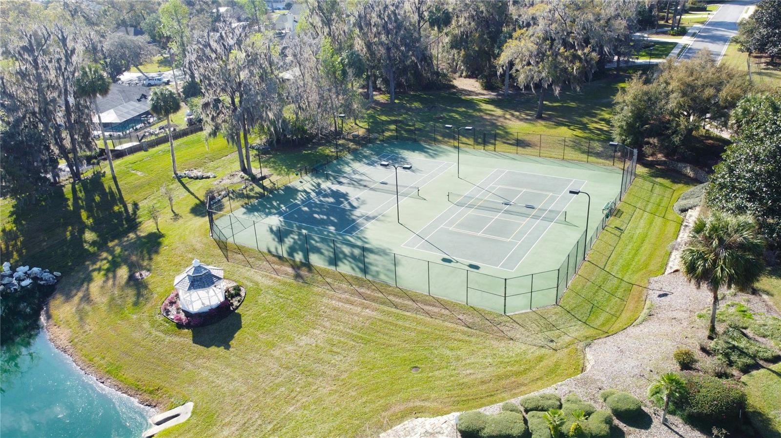 - Lighting, Outdoor Kitchen, Private Mailbox, Sliding Doors, Tennis Court(s)