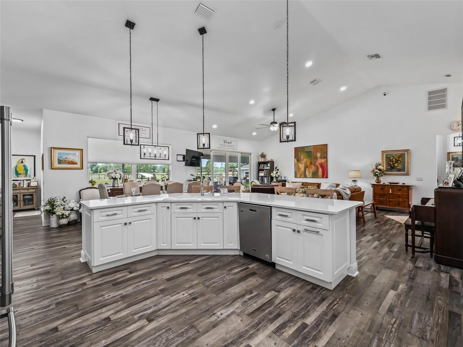 - Built-in Features, Cathedral Ceiling(s), Ceiling Fans(s), Eat-in Kitchen, High Ceilings, Open Floorplan, Solid Wood Cabinets, Split Bedroom, Stone Counters, Tray Ceiling(s), Walk-In Closet(s)