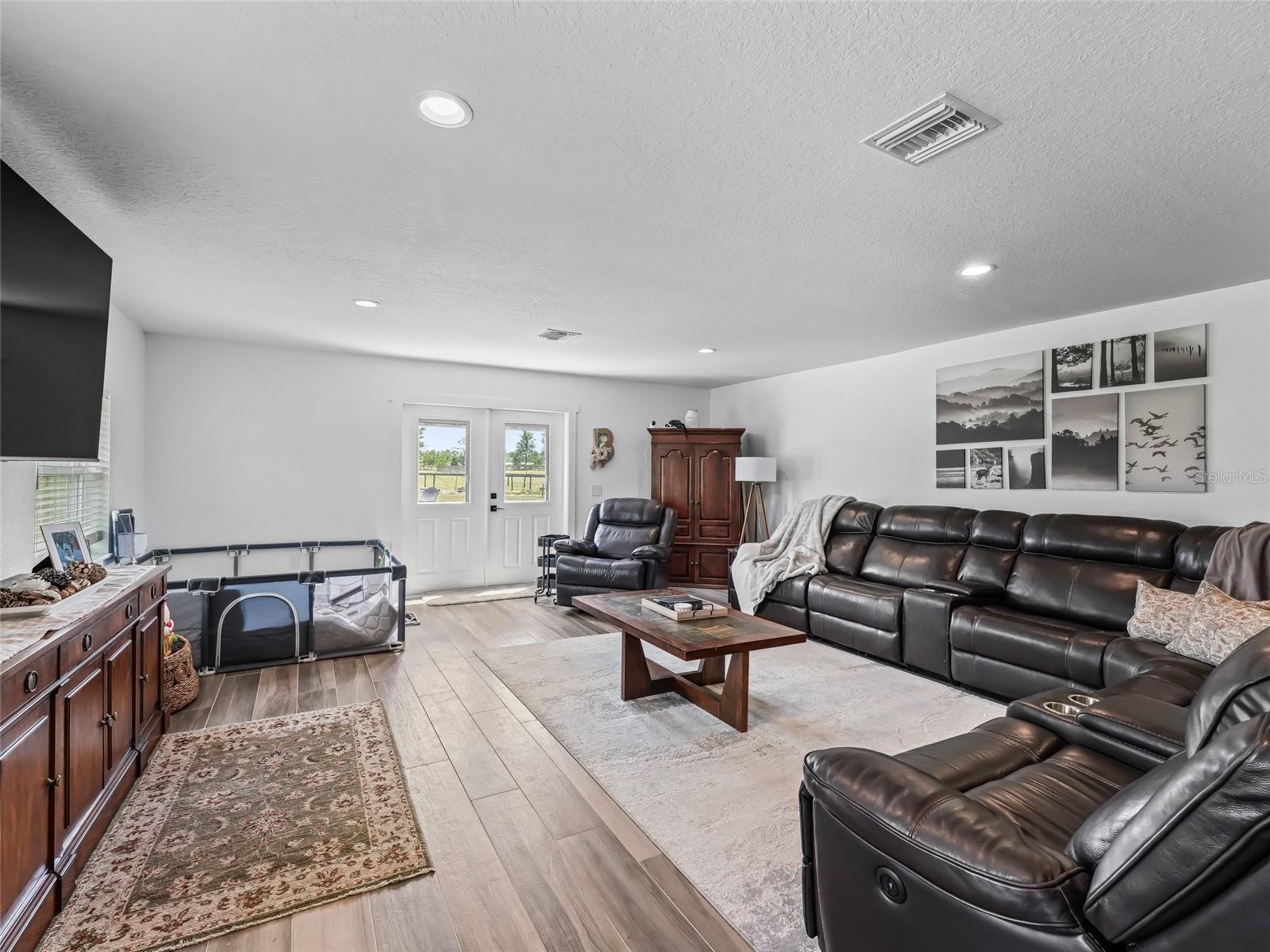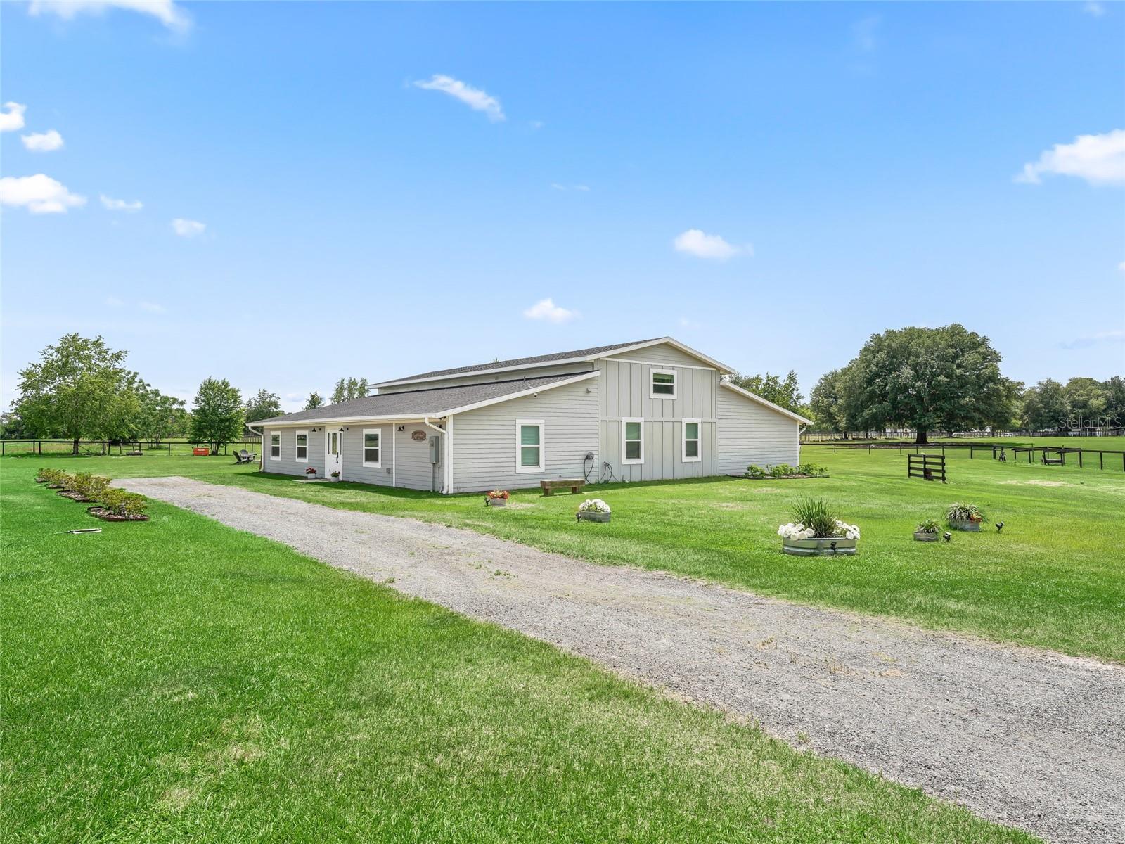 Welcome to this stunning 10-acre estate, offering the perfect blend of modern comfort and rural functionality. Built in 2020, the spacious 4-bedroom plus a den, and 3-bath home spans over 2,700 square feet and features a bright, open floor plan with soaring ceilings and luxury vinyl plank flooring throughout—absolutely no carpet. Freshly painted inside and out, the home exudes a clean, contemporary feel in elegant grey tones.The chef’s kitchen is a showstopper with quartz countertops, solid wood cabinetry, and a seamless flow into the main living area—ideal for entertaining. Step out onto the large screened patio and enjoy the peaceful views of your private acreage.But the crown jewel of this property is the expansive multi-functional barn. Designed with flexibility in mind, the barn includes:A dedicated office with wood-look tile flooring, perfect for business or creative spaceTwo full bathrooms and a laundry room, serviced by its own septic systemFive covered bays, ideal for parking vehicles, farm equipment, or trailersBuilt-in shelving for organized storageA charming covered porch for relaxing or working outdoorsNew perimeter fencing and cross-fenced paddocks, ready for livestock or horsesWhether you’re seeking a private country retreat, an equestrian setup, or space for your business and hobbies, this turnkey property checks every box. Don’t miss out on this rare opportunity to enjoy peaceful, upscale living with endless potential.