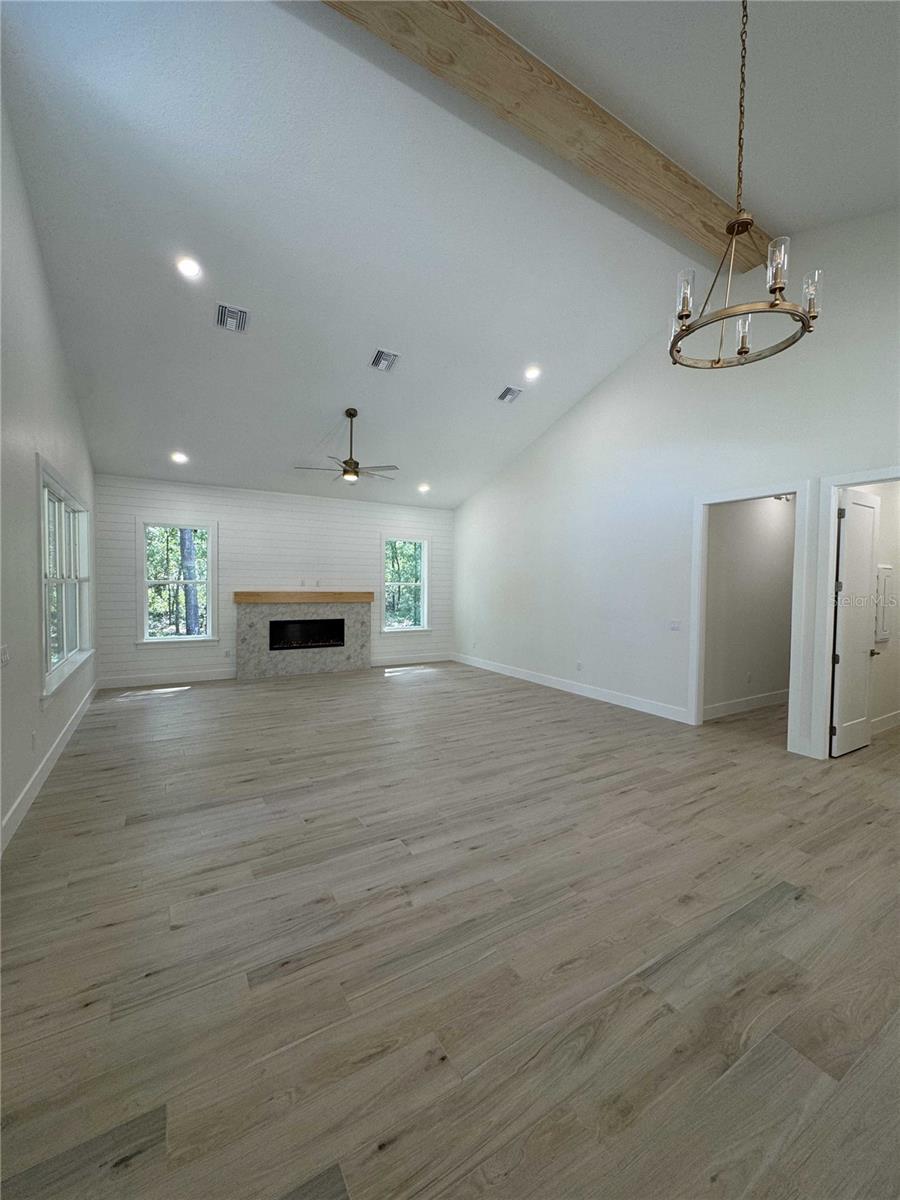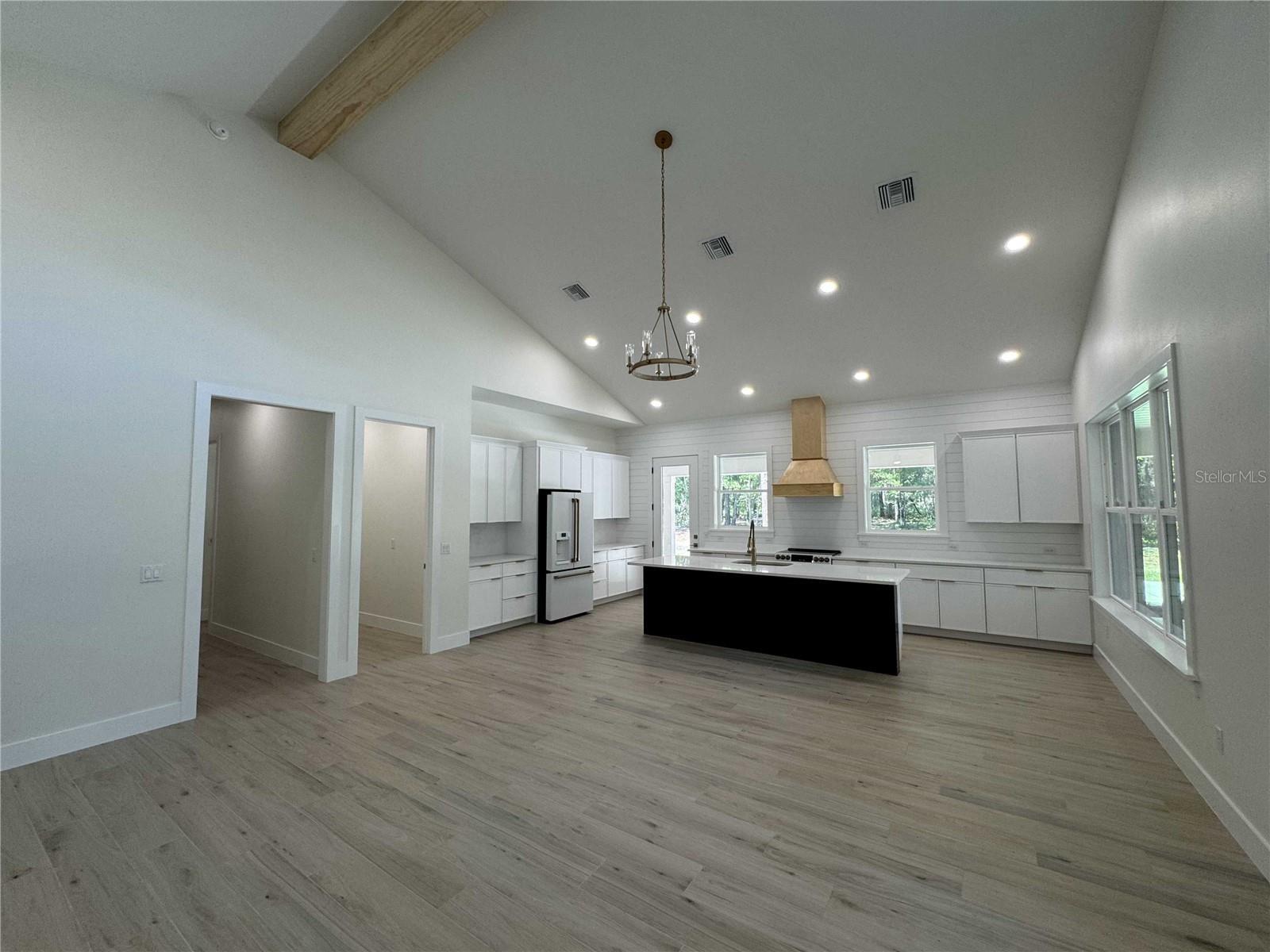 - Built-in Features, Cathedral Ceiling(s), Ceiling Fans(s), High Ceilings, Living Room/Dining Room Combo, Open Floorplan, Primary Bedroom Main Floor, Solid Surface Counters, Solid Wood Cabinets, Thermostat, Walk-In Closet(s)
