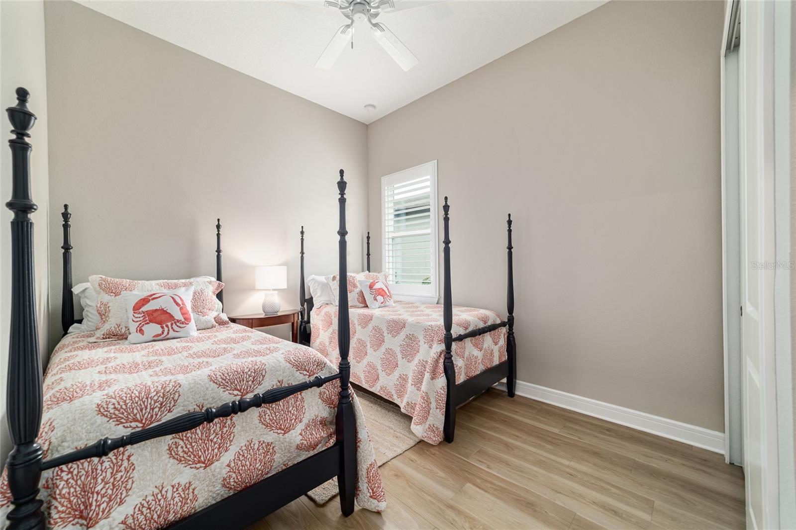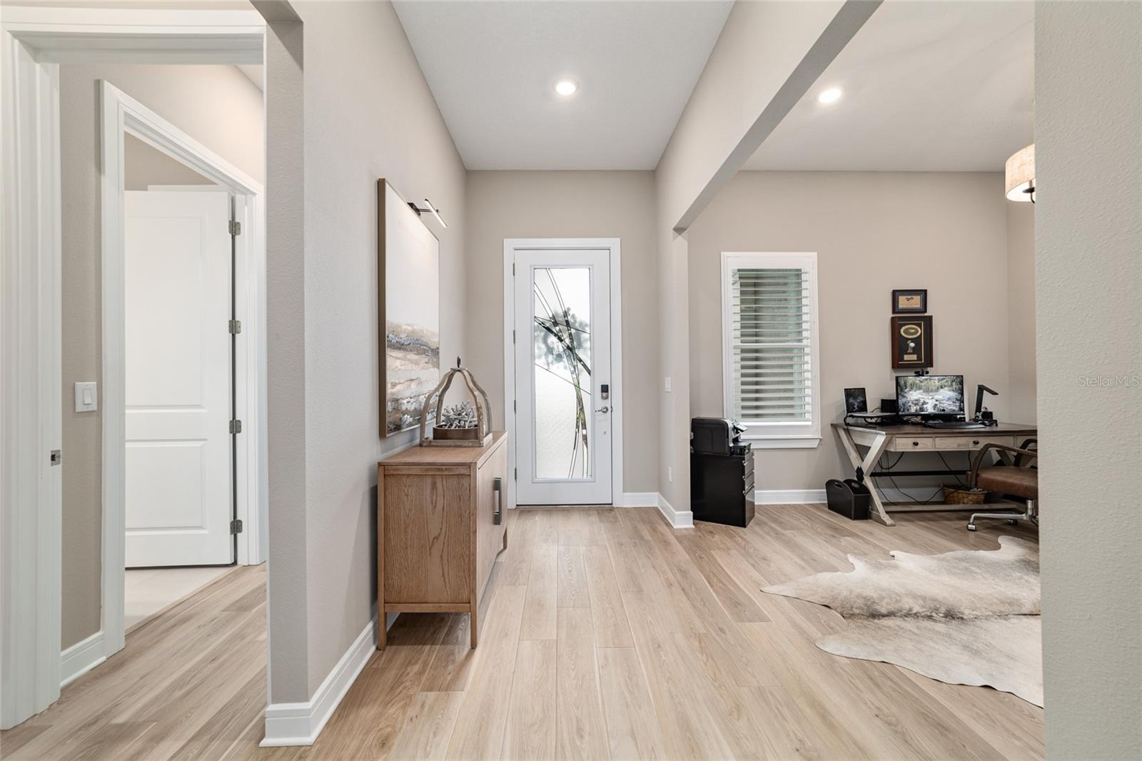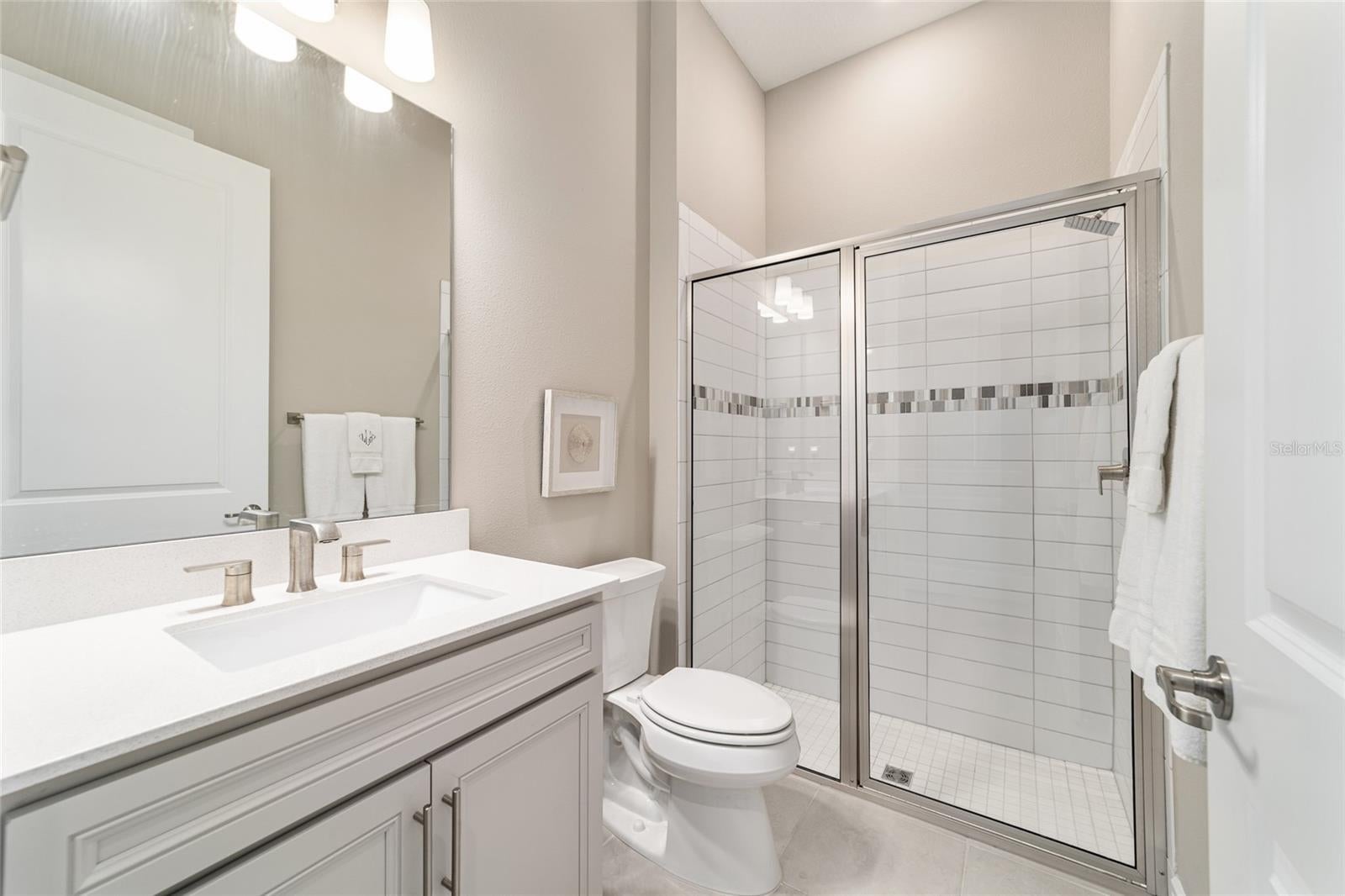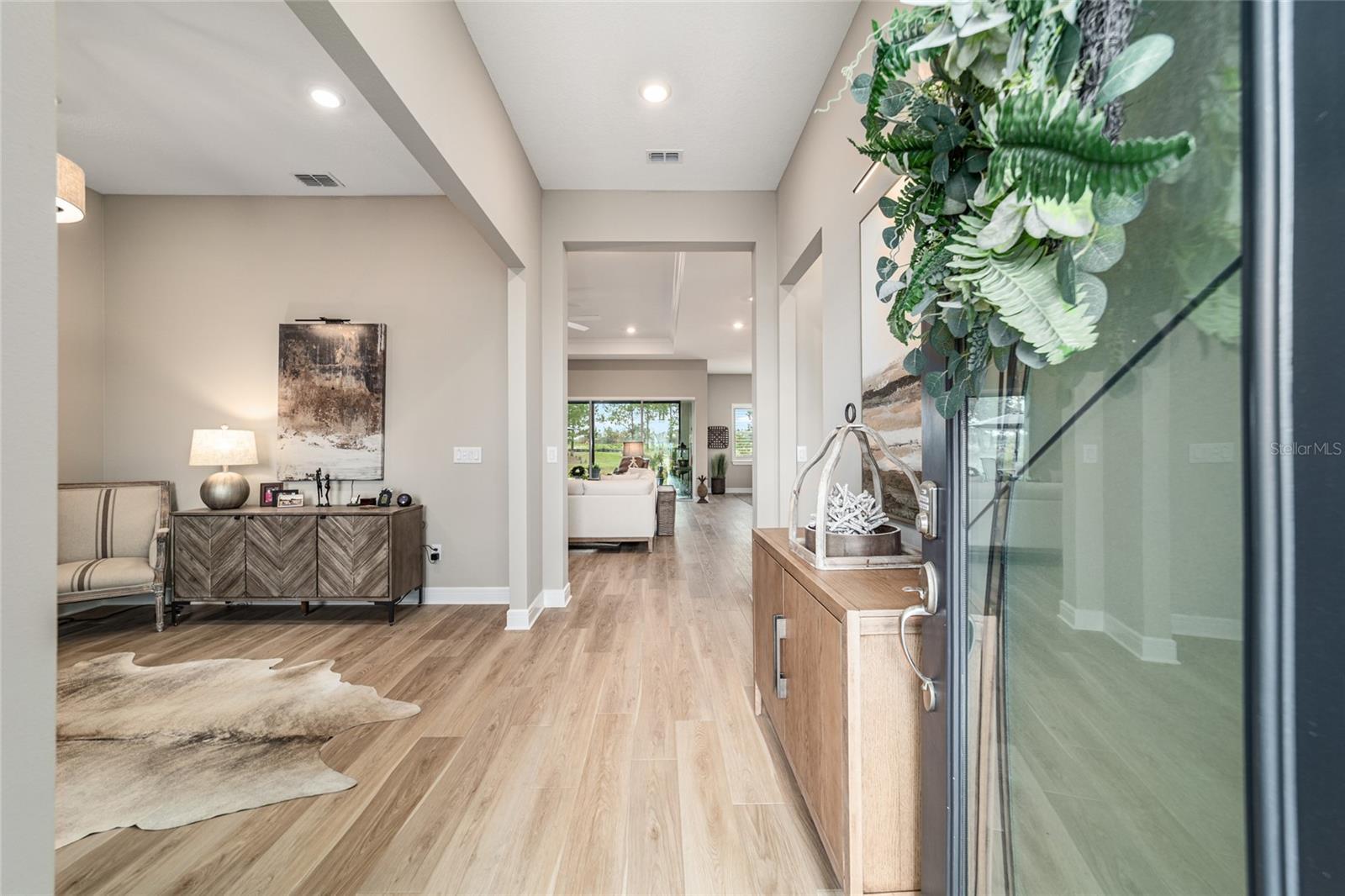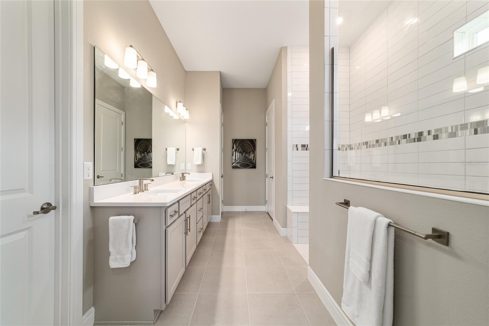 Golf Course Views and Luxury Await! Experience resort-style living at its finest in this almost-new 3-bedroom, 3-bath Stellar model home, complete with a bonus flex room and designer-inspired upgrades throughout. Nestled on a premium golf course lot within the gated 55+ Stone Creek golf community, this meticulously designed residence offers elegance, comfort, and breathtaking views. From the moment you arrive, you’ll be captivated by custom-designed landscaping, stacked stone accents, and charming Craftsman architectural details. A glass inset front door and covered entryway lead into a sophisticated and versatile open-plan living space featuring soaring 10'8" ceilings, LED downlighting, Plantation shutters, and stunning luxury vinyl plank flooring throughout—perfect for both everyday living and entertaining. The gourmet kitchen is a chef’s dream, showcasing designer Shaker-style white cabinetry with crown molding, quartz countertops, upgraded KitchenAid built-in stainless appliances with a wooden canopy hood, under and over-cabinet lighting, and a walk-in pantry for storage needs. A large island with pendant lighting overlooks the inviting gathering room, boasting a tray ceiling and recessed glass sliders leading to the covered lanai and birdcage patio—an ideal setting for relaxing or entertaining while enjoying priceless golf course views. The Owner's suite is a true retreat, offering serene golf course views, abundant natural light, a spacious walk-in closet, and a luxurious en suite bath. Pamper yourself in the spa-inspired bathroom, complete with a large, comfort-height double sink vanity and a Roman-style walk-in shower with a striking glass tile inlay, transom window, and seating ledge. Designed for versatility, the front guest bedroom with a bay window offers privacy with an en suite bath while the second guest bedroom provides flexible space for a hobby room. Additional features to appreciate include a laundry room equipped with a laundry tub, cabinets for storage and a folding area, and a catch-all mudroom leading to the three-car garage with epoxy-covered flooring, overhead storage, and ample space for a golf cart or workshop. This exceptional home is more than just a place to live—it’s a gateway to an active and engaging lifestyle. Immerse yourself in the vibrant community offerings, from championship golf and resort-style pools to a state-of-the-art health spa, a lifestyle department offering exciting excursions, entertainment, and so much more. Don't miss the opportunity to make this dream home yours!