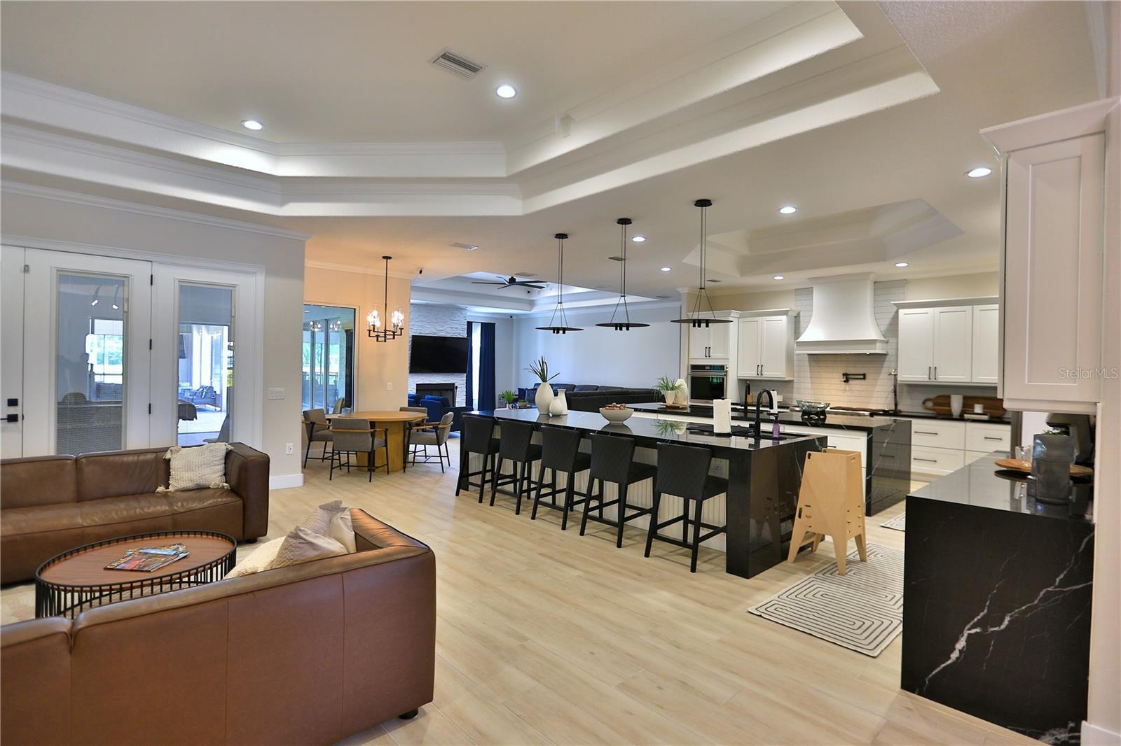 - Cathedral Ceiling(s), Ceiling Fans(s), Coffered Ceiling(s), Crown Molding, Eat-in Kitchen, Open Floorplan, Primary Bedroom Main Floor, Solid Surface Counters, Solid Wood Cabinets, Split Bedroom, Tray Ceiling(s), Walk-In Closet(s), Window Treatments