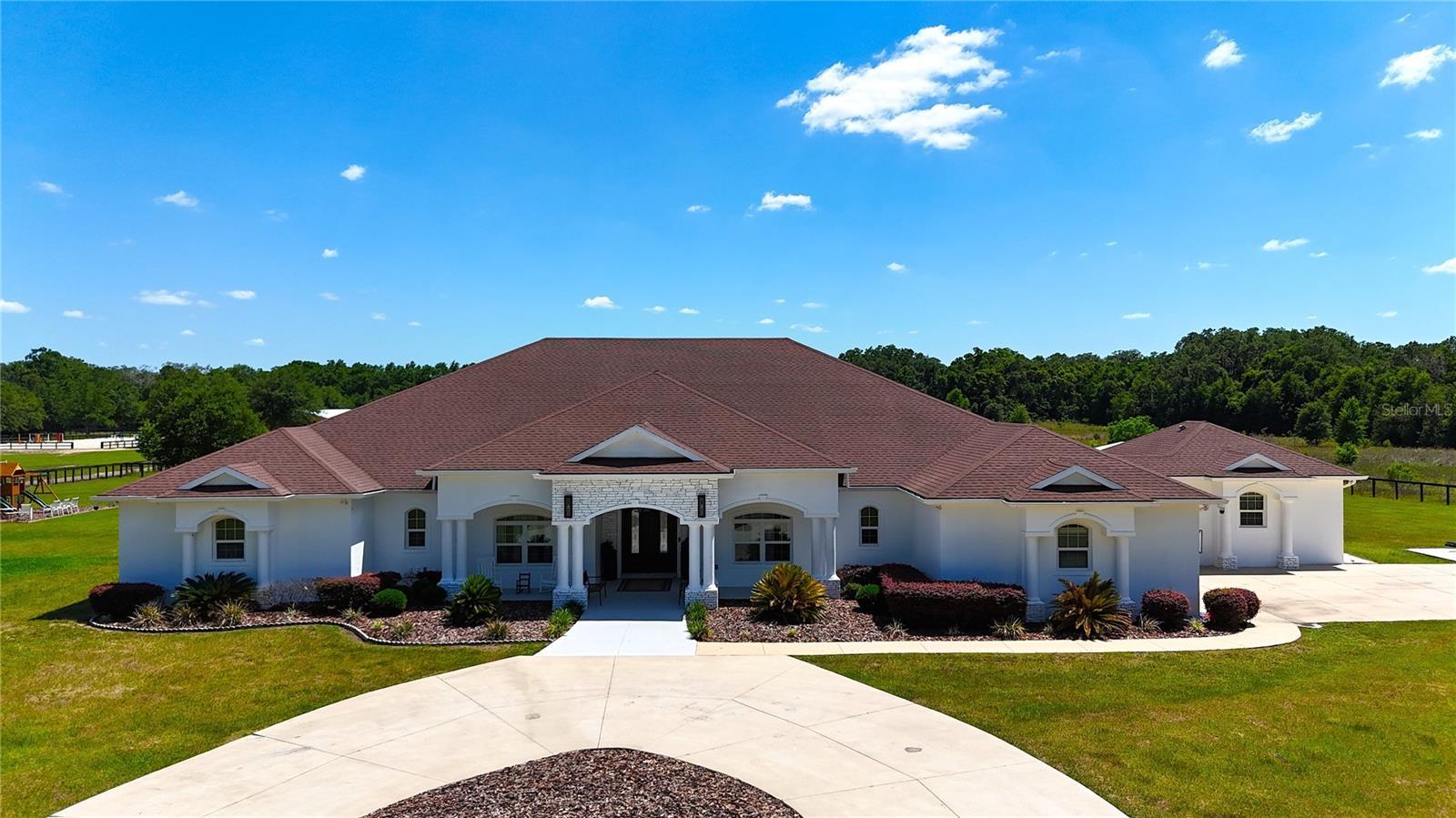Discover a captivating estate that redefines luxury in one of northwest Ocala's most sought-after areas. Spanning over 10 acres, this extraordinary property offers an exceptional blend of elegance and seclusion, perfectly situated among premier destinations such as the Adena Golf and Country Club, Golden Ocala Golf & Equestrian Club, and the renowned World Equestrian Center. Residents will relish a dynamic lifestyle filled with world-class equestrian events, top-notch golfing, delightful dining options, shopping, and year-round festivities. Step into the meticulously maintained main residence, where every detail epitomizes superior craftsmanship. From the grand entryway with soaring tray ceilings to the beautiful crown molding and modern light fixtures, elegance abounds. The expansive chef's kitchen is a culinary dream, featuring two islands, Brazilian marble countertops, and high-end appliances, including a gas range—perfect for both everyday cooking and entertaining. Unwind in the cozy media room, designed for the ultimate movie experience with its projector and plush theater seating. The luxurious primary suite serves as a tranquil retreat, complete with a private sitting area featuring a cozy fireplace and direct patio access. The spa-like en-suite bath boasts a soaking tub, a walk-in shower, dual vanities, and luxurious marble flooring. Step outside to the sprawling patio that opens to an impressive indoor pool area, a true entertainer's paradise equipped with a fireplace and TV, as well as a sparkling pool and spa. Adjacent to the main living area, a well-appointed covered outdoor kitchen simplifies outdoor dining, making al fresco meals a delight. For guests or extra family, a delightful guest cottage that reflects the elegance of the main home features its own screened-in patio. Equestrian lovers will value the option to construct a barn on the current concrete pad, accompanied by extensive pastures that can be customized for your horses' requirements. This estate embodies a lifestyle of unparalleled luxury and functionality, offering the perfect sanctuary for those who seek the ultimate equestrian living experience. Come and see for yourself the extraordinary possibilities that await!