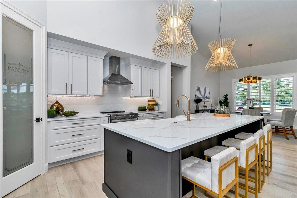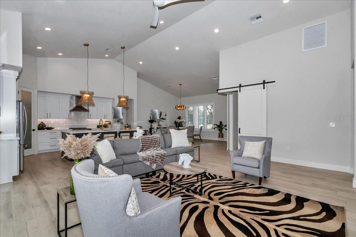 - Ceiling Fans(s), Eat-in Kitchen, Kitchen/Family Room Combo, Open Floorplan, Solid Wood Cabinets, Split Bedroom, Stone Counters, Thermostat, Tray Ceiling(s), Vaulted Ceiling(s), Walk-In Closet(s)