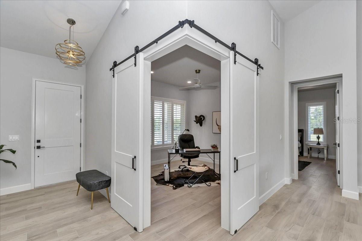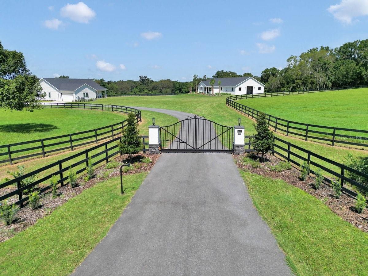 Under contract-accepting backup offers. Exceptional 34-acre equestrian estate. Discover this new, turnkey horse property on 33.53 acres of high and dry land, thoughtfully designed for horse and rider. Offered as two separate parcels, this estate combines luxury living with premium equestrian amenities. The custom four-bedroom, 2.5-bath home features elegant porcelain tile throughout, brushed gold tone fixtures, soaring ceilings, quartz countertops and a spacious front porch with paver flooring, ideal for relaxing and taking in the views. Two lighted electric gated entrances plus a third separate drive offer ideal access for trailer parking or client ship-ins. Equestrians will appreciate the 10-stall block barn featuring a 400-square-foot studio apartment with kitchen, full bath, laundry with abundant cabinetry, feed room, tack room, hot/cold wash stall and a breezy 16-foot-wide center aisle. Each 12-by-12-foot matted stall includes lights and fans for optimal comfort. Water is run to all six paddocks and two large fields, all conveniently near the barn. Enjoy a 4/10-mile grass uphill gallop, well-established pastures and ample room to add a cross-country course, arenas or additional structures. Extensive landscaping surrounds the home, barn and gated entries, all with irrigation. Don't miss this extremely rare opportunity to own a new equestrian estate.