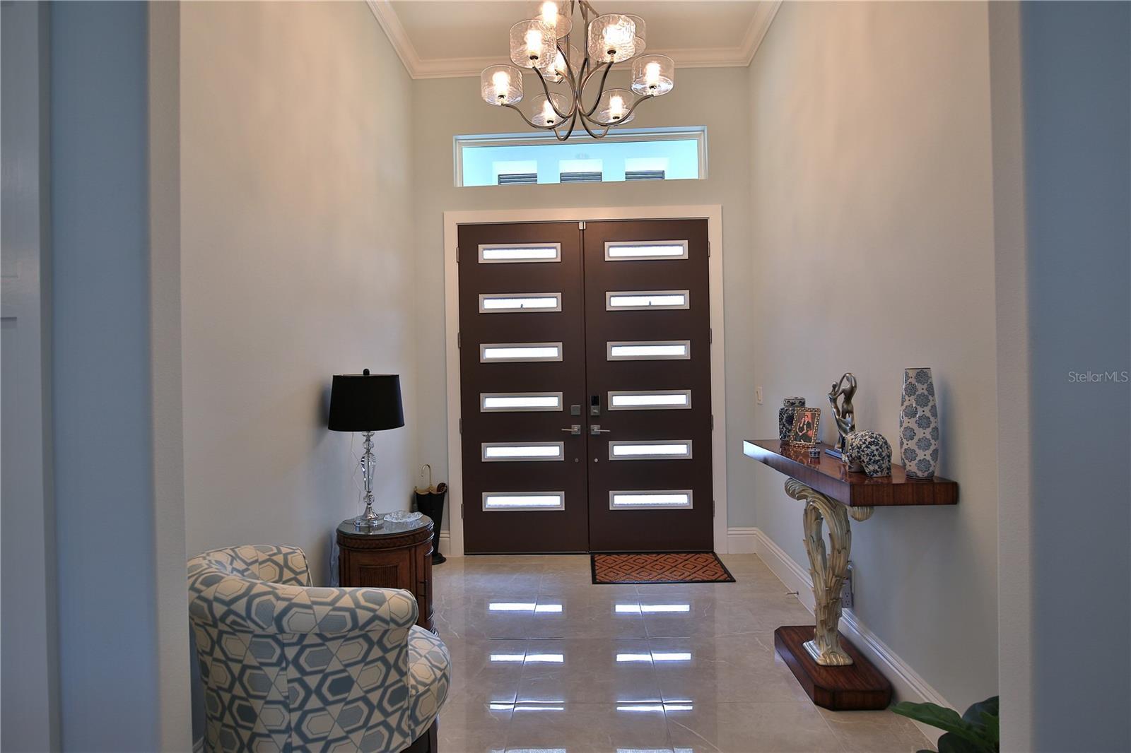 Located in Hunt Club at Fox Point residence, ideally situated on an expansive 0.55 +/- acre lot. This luxurious property features an open and airy layout, ideal for modern living and entertaining. Step inside to find a spacious living area that seamlessly connects to a gourmet chef's kitchen, equipped with elegant custom cabinetry, quartz countertops, a large center island, and top-of-the-line appliances. Enjoy three generous en-suite bedrooms, including a serene master suite with a private bathroom oasis. There's also a bonus area currently set up as a workout room. The office, bathed in natural light, has a large window with beautiful views, making it perfect for work or study. Step into the inviting living area, where retractable glass sliding doors open up a versatile space that can be transformed into a pool table area, bar, game room, or media room, tailored to fit your lifestyle. This space seamlessly connects to an additional set of sliding glass doors fitted with sun-blocking electric shades, leading to a spacious and screened enclosure, with access to a ½ bath perfect for hosting dinners or entertaining guests year-round. Venture outside to the expansive backyard, where a beautifully designed paver pad sets the stage for cozy evenings around a fire pit, making unforgettable memories with friends and family. Encircled by a privacy fence, this outdoor oasis offers a tranquil escape. Plus, a generously sized storage building equipped with electricity provides the convenience you need for all your tools, toys, and more. Additionally, this home is equipped with modern energy-efficient features, including a built-in Franklin Home Power Solar system and a garage charging station for your electric vehicle, ensuring sustainability and cost savings. Don’t miss your chance to make this house your forever home! Just minutes away from the World Equestrian Center and close to shopping, dining, and hospitals.