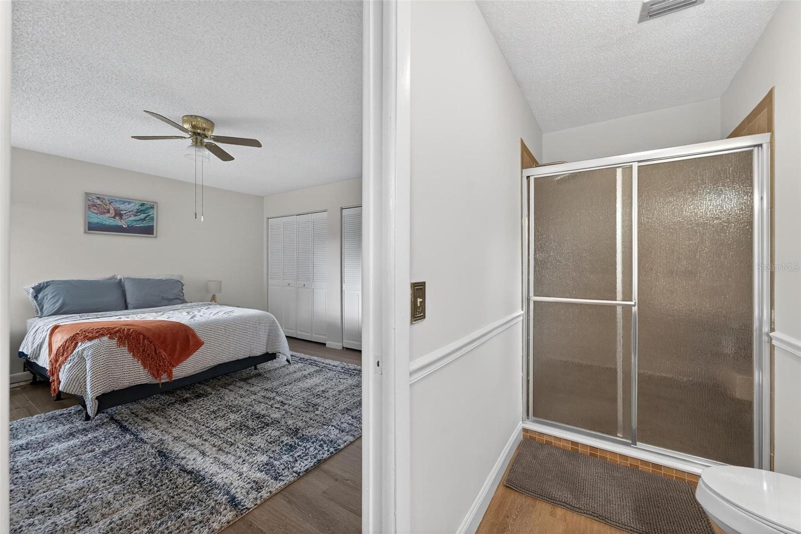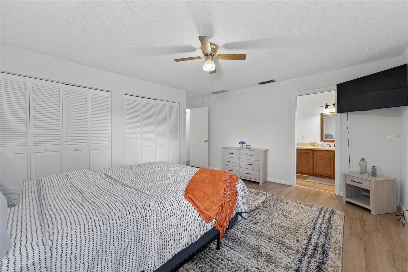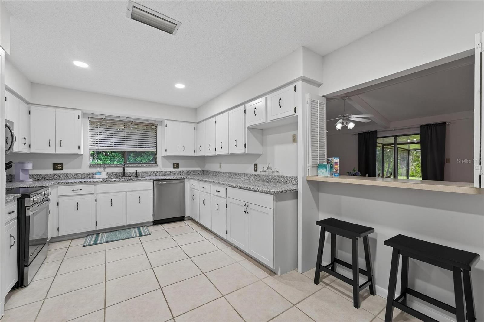 - Ceiling Fans(s), Eat-in Kitchen, High Ceilings, Open Floorplan, Primary Bedroom Main Floor, Solid Wood Cabinets, Stone Counters, Thermostat, Vaulted Ceiling(s), Walk-In Closet(s)