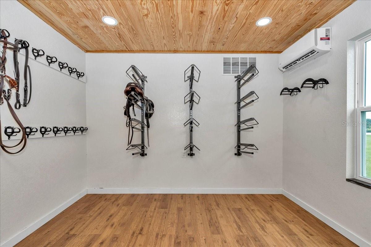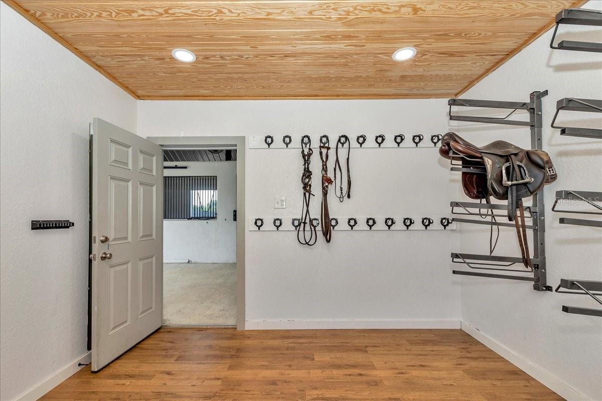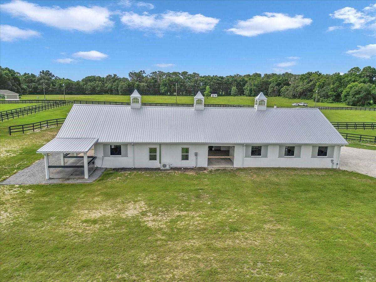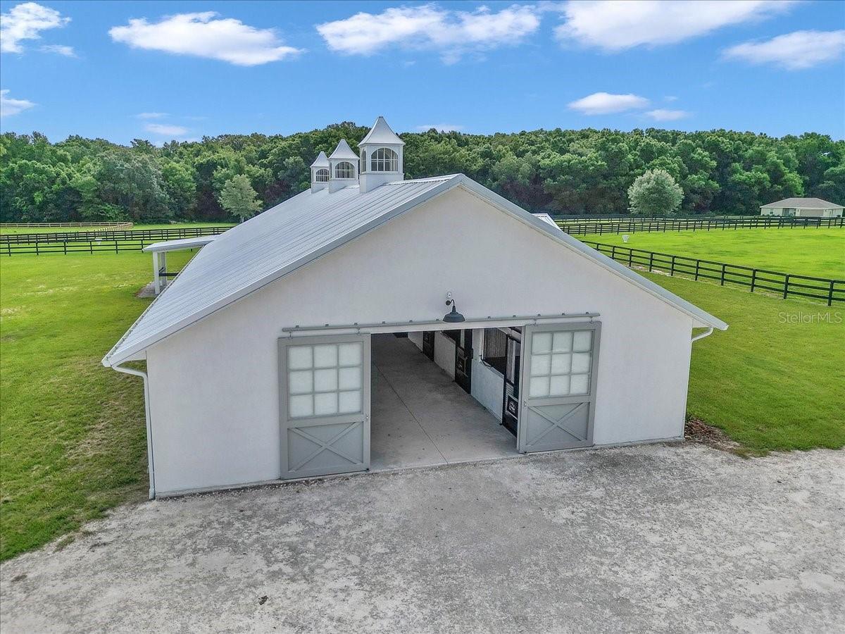 Discover this professionally designed horse property in a premier equestrian neighborhood surrounded by top-level riders from multiple disciplines. This serene and gated 10-acre farm is on a quiet, horse-friendly road with dedicated bridle paths, ideal for hacking out in peace. The property is thoughtfully designed for professional equestrians and passionate amateurs. The 10-stall block barn features spacious 12-by-12-foot matted stalls with windows to the aisle and outside, automatic waterers, fans and a light-filled center aisle with a finished metal ceiling. Inside, enjoy a fully equipped tack room with ample bridle and saddle storage, a laundry room and a half bath. Two under-roof wash/grooming stalls are conveniently just outside the main aisle. The 100-by-200-foot premier custom arena is professionally constructed with high-quality synthetic footing, curb and full irrigation, ideal for high-performance training. A concrete viewing pad allows guests and family to comfortably watch the action. The land is fully perimeter-fenced in four-board fencing, with three-board cross-fencing dividing six large grassy paddocks, all with auto waterers. The charming studio apartment has a cozy feel with a kitchenette, full bath and front porch overlooking the paddocks. The huge two-bay garage provides ample room for parking, storage and equipment. There is an RV hookup and additional covered storage adjoining the garage. This is a unique opportunity to live, train and ride in a special equestrian community.