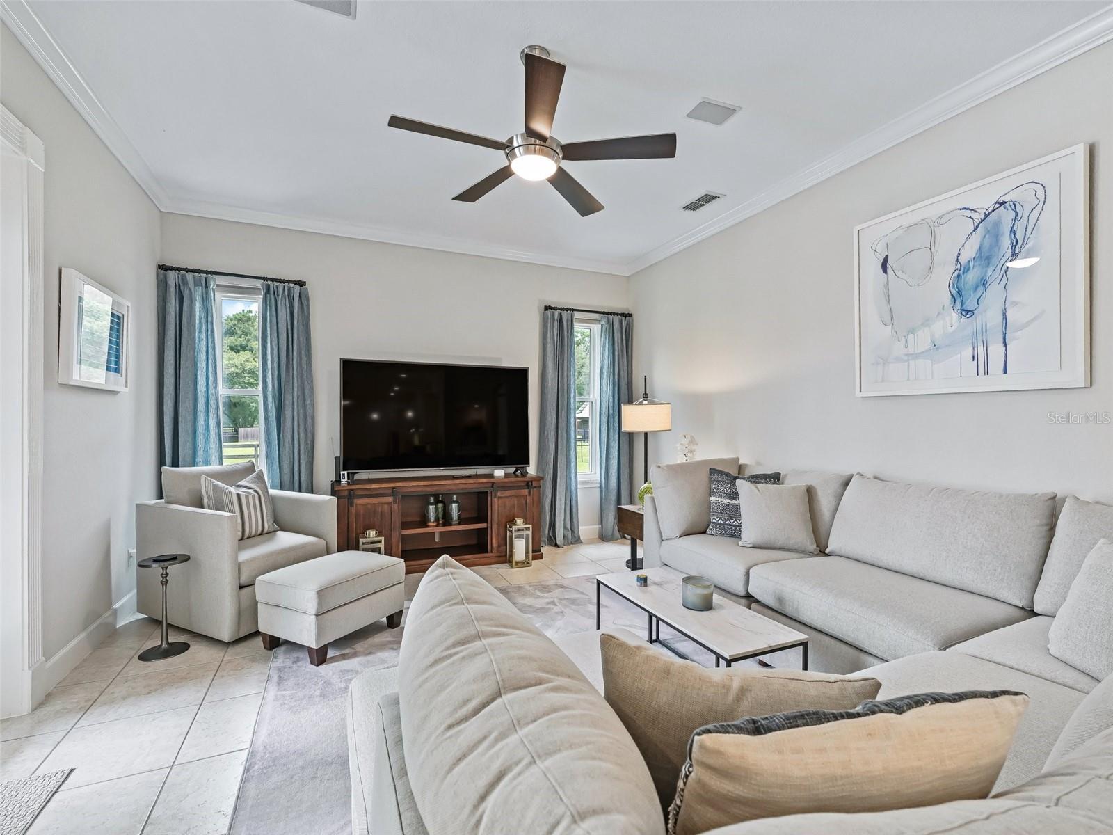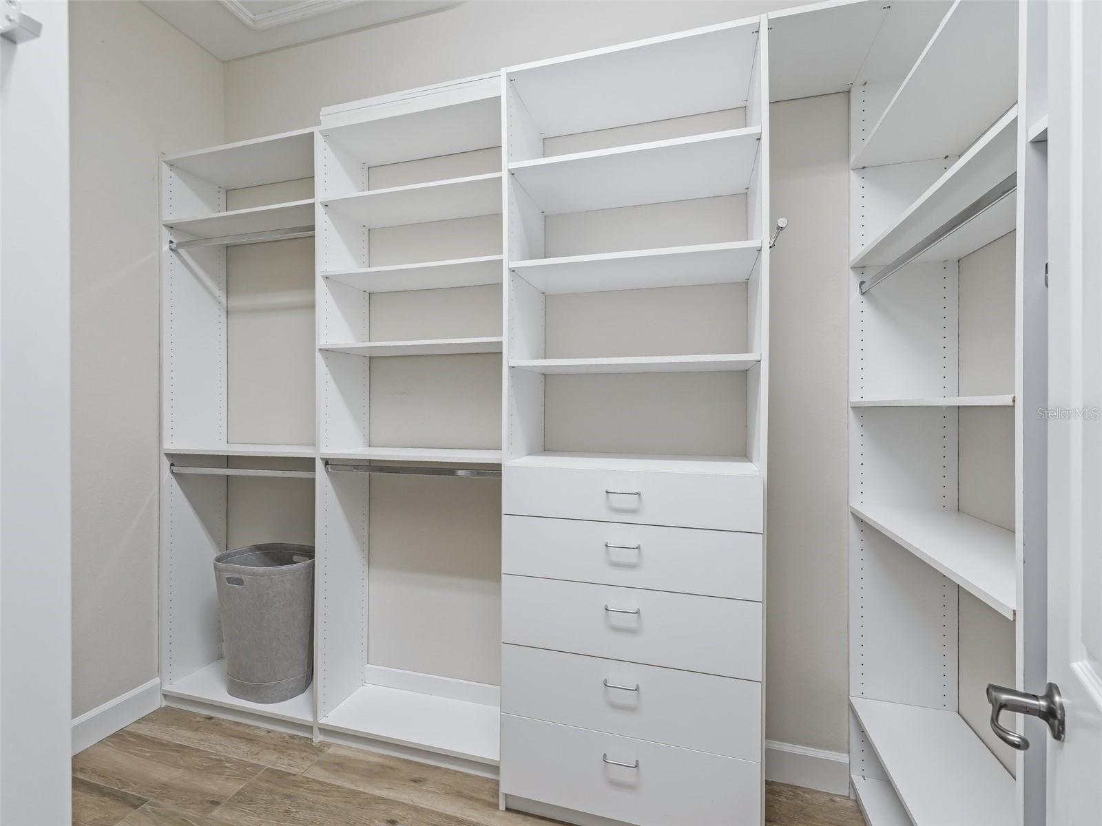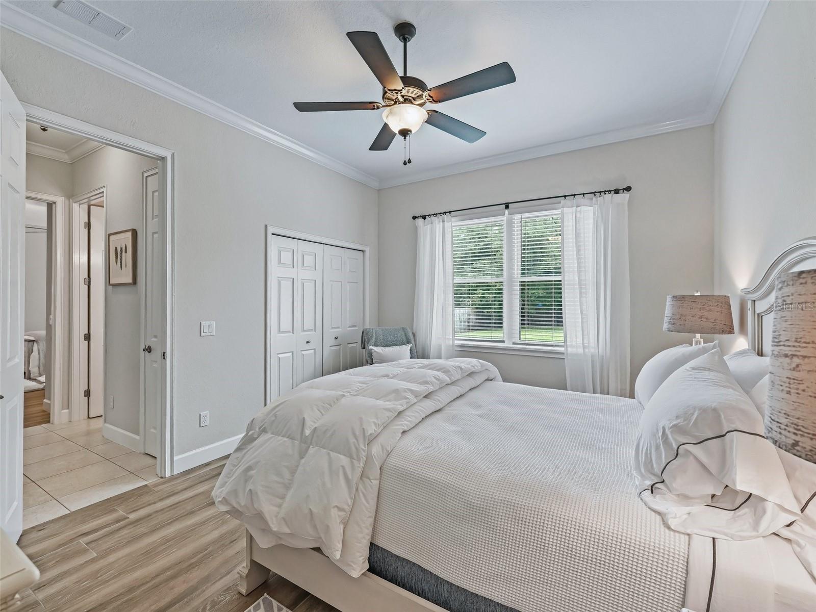 - High Ceilings, Solid Wood Cabinets, Split Bedroom, Stone Counters, Walk-In Closet(s), Window Treatments