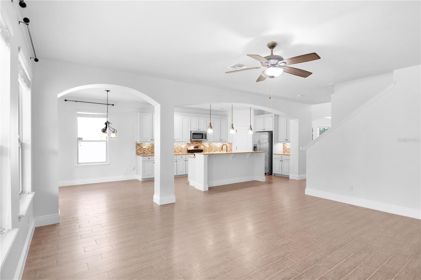 - Ceiling Fans(s), High Ceilings, Open Floorplan, PrimaryBedroom Upstairs, Solid Wood Cabinets, Split Bedroom, Stone Counters, Walk-In Closet(s), Wet Bar, Window Treatments