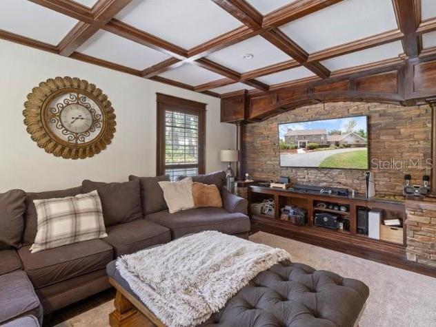 - Coffered Ceiling(s), Crown Molding, PrimaryBedroom Upstairs, Solid Surface Counters, Solid Wood Cabinets, Stone Counters