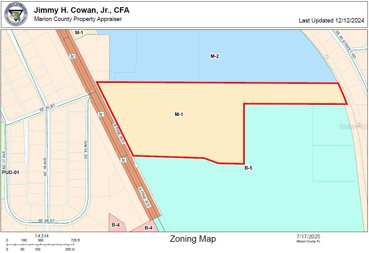 Excellent opportunity to purchase 23.91± acres of vacant industrial land in a high-growth area of Marion County. Zoned M-1 (Light Industrial), this property offers a wide range of development options including warehousing, distribution, or general construction uses. Great road frontage and utilities nearby. Conveniently located on US HWY 441/301/27 with median cuts creating easy access to North and South access as well as easy connectivity to other major thoroughfares including I-75 and SR 40, this site is ideal for an owner-user or investor looking to capitalize on Marion County’s expanding industrial market.