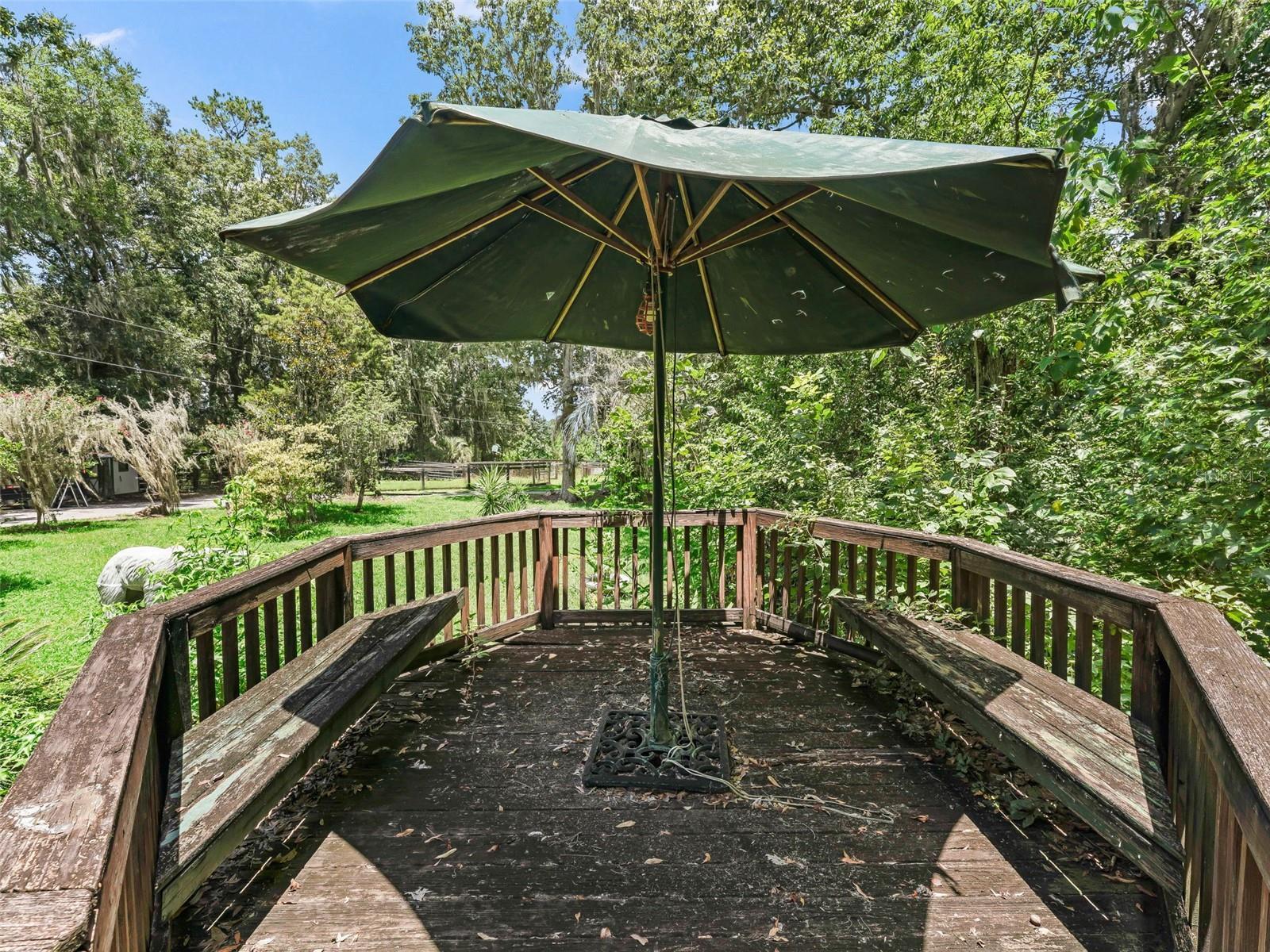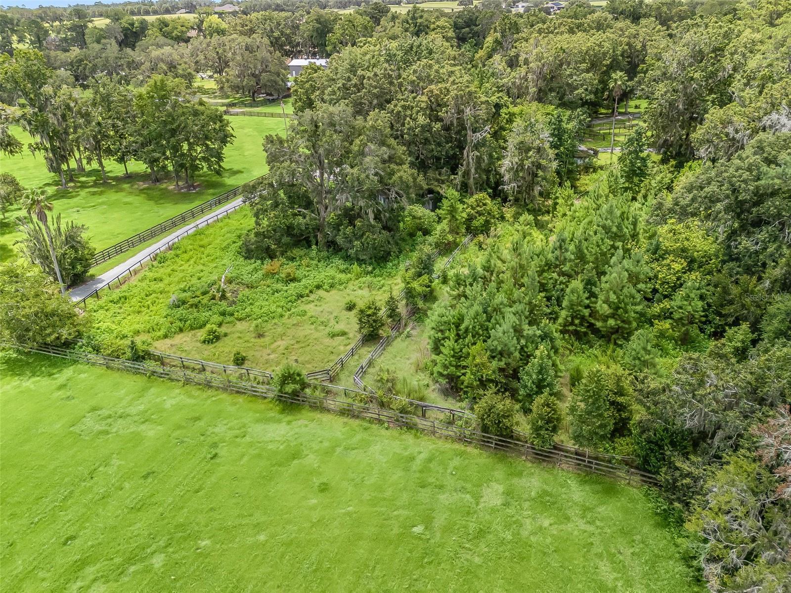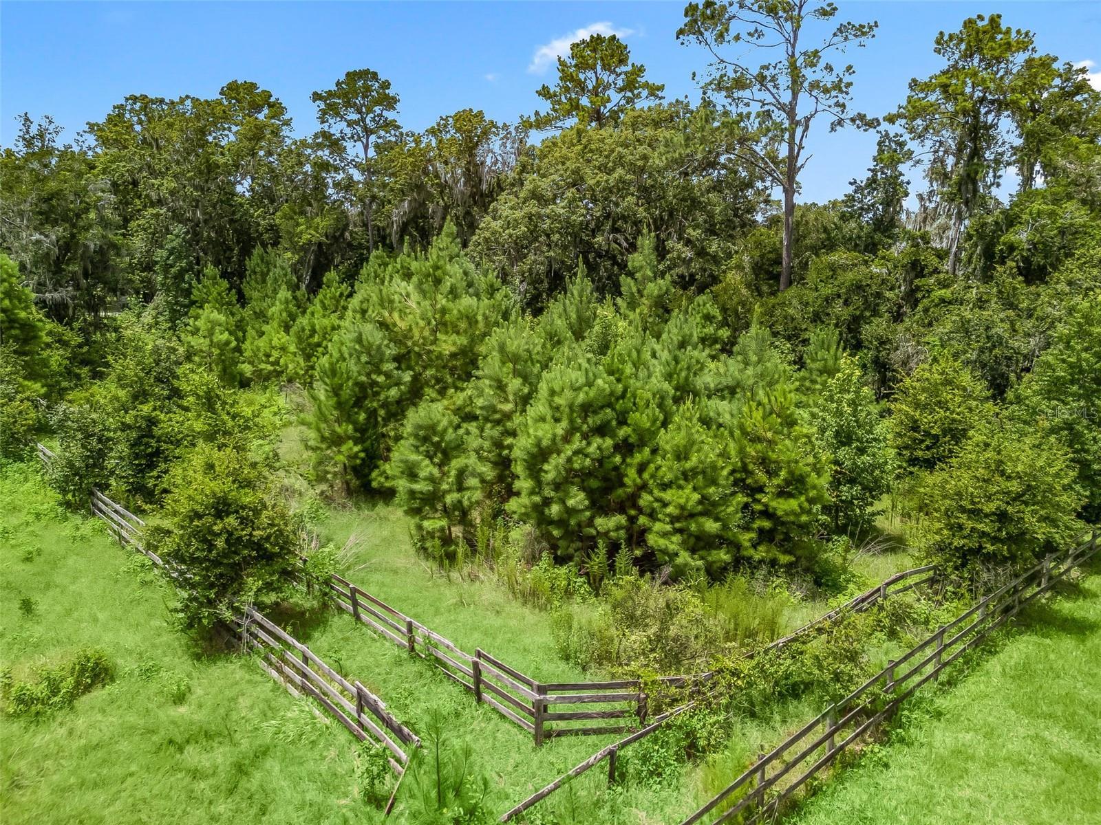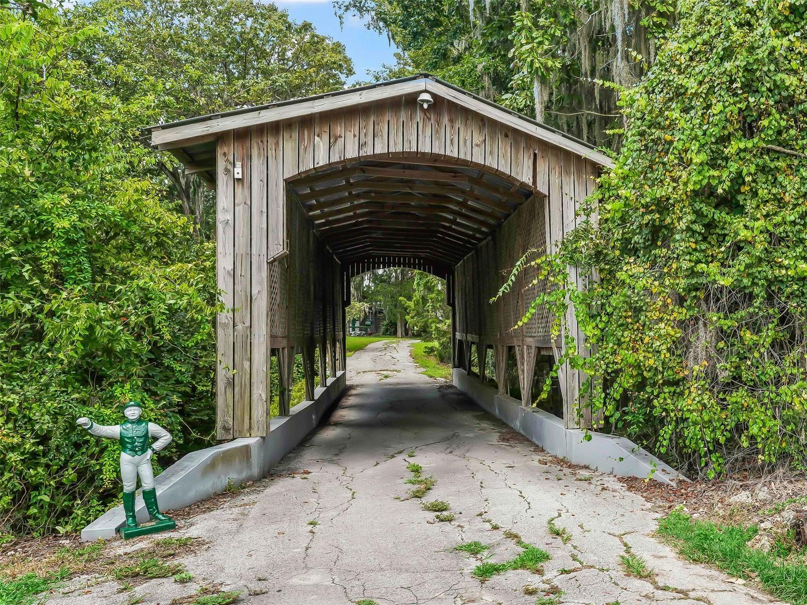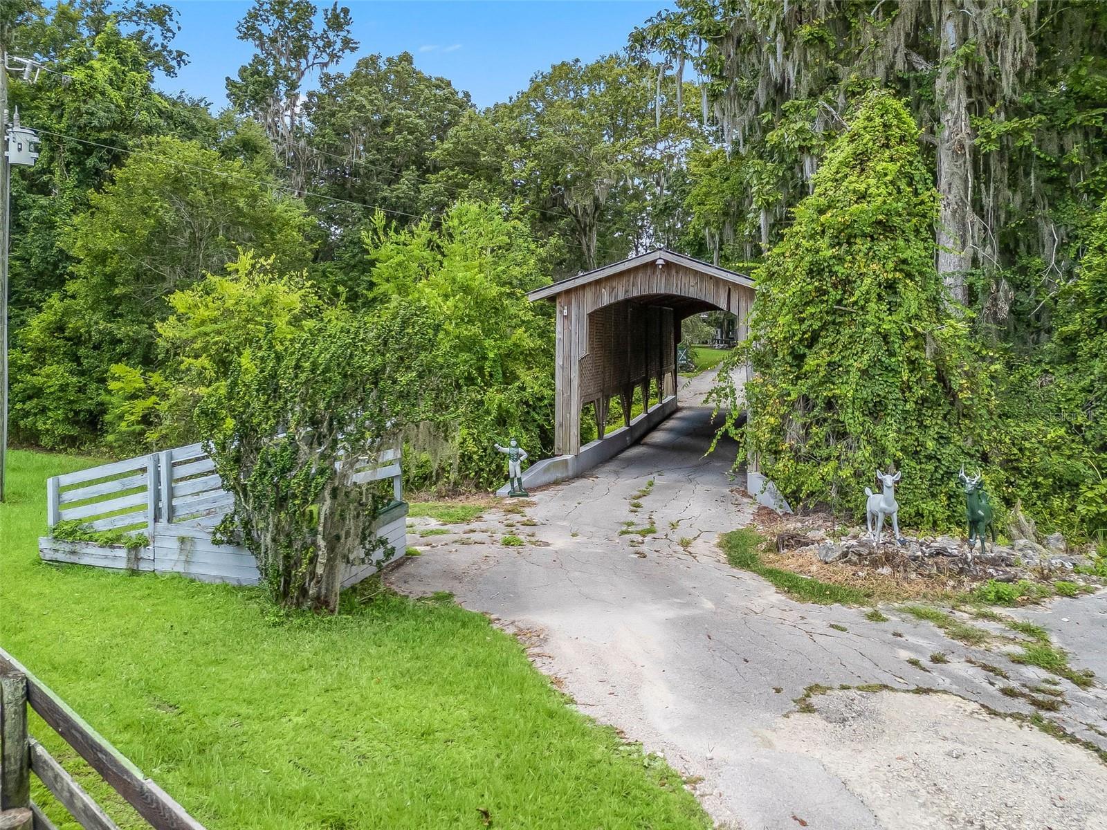 This estate sits on 5.28 acres and is one of the highest elevation points on the road. The property is conveniently located just 8 minutes from the World Equestrian Center as well as close proximity to dining and shopping options. It presents a stunning, serene environment with a three bed/two bath home and a secluded setting. A picturesque covered bridge adds a touch of charm and character to the landscape. Two wells one regular size and one large for equestrian needs are present as well as two outside sheds for additional storage. Two distinctive round pins provide unique architectural elements and suited for equestrian needs. Four barns are also on the property. The hidden nature of the property is like being in your own private park, insuring privacy and tranquility. Various types of trees surround the property, including oak, cedar, and a couple of fruit trees. The overall impression is rustic elegance and natural beauty, which would be ideal for those seeking a peaceful retreat and place to call home.