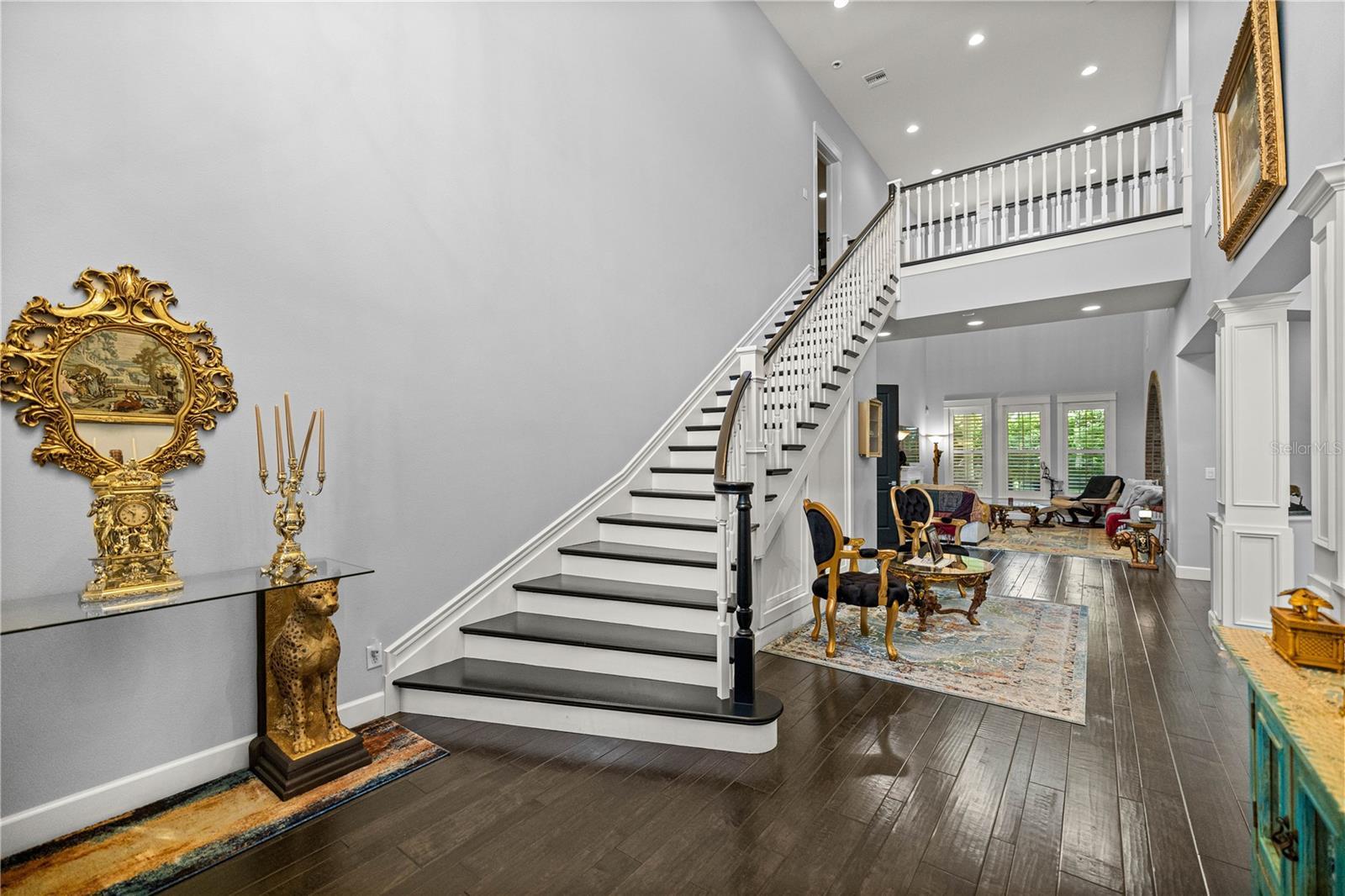 Magnificent 2 story custom home in the heart of Ocala with NO HOA! Located just a block outside of the Historic District and just minutes from hospitals and shopping, this 2015 home is truly a statement. The grand, 2 story foyer with a custom wood stair case, sets the tone for the elegance and functionality this home offers. The stunning bricked arches lead into the Chef's kitchen with Cambria Quartz countertops, Thermador appliances, maple cabinets and tons of counter space and storage. The downstairs Owner's Suite Wing is nothing short of breathtaking. The vast closest has plenty of space with CUSTOM CLOSET SYSTEMS and an island with Quartz counters. The Owner's bedroom and bathroom and beautifully laid out and are closed off from the rest of the home. One of the most impressive of the many features this home has is the nearly 1,000 square foot, 2 story bonus room. Complete with a 2nd story balcony overlooking the room, a massive 2 sided fireplace and large custom bar, it is ideal for large gatherings. Upstairs, there is a secondary Owner's Suite with shower and tub as well as a large walk-in closet with custom closets. The other 2 bedrooms share a Jack and Jill bath. One of the bedrooms could also be an upstairs bonus room. There is an oversized 2 car garage and an additional garage for larger vehicle storage. The home has 2 new gas tankless hot water heaters, 2 newer GENERAC generators, one for upstairs and one for downstairs, a whole house water filtration system, Andersen Windows, alarm system, SPRAY FOAM insulation and the list keeps going. A truly one of a kind in a truly one of a kind area!