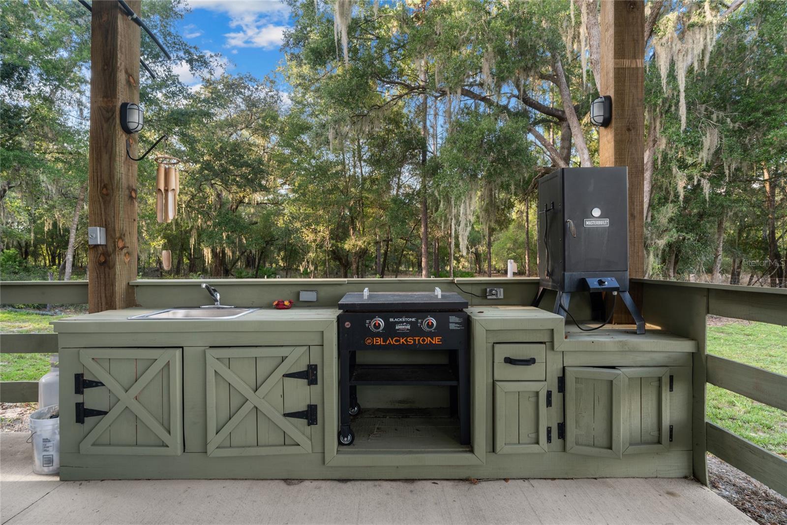 - Courtyard, French Doors, Lighting, Outdoor Grill, Outdoor Kitchen, Storage