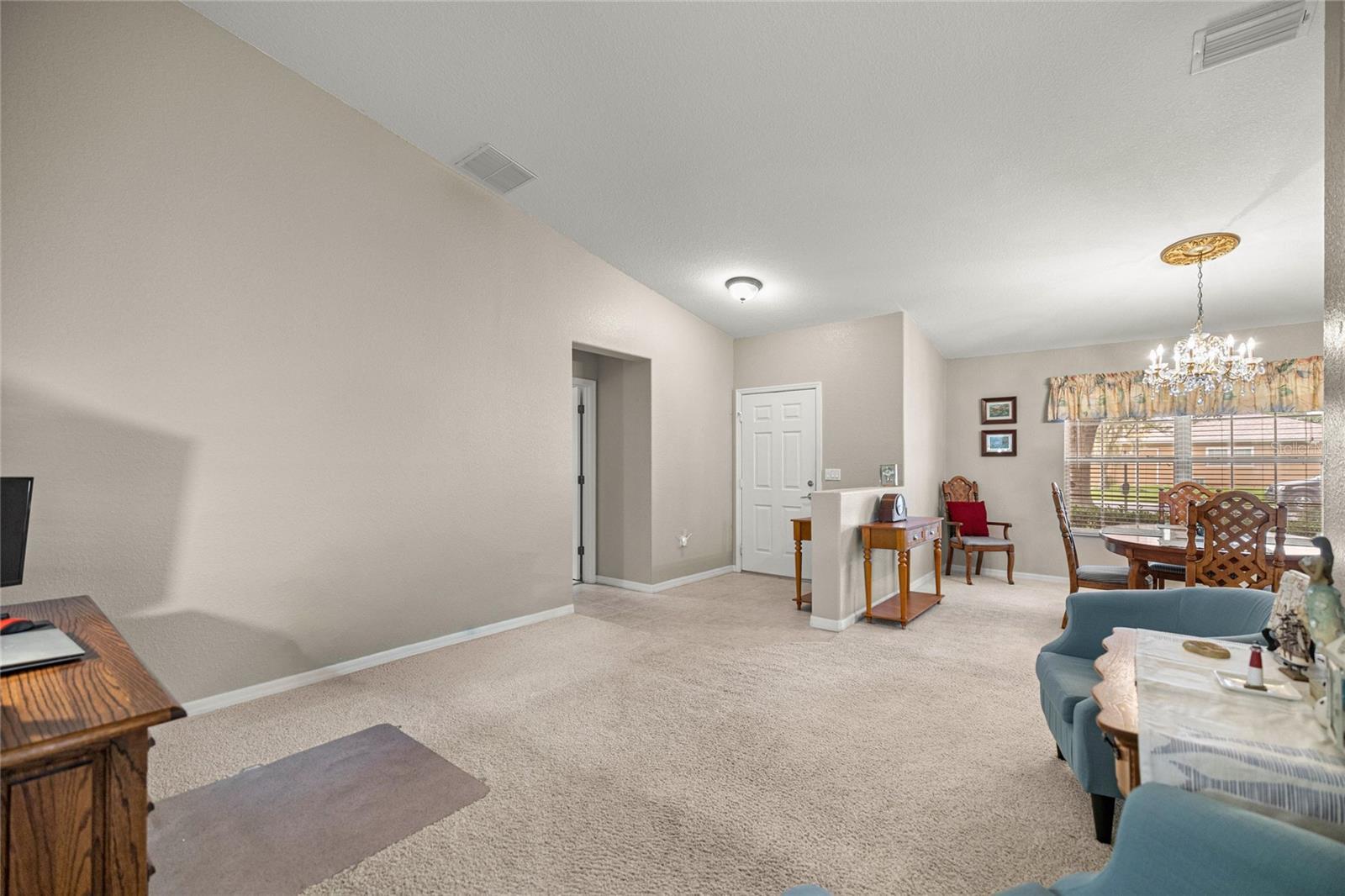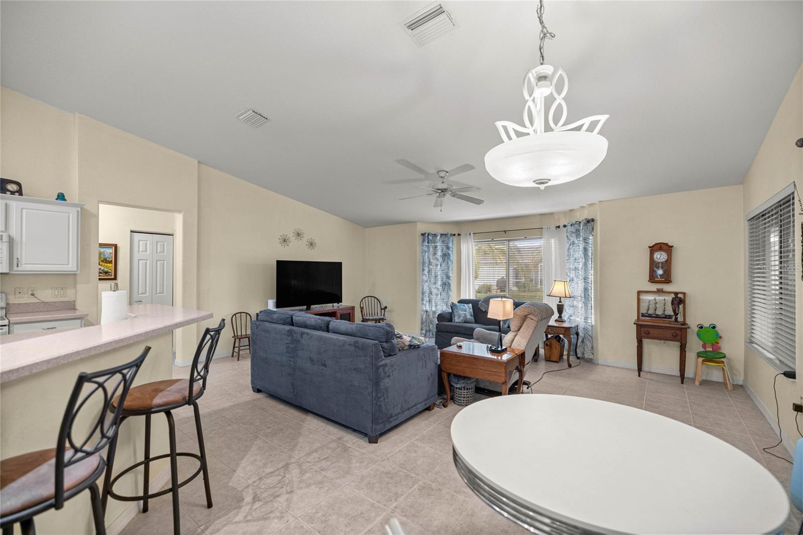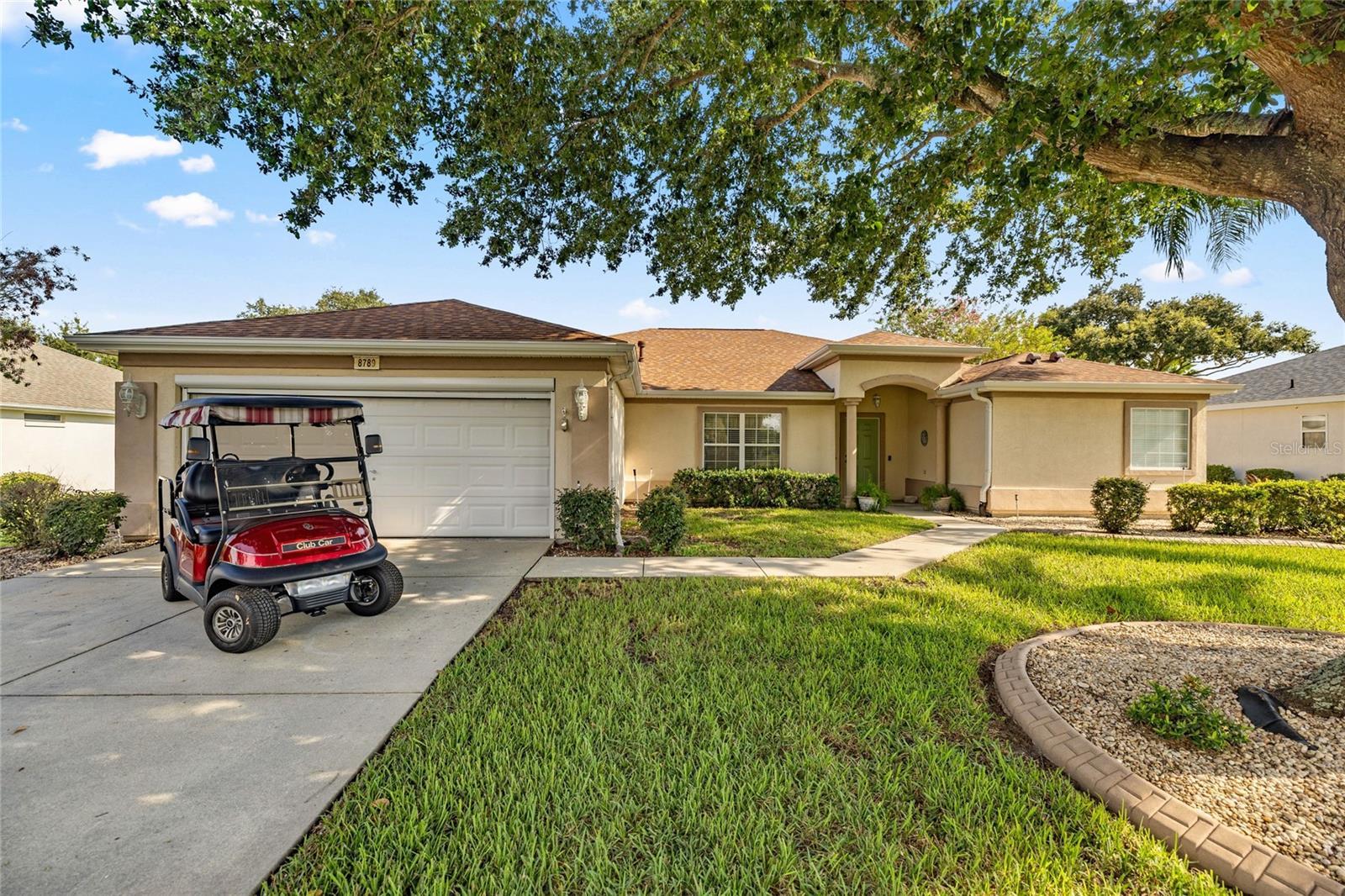 MOTIVATED SELLER!!!! Located in the highly sought-after 55+ Del Webb Spruce Creek Golf & Country Club, this beautifully maintained Providence Model 3-bedroom, 2-bathroom home offers comfort, style, and peace of mind with major recent updates. 2 car garage for convenient parking with a roll-up electric screen for ventilation and a little privacy when the garage is open. Step inside to find cathedral ceilings and a bright open kitchen that flows seamlessly into the living and dining areas, perfect for both everyday living and entertaining. The split floor plan ensures privacy, with a spacious primary suite featuring a double vanity bath and plenty of storage. Relax year-round in the enclosed lanai, an inviting spot for morning coffee or evening gatherings. This home has been thoughtfully updated for worry-free living: • New Roof – April 2025 • New HVAC – September 2024 • New Water Heater – June 2025 • Updated Smoke & CO2 Alarms – August 2025 As an added bonus, a 2021 electric 4-seater Club Car golf cart is available for purchase and can be included with the sale—perfect for enjoying the golf course and community amenities. Del Webb Spruce Creek residents enjoy championship golf, resort-style pools, fitness centers, pickleball, tennis, clubs, and endless activities, making every day feel like vacation. Don’t miss your chance to own this move-in ready gem in one of Central Florida’s premier active adult communities. Schedule your showing today!