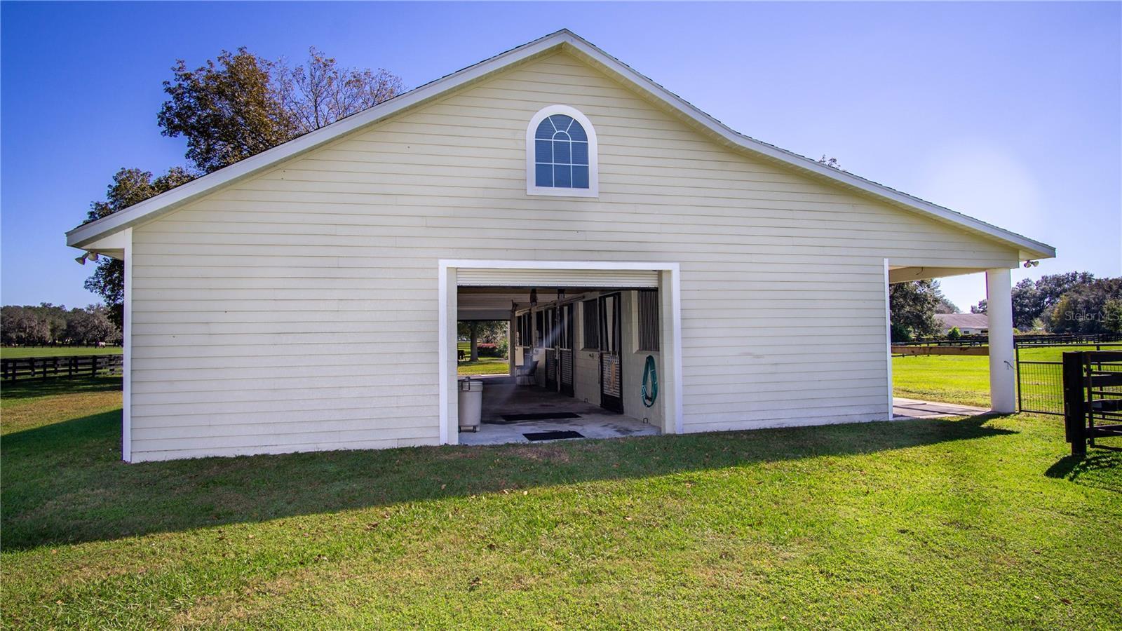 Welcome to this stunning 5-bedroom, 6-bathroom, 4,871 SF (8691 total) custom American Farmhouse on 10.5 acres in the gated community of Equine Estates. Built by Mega Construction in 2006, this exceptional home is crafted for those who value fine craftsmanship, privacy, and an equestrian lifestyle. Enjoy direct access to the 110-mile Marjorie Harris Carr Cross Florida Greenway—ride straight from your property to the Florida Horse Park, or explore three miles of private community bridle paths beneath majestic granddaddy oaks. Main Residence: Showcasing timeless design and top of the line materials with all original receipts. The exterior features Hardie board siding, stone veneer accents, a steep gable roof, dormer windows and a large welcoming Brazilian hardwood porch with columns. Step into the two-story coral stone foyer, where a custom red oak staircase and balcony rail set an elegant tone carried throughout the home. The great room impresses with a cathedral beamed tray ceiling and an architectural stone floor-to-ceiling handcrafted fireplace complemented by a towering custom red oak entertainment center that echoes the home’s stunning staircase and flooring. The gourmet kitchen is a chef’s dream—granite countertops, shaker cabinetry, coral stone floors, pendant lighting, dual pantries, and island seating. A laundry room off the kitchen continues the fine craftsmanship with matching shaker cabinetry and coral stone flooring. The kitchen has an eat-in area, plus an additional formal dining or secondary kitchen space off the great room— The primary suite is a true retreat with red oak flooring, plantation shutters, a serene sitting retreat overlooking the pool and pastures and a spa-inspired bath featuring coral stone floors, dual stone vanities, a soaking tub encased in stone, and a glass shower with coral stone flooring. Upstairs, three spacious ensuite bedrooms feature Kohler fixtures, Corian vanities, and frameless glass showers, while an additional 810-square-foot finished space above the three-car garage with a private entrance and half bath providing a perfect gym, office, or guest suite. Outdoor Living: Step through the French doors to a vaulted, screened lanai wrapped in rich Brazilian hardwood decking, where a warm oak ceiling and a floor-to-ceiling stone fireplace—designed for both gas and wood burning—create the perfect backdrop for every season. The lanai offers a picturesque vantage point overlooking the saltwater pool, horse barn, and sunlit pastures. Equestrian Barn: The 2,548-square-foot center isle block barn is designed for function and comfort, featuring four stalls, an Air conditioned tack and feed room, two hot/cold wash racks, a shoo fly system and a dedicated equipment room featuring workbenches and shelving along with a climate-controlled office with half bath providing convenience and comfort. The property’s lush 10.5-acre pastures are fully fenced and cross fenced, offering an ideal setup for horses and cattle. Modern Systems & Features: 5-unit multi-zone HVAC (2 new 2025; 4 home + 1 barn office)- Whole-house Generac generator (July 2025 service)- Dual propane tanks- Updated water heaters, bladder tank (2024), irrigation (2025 panel)- NuTone central vac, 10-year termite bond (to 2035)- Porte-cochère with 30-amp RV hookup for vehicles or guest use.