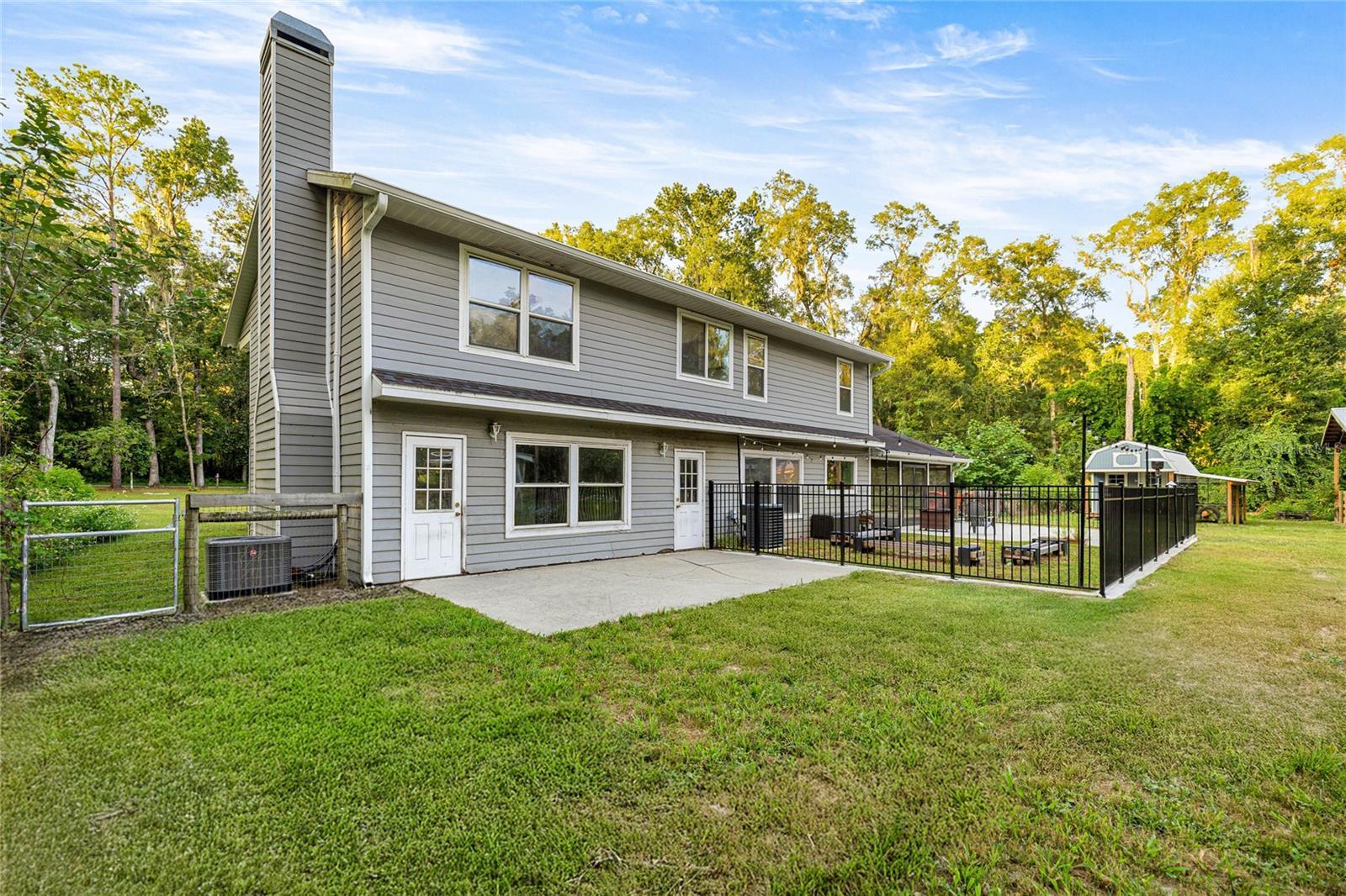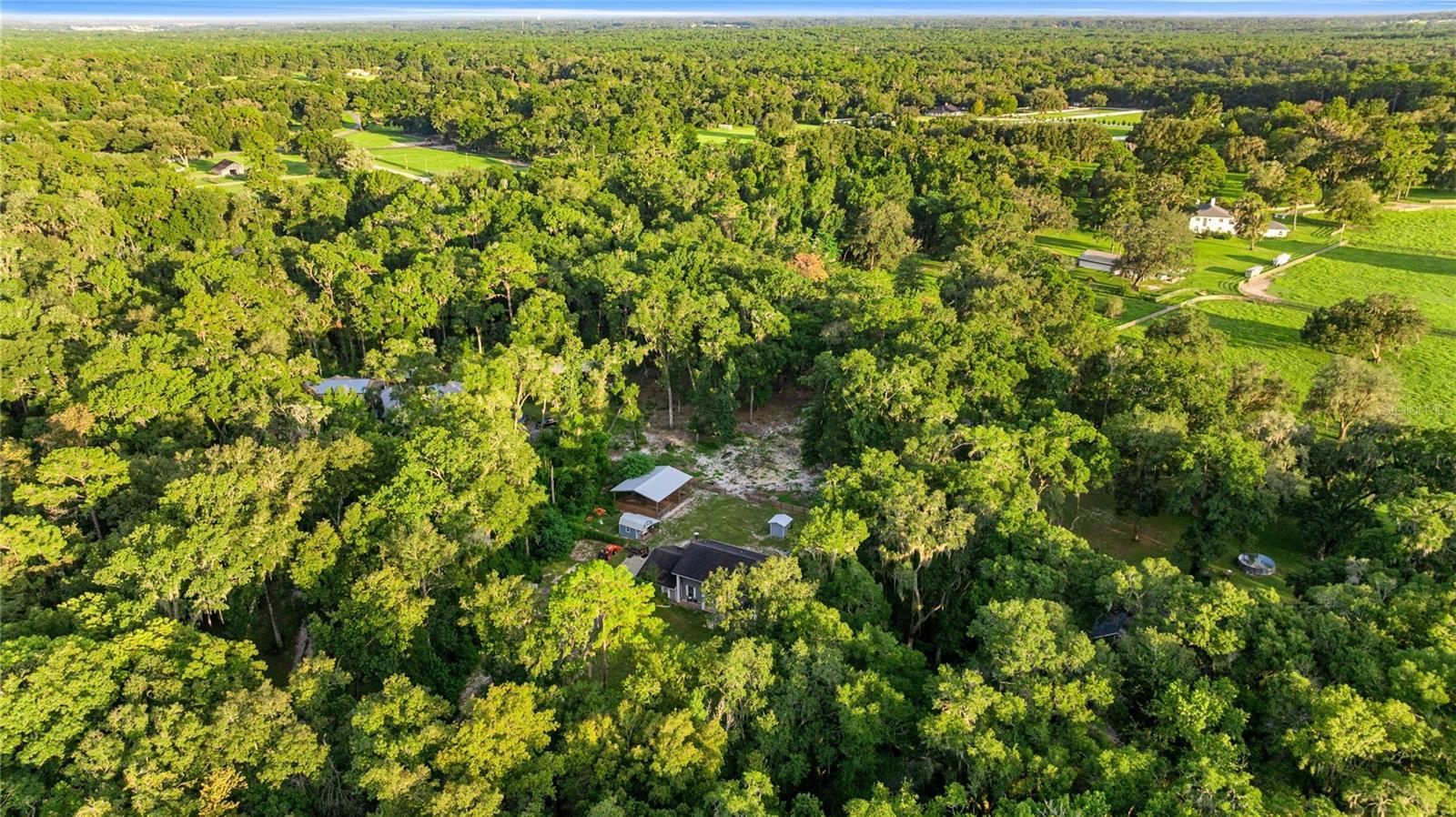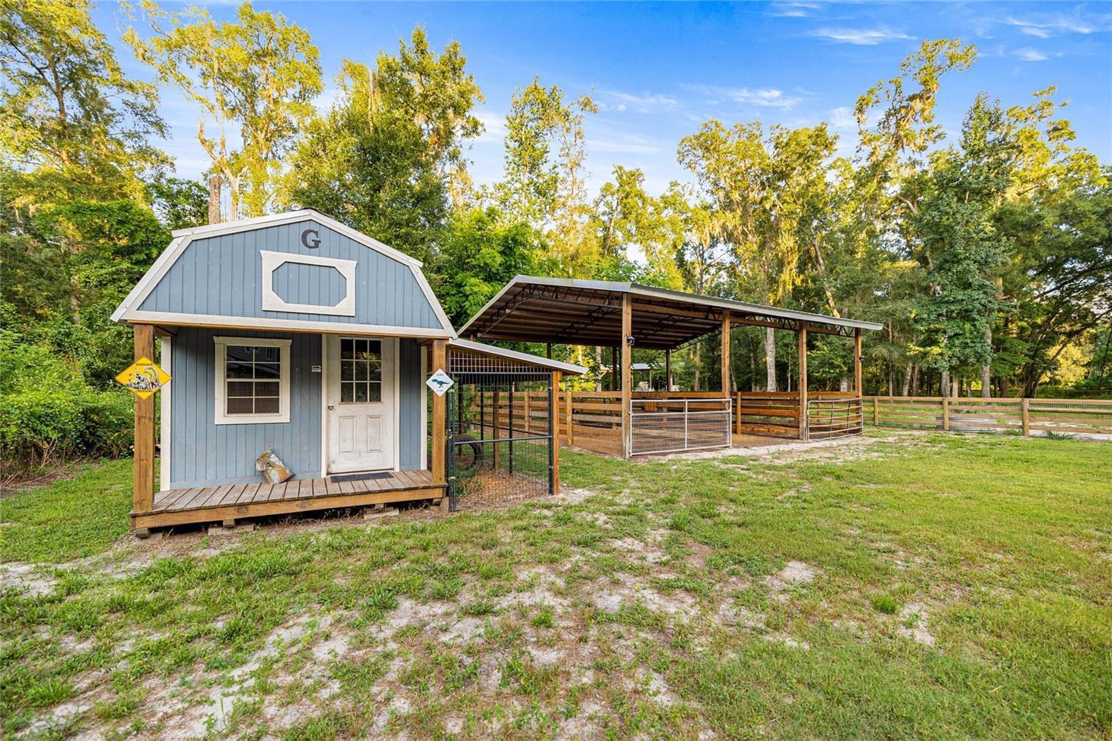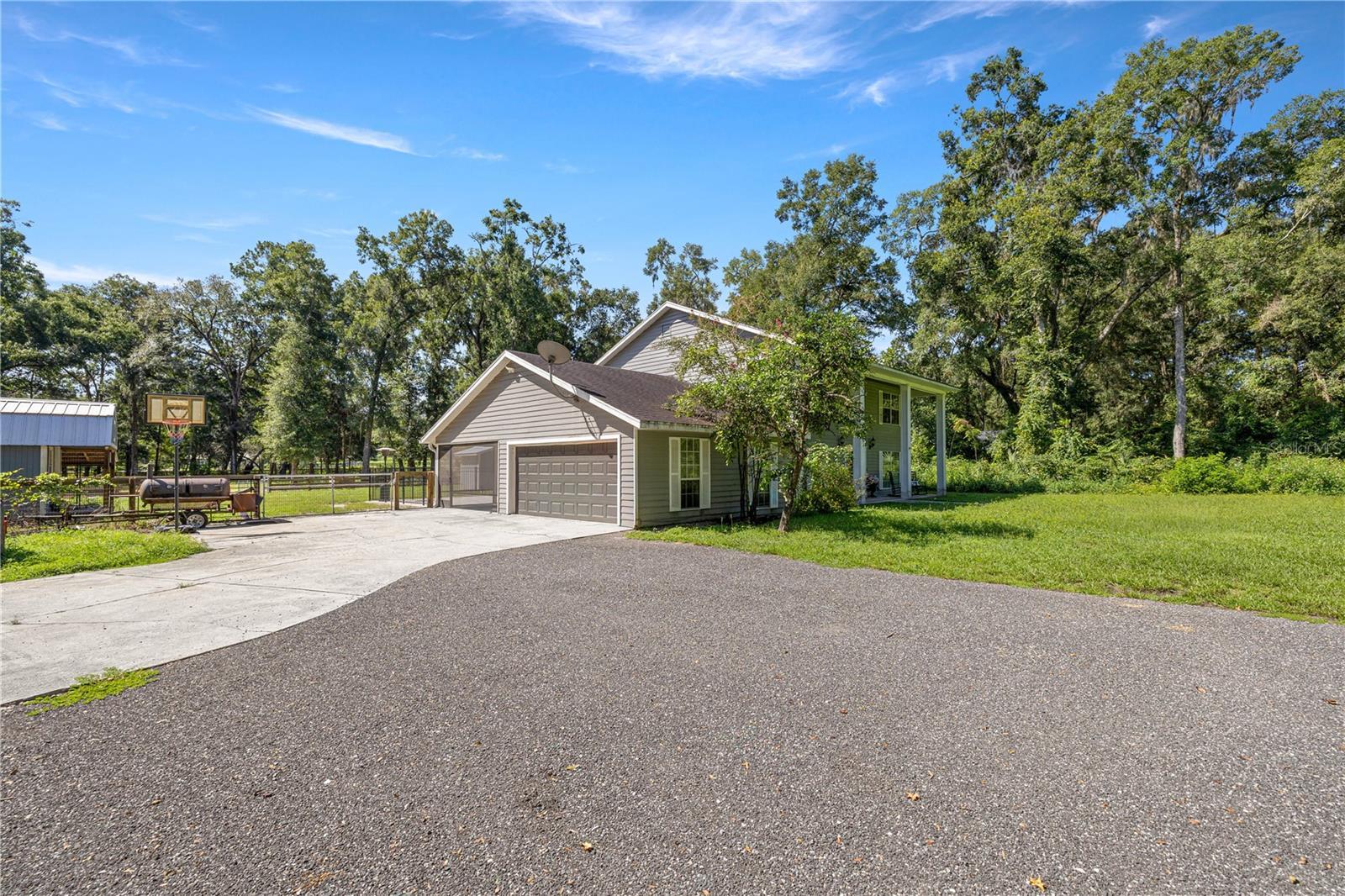 AWESOME home for sale! This stunning four bedroom, three bathroom two-story home offers the quiet serenity of country living on a beautifully fenced 3-acre lot surrounded by majestic granddaddy oaks and abundant wildlife. Nestled in the highly sought-after Southeast Ocala farmland, you'll enjoy the perfect blend of seclusion and convenience. Located just minutes from all the essentials in Ocala and surrounding areas. Located in one of Ocala’s best-kept secrets, Redding Circle, a quaint and private neighborhood of only 12 homes. Each with 3-acre parcels and a privately maintained road. Tucked behind the beautiful Turning Hawk community, this home offers unmatched tranquility while still being close to everything. Step inside to discover a spacious, well-designed floor plan with generously sized rooms throughout. The heart of the home is the gorgeous remodeled kitchen in 2020, featuring granite countertops, a large center island, stainless steel appliances, a farmhouse sink, space-saving microwave drawer, soft-close cabinetry, and abundant pantry space with convenient pull out drawers, all complemented by elegant wood-look ceramic tile that flows throughout the first floor. The inviting family room boasts a charming wood-burning fireplace and stylish barn doors that can separate the space from the front living area, offering flexibility and comfort for family living or entertaining. Back of property is fenced and offers a pole barn, a chicken coop with run and a kids play house that is actually a utility shed.