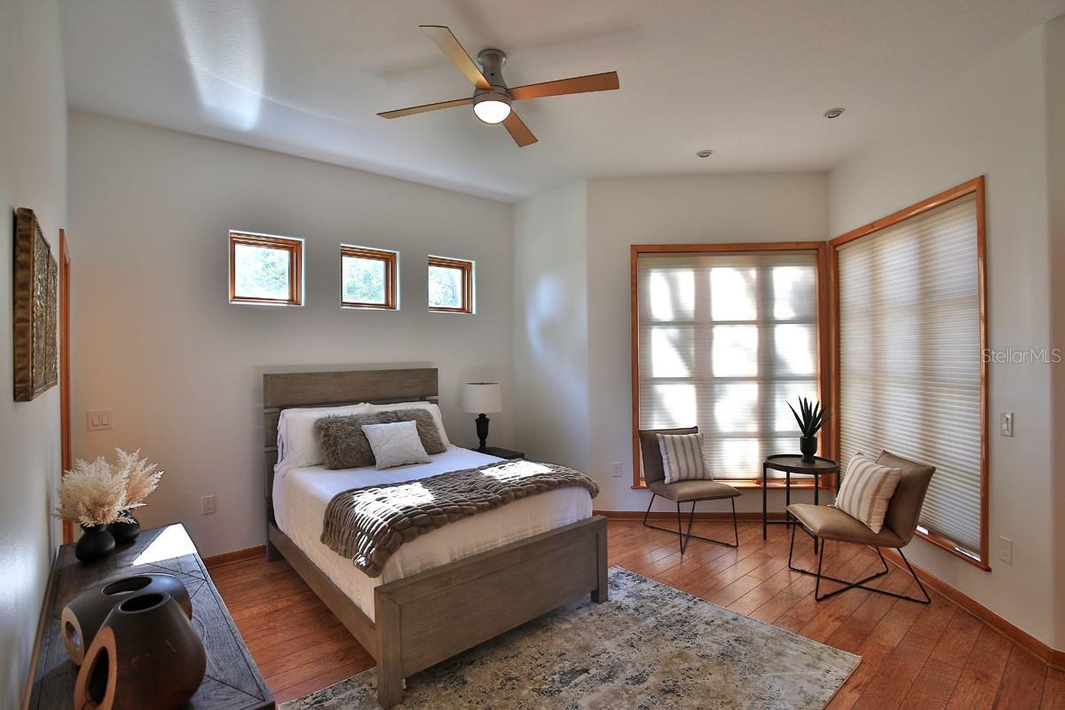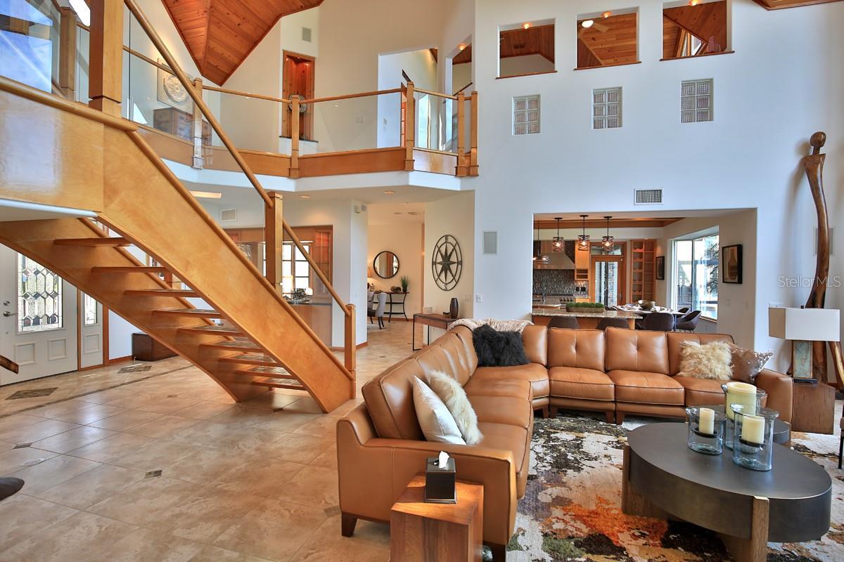 - Cathedral Ceiling(s), Ceiling Fans(s), Eat-in Kitchen, Elevator, High Ceilings, Kitchen/Family Room Combo, Open Floorplan, Split Bedroom, Stone Counters, Thermostat, Walk-In Closet(s), Wet Bar