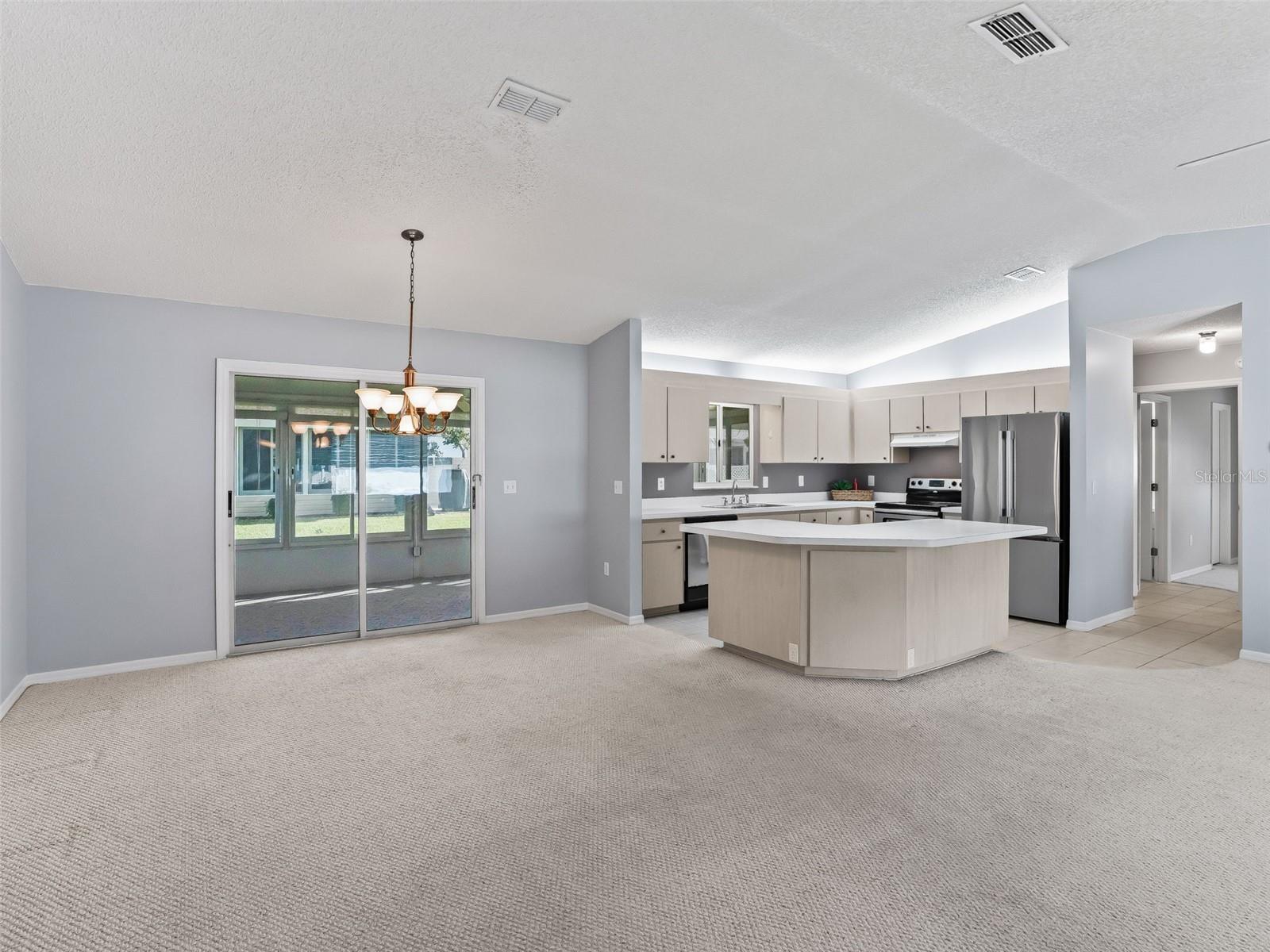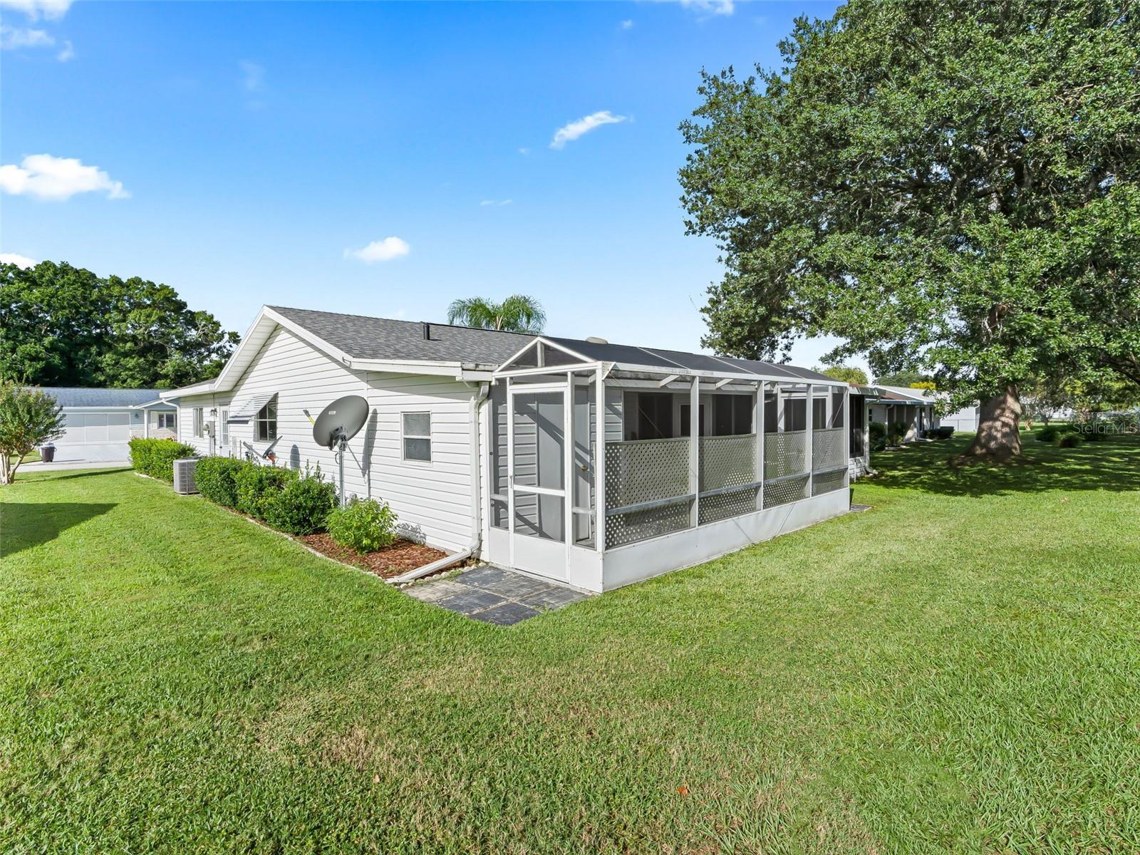 One or more photo(s) has been virtually staged. Welcome to Spruce Creek South, a 55+ gated Golf Community in a prime location offering the perfect blend of comfort, convenience, and life style close to The Villages, restaurant's, medical, and shopping. Spruce Creek South offers numerous clubs, social events, pool, and fitness area just to name a few. Whether you are looking for a full-time residence or a seasonal retreat, this charming Holly model is slightly larger than most Holly plans. Split 3 bedroom 2 bath provides the ideal space for guest, home office or hobby room. Spacious open concept floor plan with a Cathedral ceiling, an indoor laundry room, and two car garage. The primary suite includes a walk in closet and private en-suite bathroom. Enjoy relaxing on your lanai or sitting out on the screened bird cage. Home has an added storage area that is connected to the bird cage. Roof 2023, HVAC 2015, Clothes dryer 2023, indoor/outdoor carpet on the lanai 2025. Schedule your private tour today!