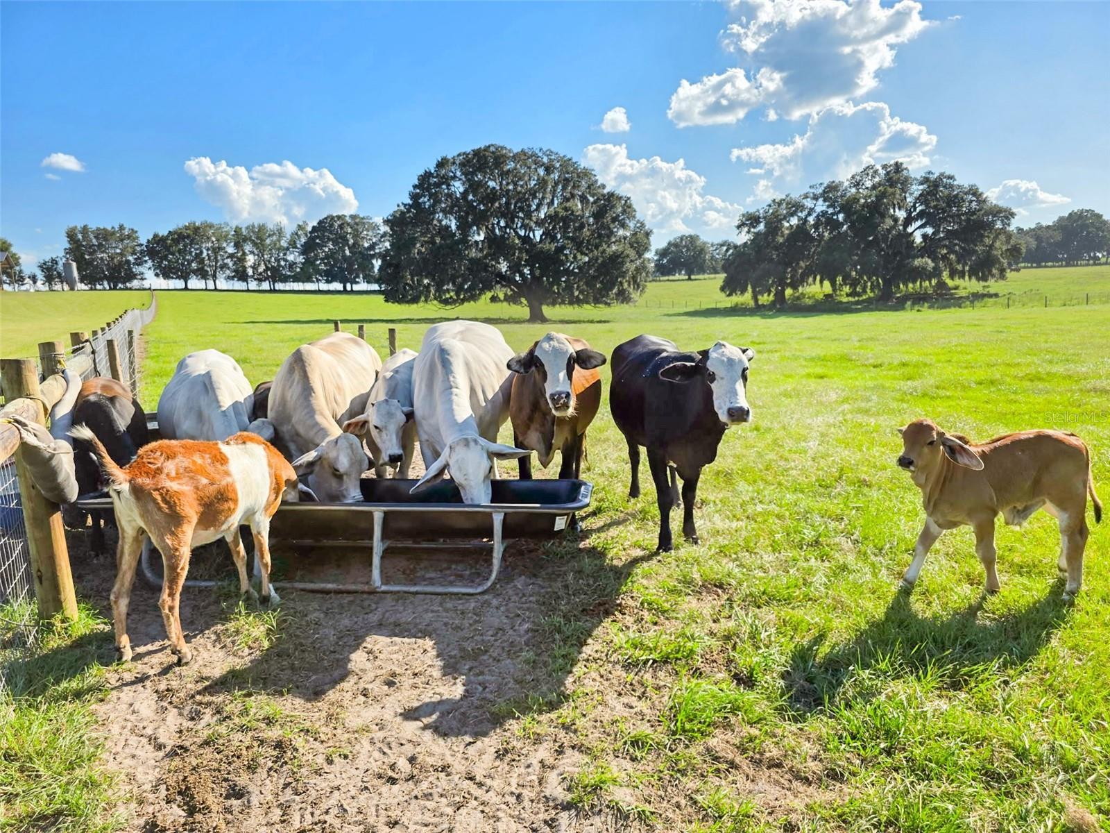 Welcome to your private farm retreat in Morriston, Florida. This custom, newly built 3-bedroom, 2-bath home is set on 19.34 acres of fully fenced pastureland and offers a rare blend of functionality, style, and peaceful rural living. With approximately 3,840 square feet under roof, the residence includes expansive covered outdoor living space—perfect for relaxing, entertaining, or enjoying the quiet beauty of the countryside. Designed with a modern industrial aesthetic, the interior features vaulted ceilings with exposed steel trusses, an open-concept layout, and carefully chosen finishes that blend warmth with bold architectural detail. The kitchen is outfitted with black cabinetry, gold hardware, a butcher block island, and a farmhouse sink. A custom staircase with steel railings leads to a versatile loft space that can also be accessed by a separate outdoor staircase, offering flexible use as a guest area, office, or bonus room. The main living areas feature wood-style flooring and large windows for natural light. Bathrooms are thoughtfully designed with tiled walk-in showers and modern fixtures, and the laundry area includes herringbone brick flooring and built-in storage. A separate 40x60 pole barn with a 20x60 lean-to provides ample space for equipment, trailers, or future stalls. The acreage includes open, cross-fenced pastures and a private pond stocked with fish. Nine cows and one goat may be included in the sale, making this a truly turnkey farm. Located just minutes from Williston and a short drive to Ocala, the World Equestrian Center, and popular trailheads, this unique property is ideal for anyone looking for a self-sufficient lifestyle with modern comfort and rural charm—no HOA and agriculture zoning in place.