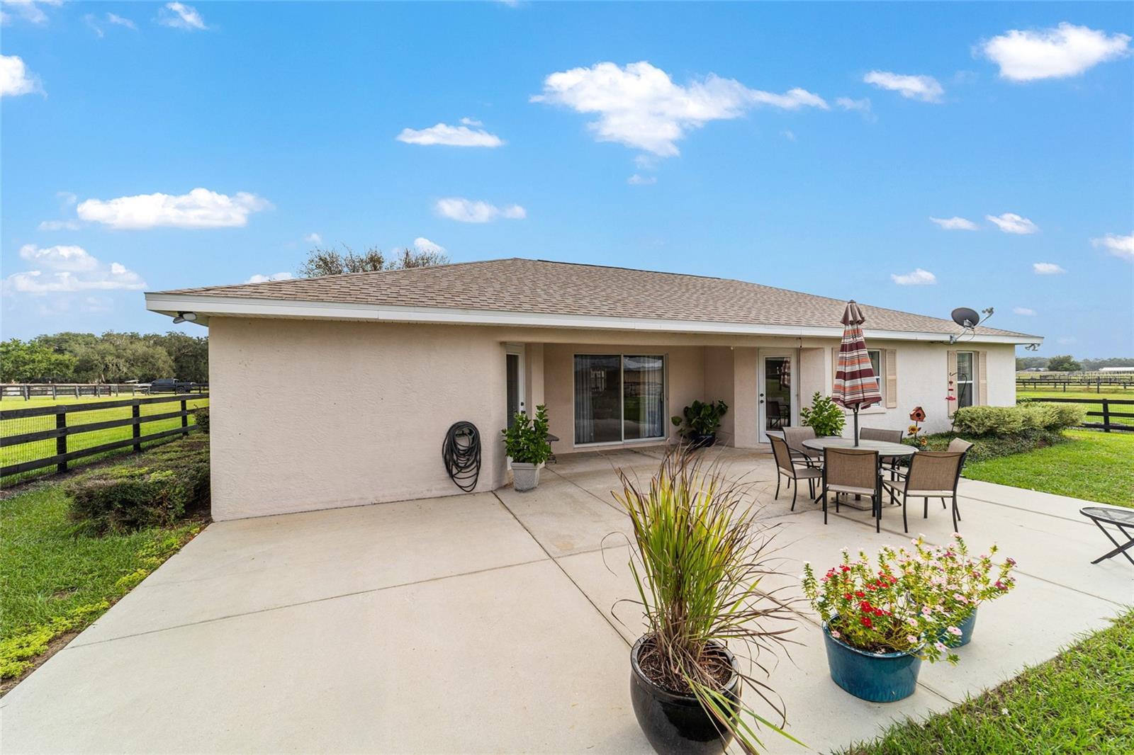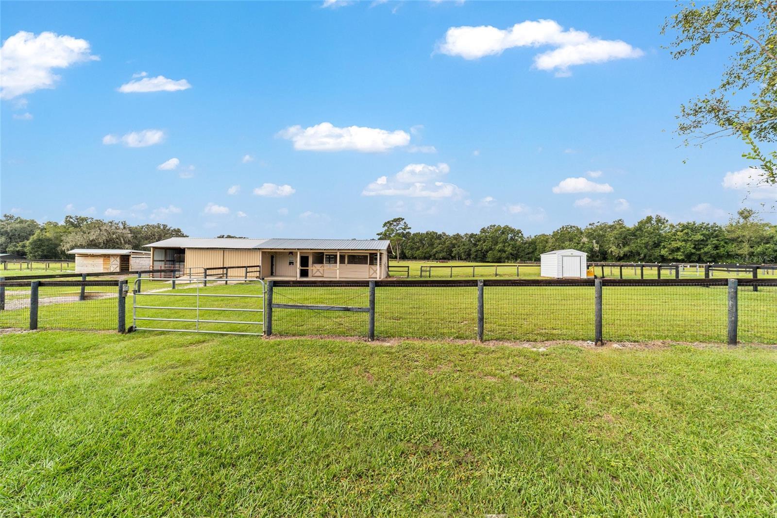 Welcome to this charming 5.67-acre farm located in the peaceful equestrian community of Winding Oaks, just outside of Williston, Florida. This concrete block home, built in 2002, offers a thoughtfully designed split-bedroom layout with 3 bedrooms, 2 bathrooms, and an open-concept living space ideal for both comfort and functionality. The spacious master suite includes a walk-in closet, a large bathroom with a sunken tub and separate shower, and private access to the back patio—perfect for quiet mornings or unwinding after a long day. The living room flows easily into the dining area and kitchen, where you’ll find a cozy breakfast nook with backyard views and a bar for casual seating or sipping your morning coffee. Sliding glass doors off the living area lead to a covered patio that overlooks the barn and pastures, giving you a front-row seat to the peaceful lifestyle this property offers. The shed-row barn features two stalls, a tack and feed combo room, storage space at the rear, and a large workshop with concrete floors and electric—perfect for projects or farm equipment. The property is fully fenced and thoughtfully laid out with one large pasture and three additional paddocks. One of the pastures includes a bonus stall ideal for a broodmare or added shelter. At the far end of the property, a riding arena awaits for training or turnout. Winding Oaks is a quiet, horse-friendly community made up of a small number of farms, offering country living with wide-open skies, peaceful surroundings, and a close-knit feel. Despite its rural setting, the location is incredibly convenient: just 19 miles to the World Equestrian Center, 10 miles to HITS, and 24 miles to downtown Ocala. Need to head north? 30 miles to Gainesville, and if you’re craving salt air and sunsets, the Gulf of Mexico is only about 35 miles away, offering access to fishing, boating, and coastal adventures. Whether you're starting your equestrian journey, looking to downsize to manageable acreage, or seeking a private retreat close to top show venues and amenities, this turnkey property offers the ideal blend of functionality, flexibility, and farm life charm.