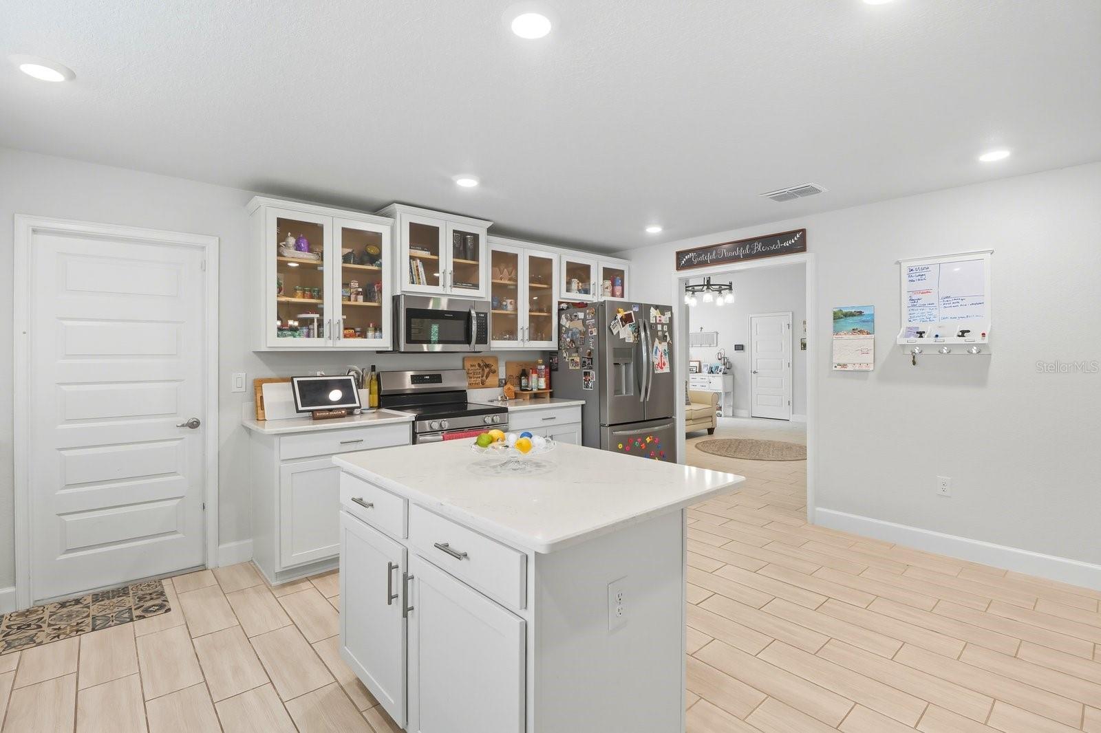 - Built-in Features, Ceiling Fans(s), Dry Bar, In Wall Pest System, Open Floorplan, Solid Wood Cabinets, Stone Counters, Thermostat