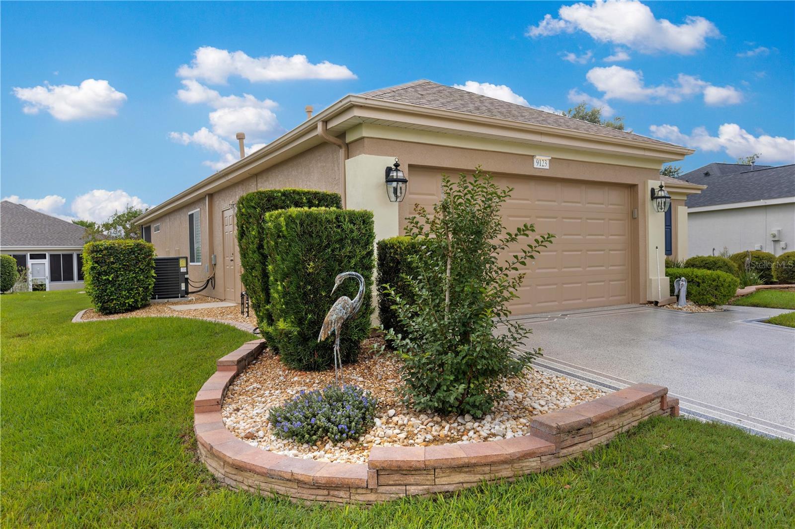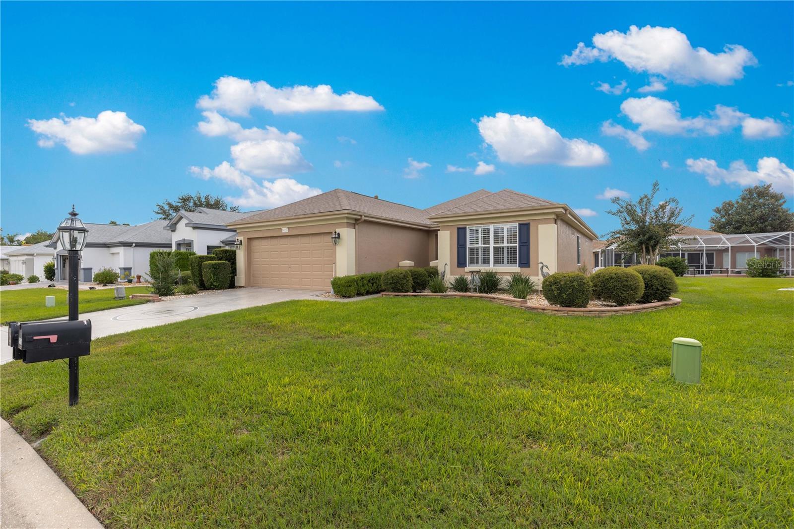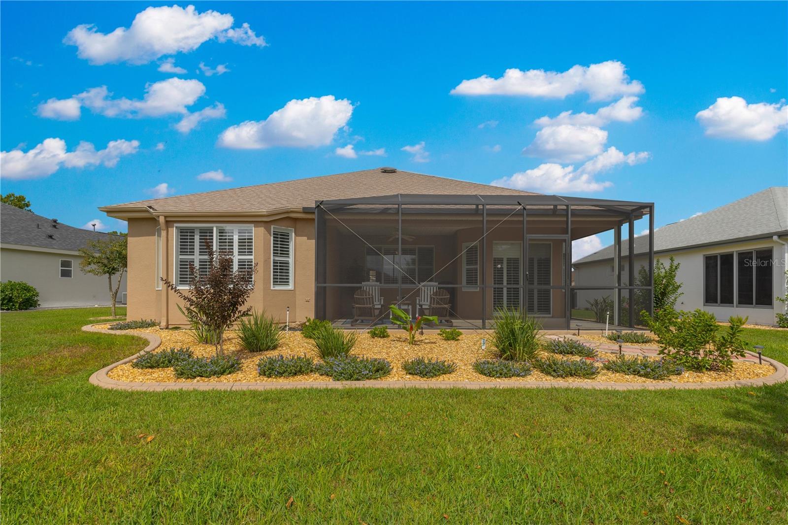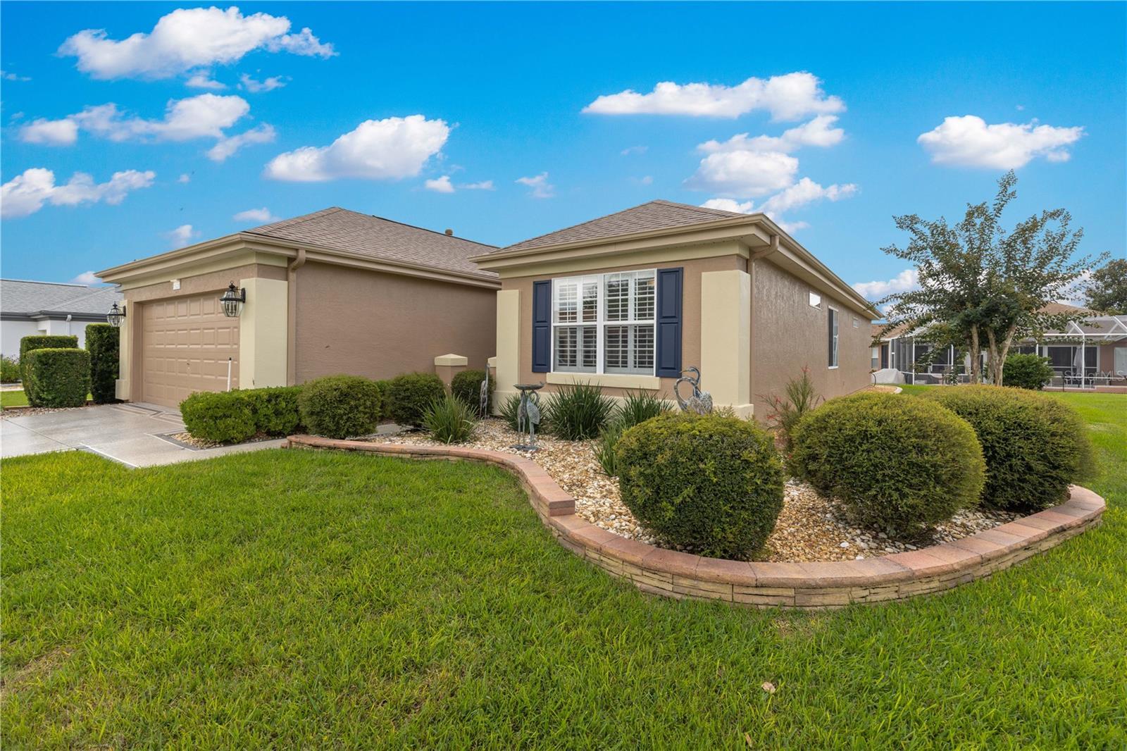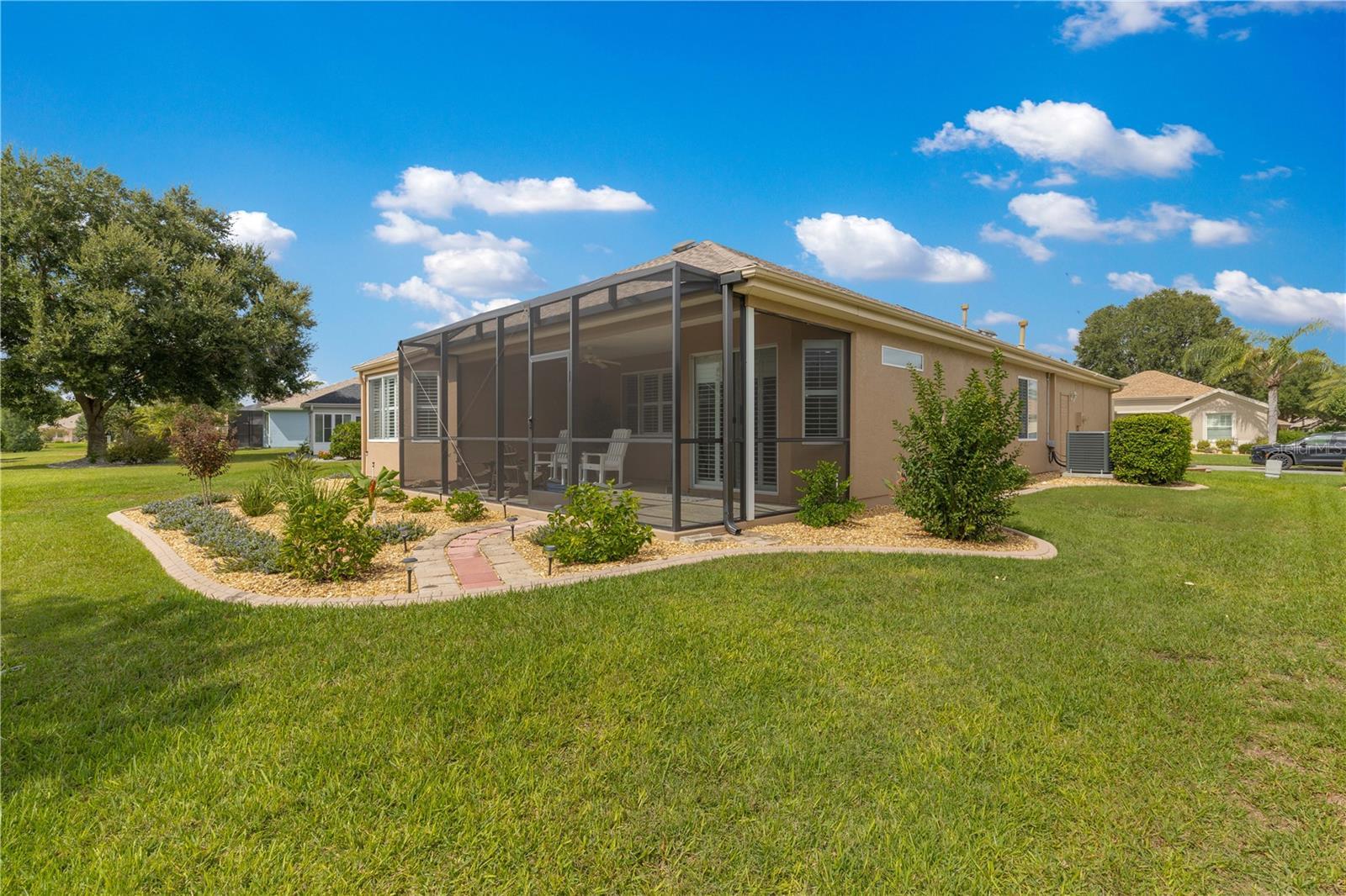 The craftsmanship is seamless and impeccable— you have to see this home in person! Located in the highly sought-after Del Webb Spruce Creek community, this beautifully updated 2 Bedroom, 2 Bathroom home has been meticulously enhanced from 2023 through 2025, offering a truly move-in-ready retreat filled with style and quality. Step inside to find luxury vinyl flooring throughout, designer finishes, and custom decorative trim, crown molding, and plantation shutters that add timeless elegance. The updated kitchen (2023) boasts KraftMaid soft-close cabinetry with roller shelving and kick drawers, granite countertops, a deep sink with designer faucet, and a full suite of stainless steel appliances. The bonus flex room (perfect as an office or third bedroom) showcases batten wall detailing and upgraded lighting with dimmers for added ambiance. The primary suite feels like a private sanctuary with its 2023 spa-style bathroom featuring a white KraftMaid vanity with makeup area, granite counters, decorative tile shower, and updated mirrors, lighting, and remote fan. The walk-in closet includes custom shelving for maximum storage. The second bedroom and bath have also been completely refreshed — from rain glass shower doors to designer tile, vanity, and lighting — everything is move-in ready and beautifully done. Outside, enjoy your expanded lanai and birdcage (2023), perfect for morning coffee or evening relaxation. The home’s freshly painted exterior (2023), new landscaping (2024), updated lighting, and new front storm door (2025) create wonderful curb appeal. The garage is just as impressive with Husky storage cabinetry (2025), interlocking flooring tiles (2025), attic fans (2024), and built-in functionality. Major mechanicals bring peace of mind with a new HVAC system (2024) serviced regularly, roof (2022), and water heater (2018) — all contributing to a worry-free lifestyle. Every update has been made with care, combining comfort, beauty, and practicality. This home truly offers the best of Del Webb Living - in a vibrant, active 55+ community with resort-style amenities, 36 holes of Championship Golf, Pickleball, Tennis, Fitness Center, 3 Pools (1indoor) Shuffleboard, Horseshoes, Bocce Ball, Walking path in Wooded Area and more clubs than you can imagine!!!!