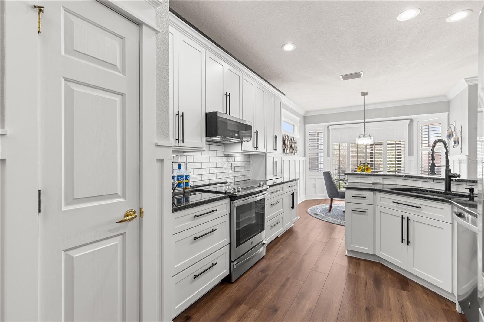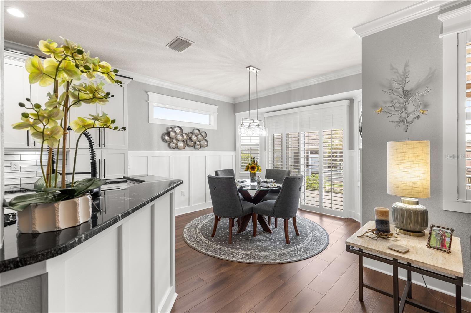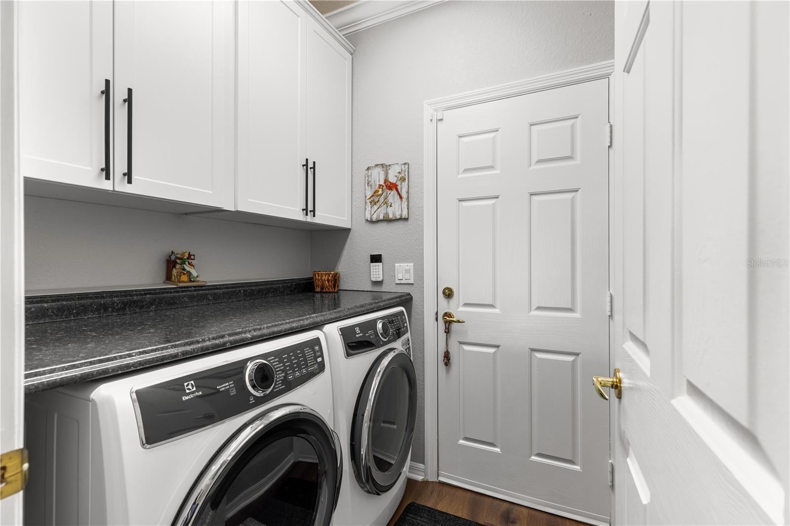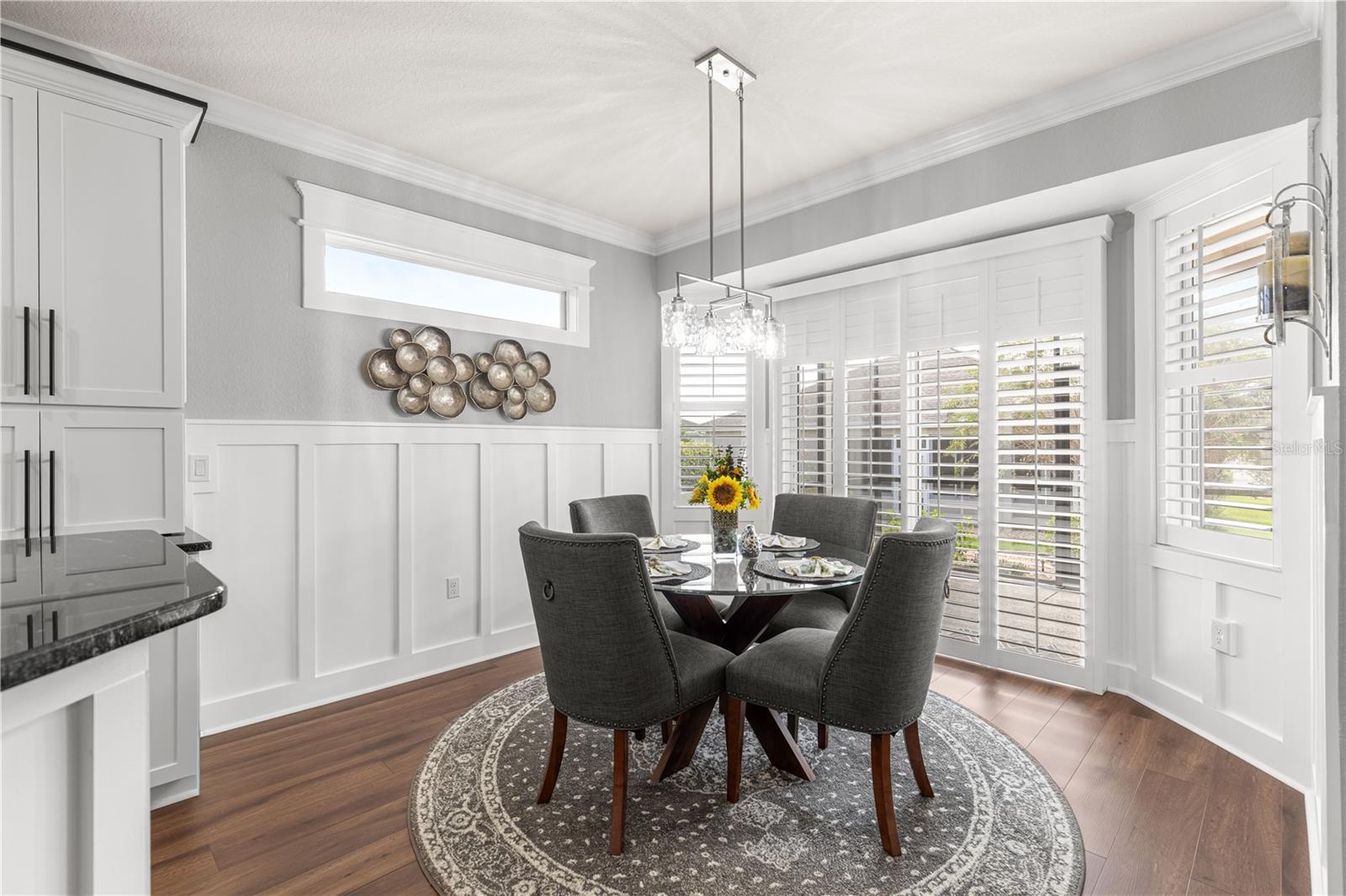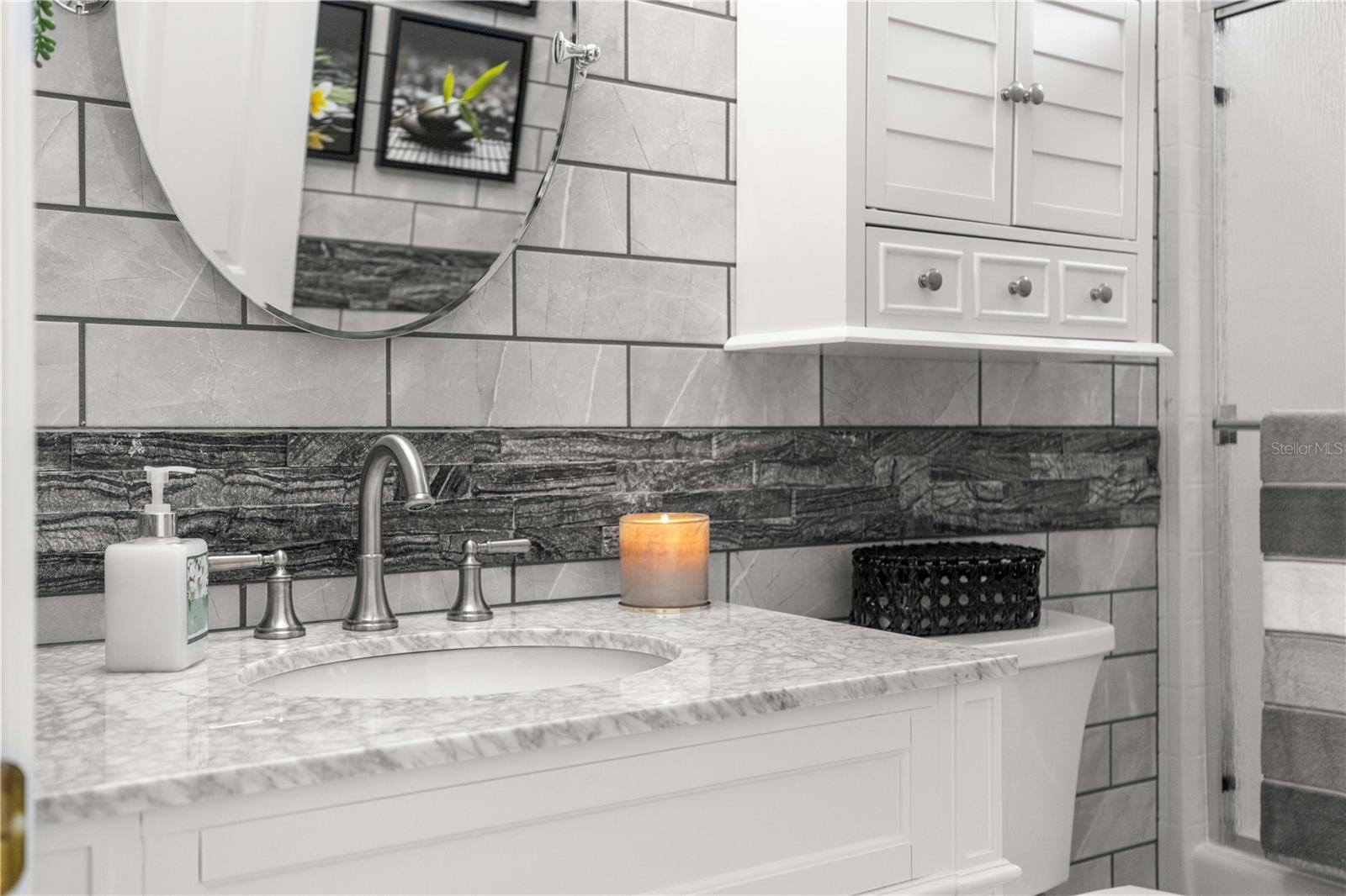 The craftsmanship is seamless and impeccable— you have to see this home in person! Located in the highly sought-after Del Webb Spruce Creek community, this beautifully updated 2 Bedroom, 2 Bathroom home has been meticulously enhanced from 2023 through 2025, offering a truly move-in-ready retreat filled with style and quality. Step inside to find luxury vinyl flooring throughout, designer finishes, and custom decorative trim, crown molding, and plantation shutters that add timeless elegance. The updated kitchen (2023) boasts KraftMaid soft-close cabinetry with roller shelving and kick drawers, granite countertops, a deep sink with designer faucet, and a full suite of stainless steel appliances. The bonus flex room (perfect as an office or third bedroom) showcases batten wall detailing and upgraded lighting with dimmers for added ambiance. The primary suite feels like a private sanctuary with its 2023 spa-style bathroom featuring a white KraftMaid vanity with makeup area, granite counters, decorative tile shower, and updated mirrors, lighting, and remote fan. The walk-in closet includes custom shelving for maximum storage. The second bedroom and bath have also been completely refreshed — from rain glass shower doors to designer tile, vanity, and lighting — everything is move-in ready and beautifully done. Outside, enjoy your expanded lanai and birdcage (2023), perfect for morning coffee or evening relaxation. The home’s freshly painted exterior (2023), new landscaping (2024), updated lighting, and new front storm door (2025) create wonderful curb appeal. The garage is just as impressive with Husky storage cabinetry (2025), interlocking flooring tiles (2025), attic fans (2024), and built-in functionality. Major mechanicals bring peace of mind with a new HVAC system (2024) serviced regularly, roof (2022), and water heater (2018) — all contributing to a worry-free lifestyle. Every update has been made with care, combining comfort, beauty, and practicality. This home truly offers the best of Del Webb Living - in a vibrant, active 55+ community with resort-style amenities, 36 holes of Championship Golf, Pickleball, Tennis, Fitness Center, 3 Pools (1indoor) Shuffleboard, Horseshoes, Bocce Ball, Walking path in Wooded Area and more clubs than you can imagine!!!!
