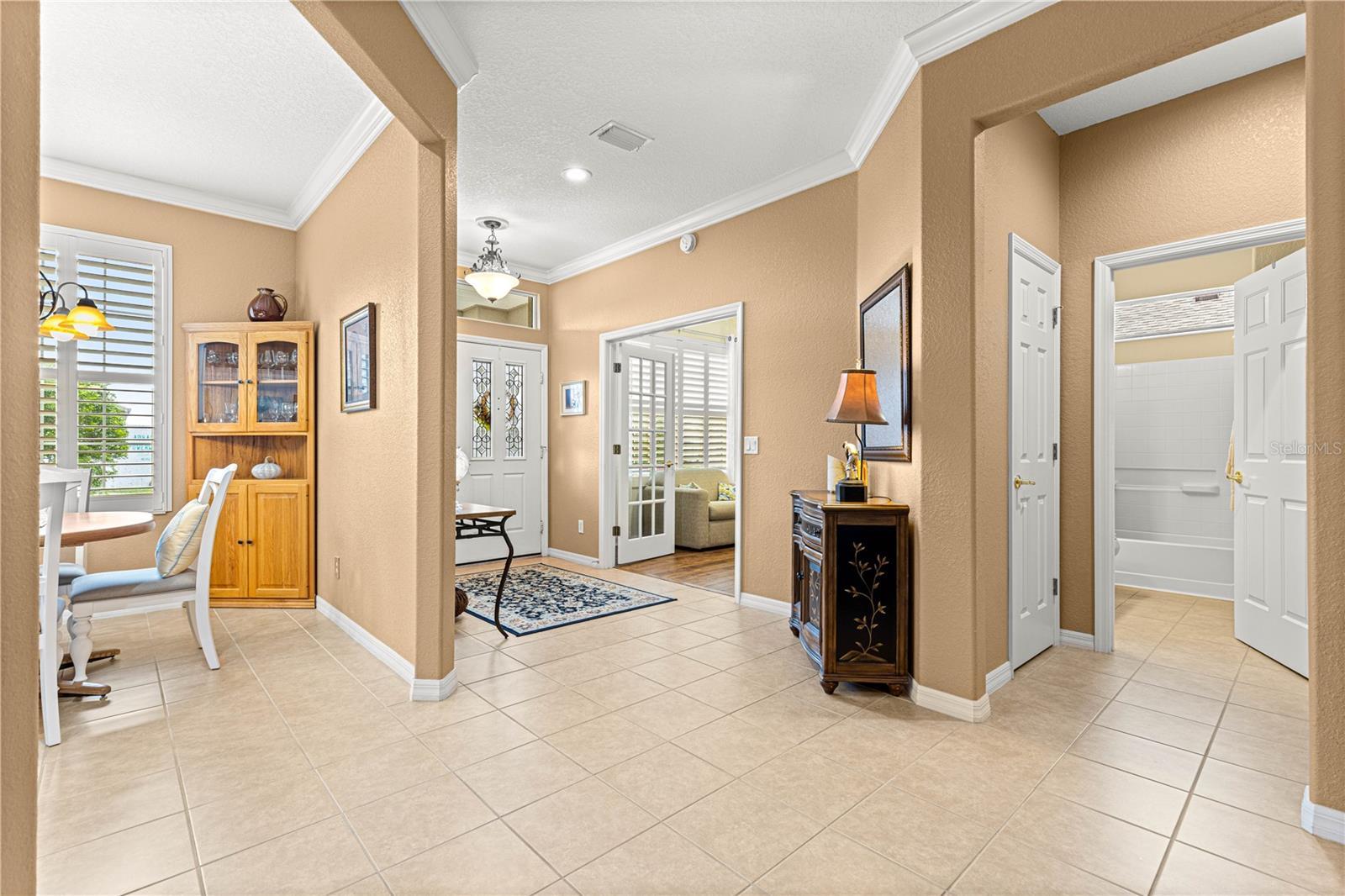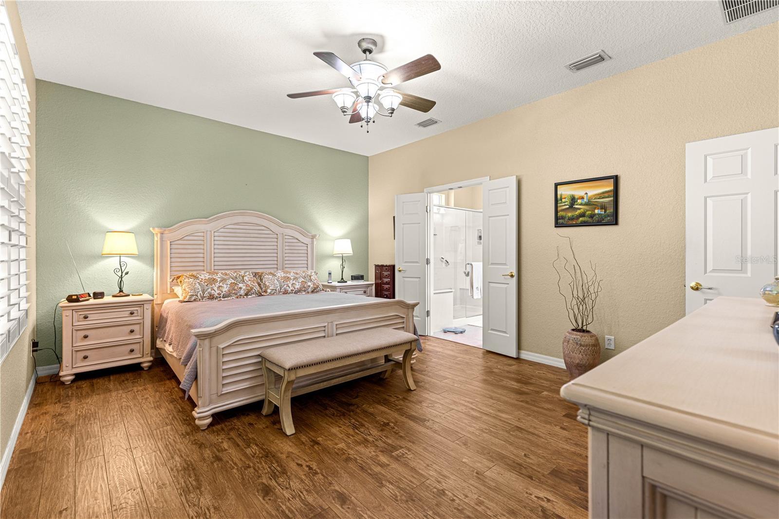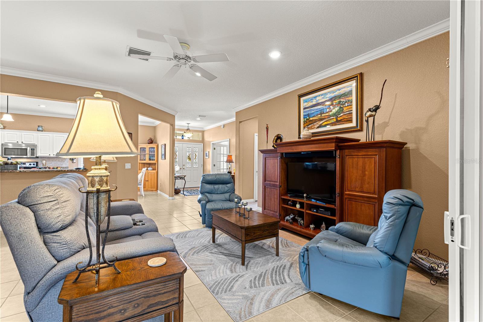 - Ceiling Fans(s), Crown Molding, Eat-in Kitchen, In Wall Pest System, Living Room/Dining Room Combo, Open Floorplan, Solid Wood Cabinets, Split Bedroom, Stone Counters, Walk-In Closet(s)