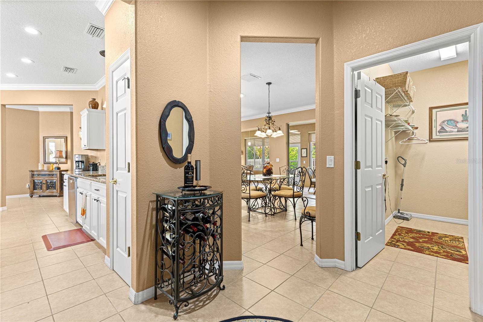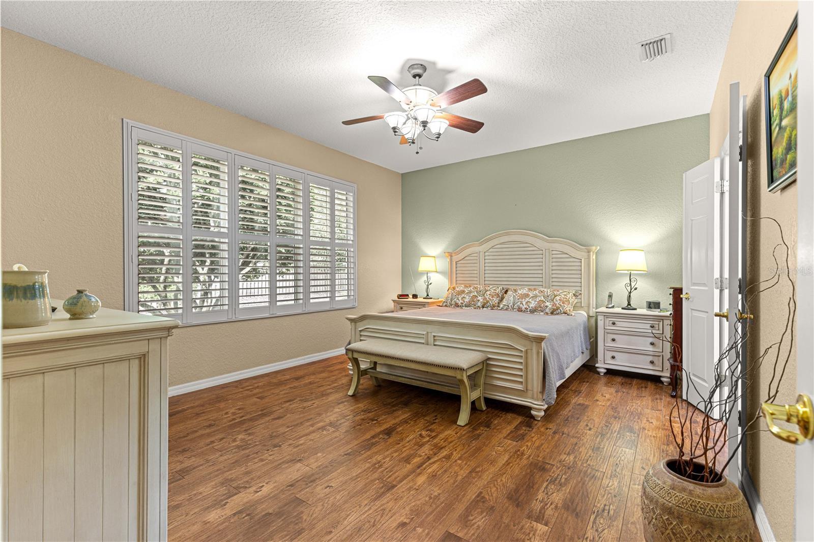 Step into a world of refined elegance and modern comfort in this exquisite 2270 sq. ft. Granville model, (the square feet include the large lanai under heat and air). Beautiful crown molding in the main areas of the home. The heart of this residence is the gourmet kitchen, where culinary dreams come to life. Gleaming granite countertops, pristine light cabinetry, and top-of-the-line stainless steel appliances with dinette area, create a space that's as functional as it is beautiful. The open concept living and dining area invites relaxation and entertainment, with ceramic tile and warm wood floors and large windows with beautiful plantation shutters that bathe the space in natural light. Retreat to the tranquil primary bedroom, a generous 220 sq. ft. sanctuary featuring plantation shutters and rich engineered wood flooring. The en-suite bathroom boasts a spa-like ambiance with a spacious vanity and double sized glass-enclosed (updated doors 2019) shower, no tub) A second bedroom and bathroom provides comfort and privacy for guests or family members. A dedicated office space provides the perfect environment and has French doors. The property also features a convenient spacious laundry room and loads of storage cabinets. Embrace indoor-outdoor living with the large lanai/Florida room, and outdoor brick paver patio where you can sip your morning coffee while enjoying views of the private surroundings. The garage is extended and has a golf cart area or use for storage or a workshop. The roof shingles were replaced in December 2021, the mini split air conditioner and heater were new in March 2021, the HVAC system for the house was new in October 2015. Attic plumbing was replaced in Jan. 2020 water heater replaced Jan. 2022. Solar attic fan, solar tube in living room. Front door glass panels new in 2009. Well maintained home. The home is surrounded by all block and stucco homes in the beautiful Sherwood neighborhood with close proximity to the back gated entrance of the community. This home is more than just a place to live; it's an invitation to elevate your lifestyle and make every day feel like a luxury retreat.