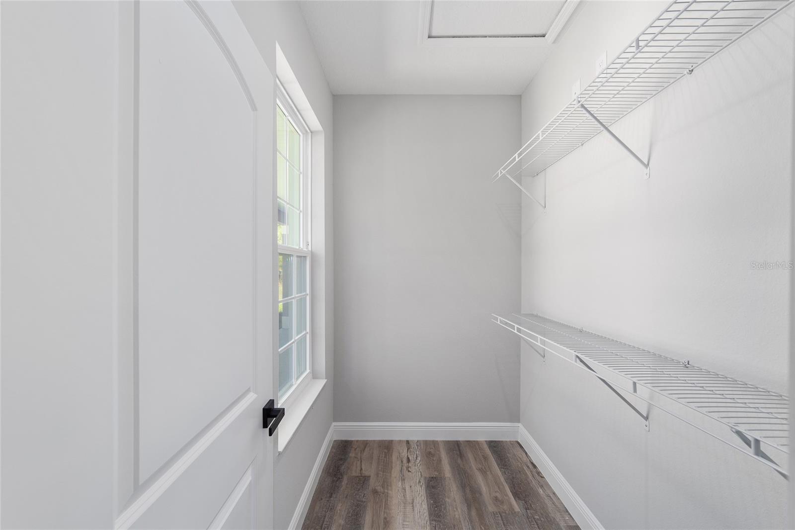 - Ceiling Fans(s), Eat-in Kitchen, Kitchen/Family Room Combo, Open Floorplan, Primary Bedroom Main Floor, Solid Wood Cabinets, Split Bedroom, Stone Counters, Thermostat, Walk-In Closet(s)