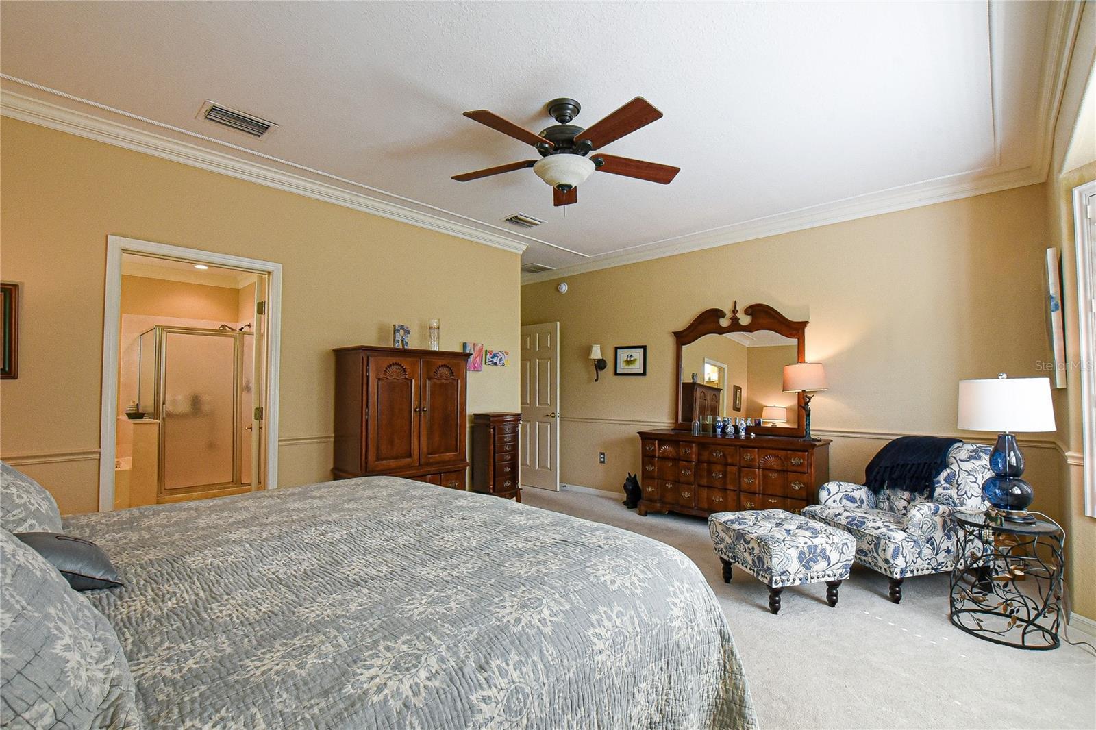 - Ceiling Fans(s), Crown Molding, Living Room/Dining Room Combo, Open Floorplan, Split Bedroom, Stone Counters, Walk-In Closet(s), Window Treatments