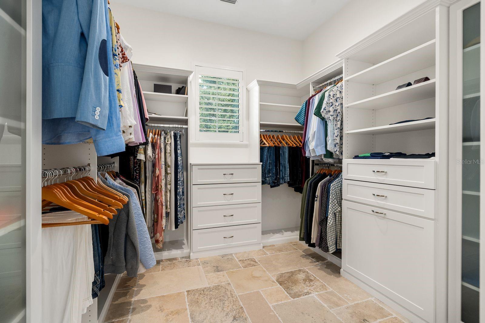 - Built-in Features, Eat-in Kitchen, High Ceilings, Kitchen/Family Room Combo, Primary Bedroom Main Floor, Solid Wood Cabinets, Thermostat, Tray Ceiling(s), Walk-In Closet(s), Window Treatments