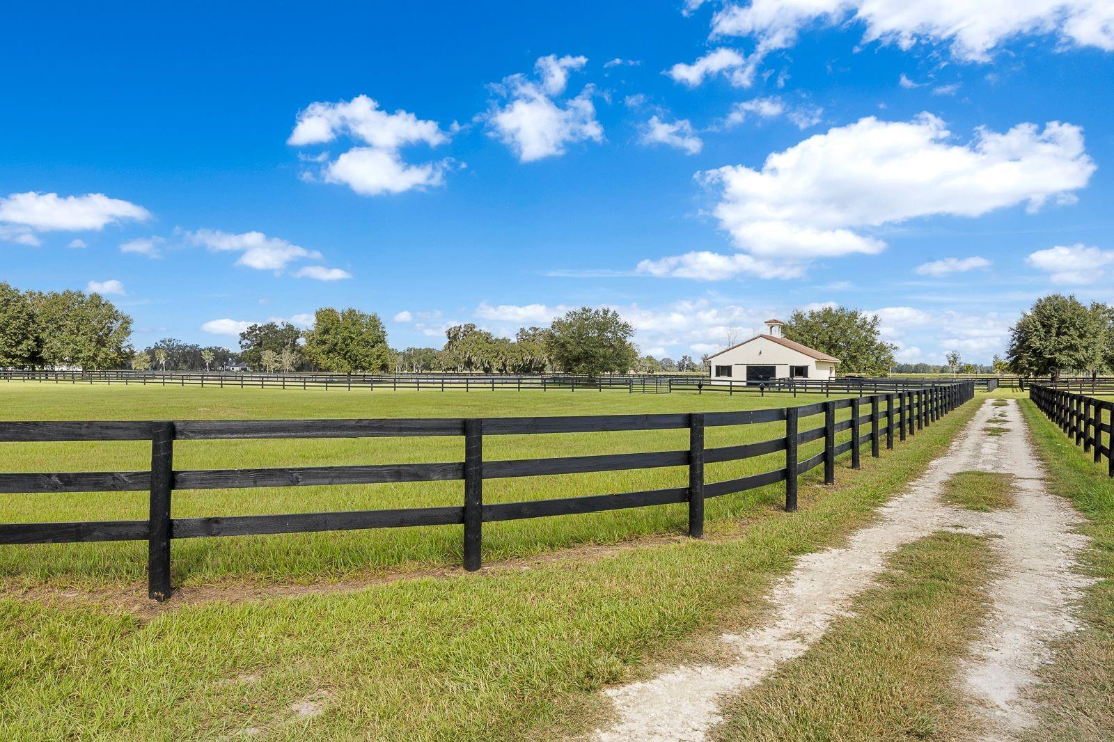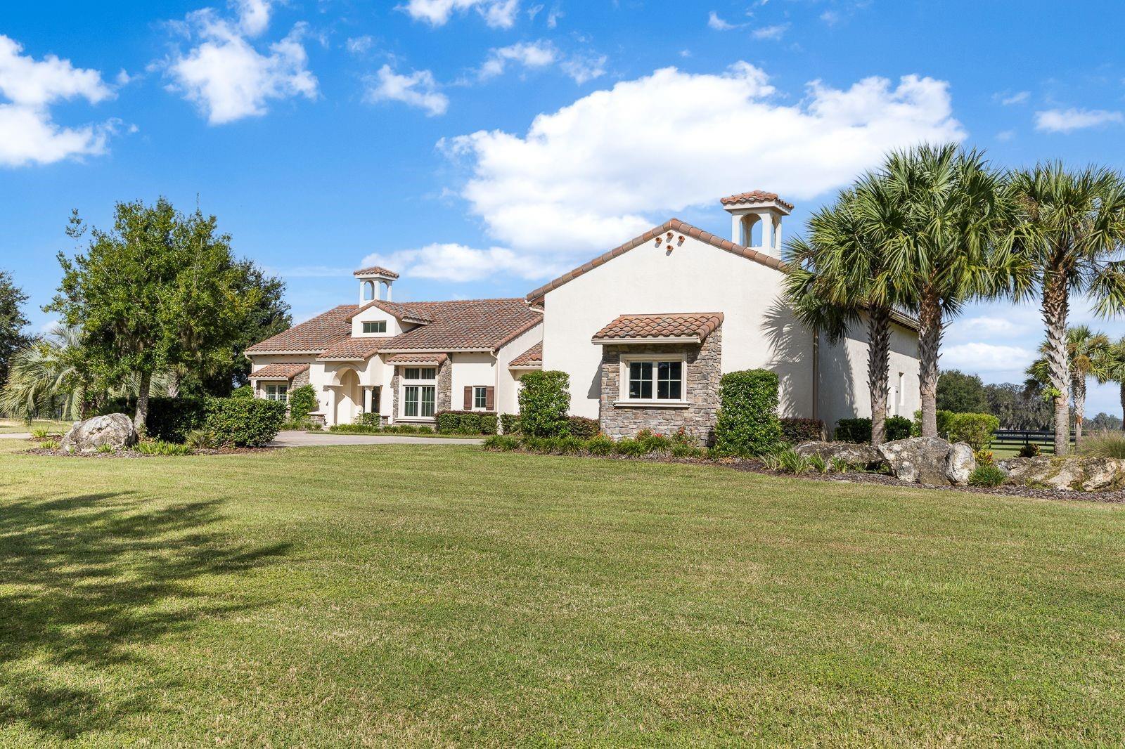 Set within the gated lakefront and equestrian enclave of Bel-Lago, this 6.32-acre equine estate embodies contemporary luxury at its finest. Completed in 2020, the custom-built residence showcases exceptional craftsmanship and materials throughout, and offered turn-key with the latest furnishings from Arhaus and Restoration Hardware. Soaring ceilings with tray detailing, travertine and hardwood flooring, and custom Dixie Workshop cabinetry throughout set a tone of refined sophistication. In the kitchen, natural light dances across the Taj Mahal quartzite countertops, and stainless-steel Viking appliances provide stylish performance. This property features 3 bedrooms + den, and 3.5 bathrooms. Each spacious bedroom is complemented with spa-inspired ensuite bathrooms, with your third guest suite offering an additional exterior private entryway, perfect for guests, multi-generational living, or farm staff. Beyond the walls, sweeping views of grand oaks and open paddocks unfold from the lanai, leading your eye to the heart of the property - a striking European style 3-stall block barn with Dutch stall doors, Equitan + SoftStall flooring, Pyranha fly spray system, spacious feed/tack rooms, stall cameras, and all the details that define a true equestrian haven. A newly laid 120’x200’ arena and lush fenced pastures make training and turnout effortless. Additional features include a whole-property (including barn) generator, and a comprehensive security system covering both the home and barn stalls for added peace of mind. From your backyard, enjoy direct access to Bel-Lago’s multi-use trail system - over 7 miles upon community completion - surrounded by 8,000+ acres of protected preservation. It’s a setting that offers peace and privacy, yet remains just minutes from Ocala’s major show venues, including the World Equestrian Center, HITS, and the Florida Horse Park. Sleek, serene, and meticulously maintained, this residence stands among Bel-Lago’s most refined - where modern design meets the timeless beauty of horse country.