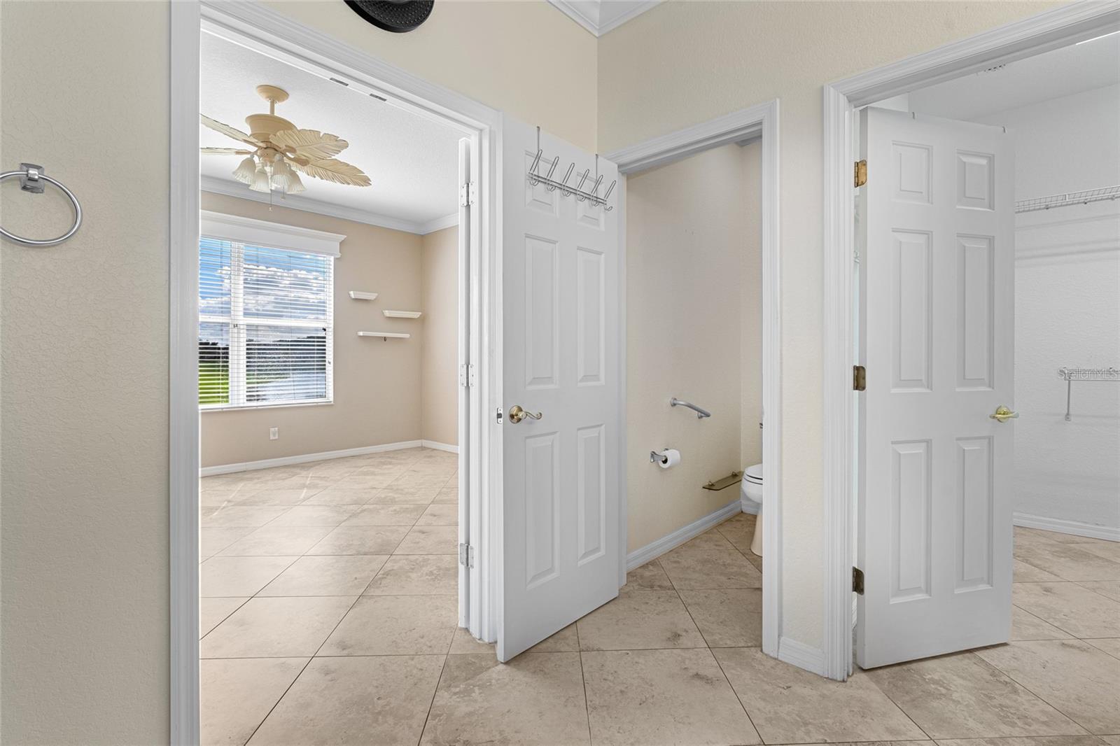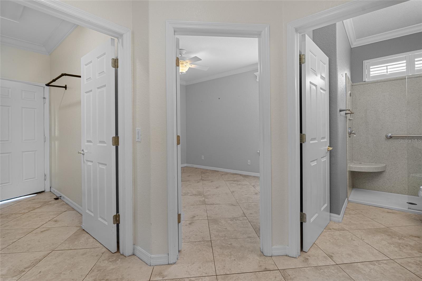 - Attic Ventilator, Ceiling Fans(s), Crown Molding, High Ceilings, In Wall Pest System, Kitchen/Family Room Combo, Primary Bedroom Main Floor, Solid Wood Cabinets, Split Bedroom, Thermostat, Walk-In Closet(s), Window Treatments