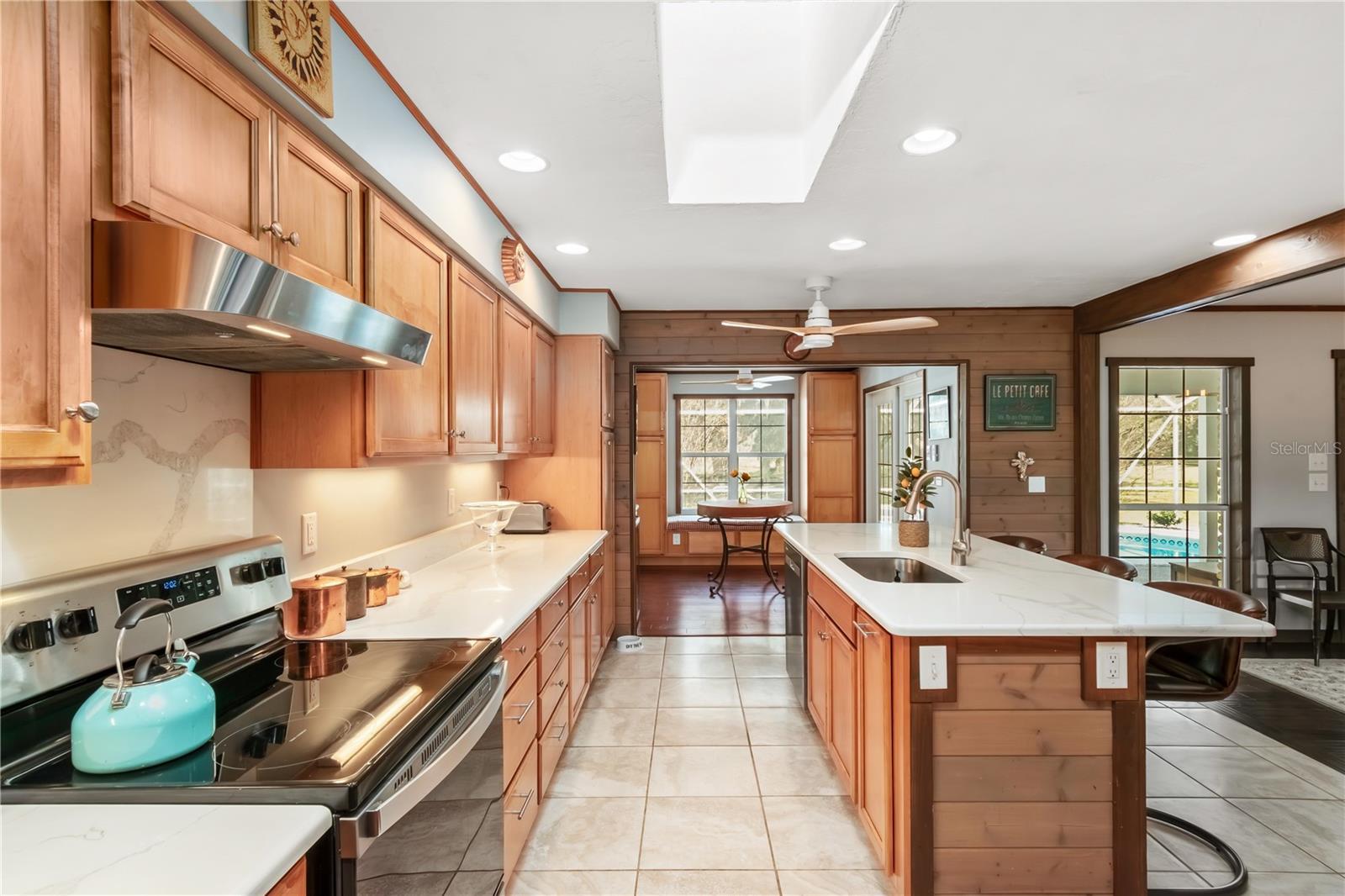 Situated amongst large beautiful horse farms in Marion County’s vibrant Horse Country just 4 miles from the World Equestrian Center (WEC), this 12.71-acre farm is a real gem. Beyond a gated entry and down a paved driveway, the property offers a lovely center aisle barn, a total of 5 paddocks with board fencing and nice, flat areas. The 9-stall concrete block center-aisle barn includes wash stalls/grooming stalls, an equipment and work area, as well as a new tack room / riders lounge with a full bath and laundry area. Near the main home, a newly constructed 2-stall concrete block barn includes its own wash area and tack/feed room. A 30-amp RV hookup with septic connection adds further convenience for guests or seasonal rental income. Towards the back of the property is a thoughtfully updated 3-bedroom, 2-bath home built in 1985. Spanning just under 3,000 sqft, the home features a split-bedroom floor plan, tall ceilings, and engineered hardwood flooring and tile in the kitchen and baths. The spacious great room features a lovely brick accent wall with fireplace, large windows, cathedral ceilings, and an inviting formal dining area. Directly open to the great room, the kitchen is well equipped for those who enjoy cooking with stainless steel appliances, extensive cabinet storage, quartz countertops, and a large center island with breakfast bar. An additional breakfast nook with built-in shelving and window seat also provides stunning views of the surrounding farm and pool, perfect for a quiet morning coffee or less formal meals. Each bedroom is oversized and inviting, though the primary suite is the true stand-out with an extra large layout, walk-in closet, and private en-suite bathroom with an overflow tub and dual vanities. Additional features of note include a dedicated office for those who work from home and a spacious garage. At the back of the home is a large screen-enclosed pool deck with recently resurfaced in-ground pool and spa, a covered area for seating, and an adjacent open-air covered deck. An additional climate-controlled flex building with covered carport is also established on the property, ready to serve as a gym, workshop, studio, or office as desired. With its seamless blend of updated residential space and professional-grade equestrian infrastructure, combined with the abundant beautiful live oaks, this turnkey property offers a rare opportunity to train, ride, and live in comfort!