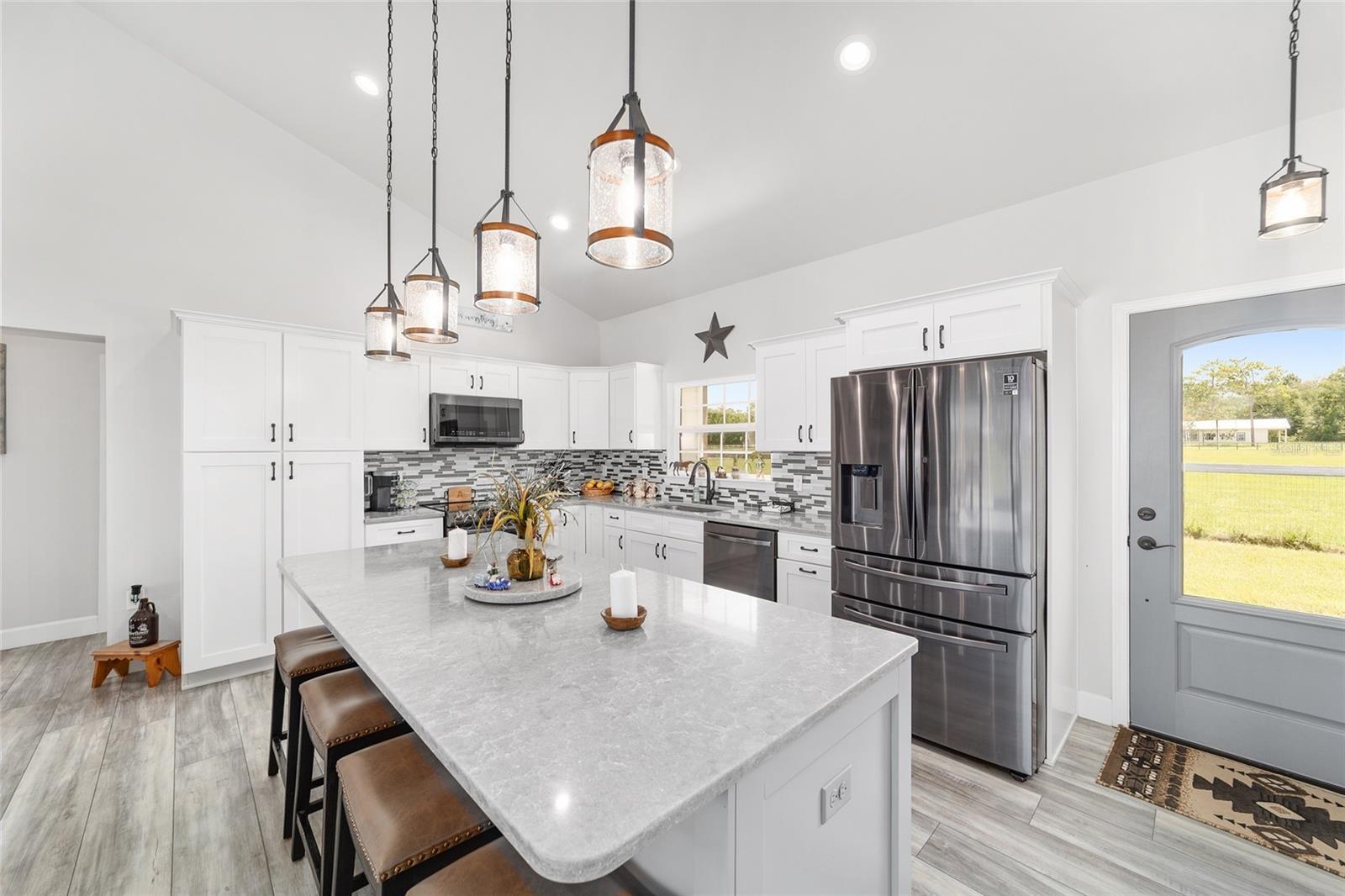 Back on the market. Buyers home sale fell through. Now is your chance to grab it before someone else does. Welcome to this charming 10.40-acre equestrian retreat in Williston, Florida, where functionality meets farmhouse charm. From the moment you arrive at the gated entrance—complete with elegant stone columns—you’ll feel the pride of ownership and thoughtful planning that went into every inch of this stunning property. A long driveway leads past lush fenced pastures to the heart of the farm, where a 2022-built center aisle horse barn and a modern farmhouse-style home await. The 48' x 48' center aisle barn features 8 stalls, 4 with private turnout pens and end gates for easy access to the pastures. There’s a wash rack, two flexible open bays that can become additional stalls or hay storage, and a 12' x 24' insulated, air-conditioned tack room with a 5' roll-up door—ideal for moving your tack and feed in comfort. Rubber flooring throughout the aisle, stalls, and tack room adds to the functionality and ease of maintenance. For the equipment or hobby enthusiast, a second 40' x 84' pole barn (also built in 2022) offers five open bays with an additional 12' x 60' overhang—perfect for tractors, trailers, or RVs. A 24' x 40' enclosed garage with two large roll-up doors provides space for a workshop, toy storage, or additional farm use. In addition, you have 200-amp electric service to the home and both barns, plus two RV hook-ups (one 30amp & one 50amp) and dual electric meters, this property is designed for versatility. At the top of the farm sits the quaint 3-bedroom, 2-bath home, built in 2022 and overflowing with charm. The farmhouse kitchen features stainless steel appliances, glass backsplash, a center island, and bar seating that opens to the spacious living area. A retractable glass wall extends your living space onto the screened lanai, which features a heated saltwater pool (added 2023), all facing west for breathtaking sunsets after a long day. This split floor plan offers a private master suite, while the 3rd bedroom, complete with sliding barn doors and Murphy Bed doubles as an office providing work-from-home potential. Another great feature of the home is a 24' x 36' attached 3-car carport making everyday access convenient rain or shine. Enjoy panoramic views of your horses from nearly every window. Four large pastures surround the home, and the fifth pasture features a riding arena, ideal for any discipline. Tucked away in peaceful countryside yet still just 6 miles to Williston, this property offers the best of both worlds. You're also 20 minutes to the HITS showgrounds, 25 minutes to the World Equestrian Center, 35 minutes to Gainesville, 30 minutes to Ocala, and less than an hour to the Gulf of Mexico for beachside escapes and fishing adventures. Whether you're training, relaxing, or entertaining, this turn-key farm has everything you need to live the equestrian dream. The sunsets here are unforgettable—and so is the opportunity.