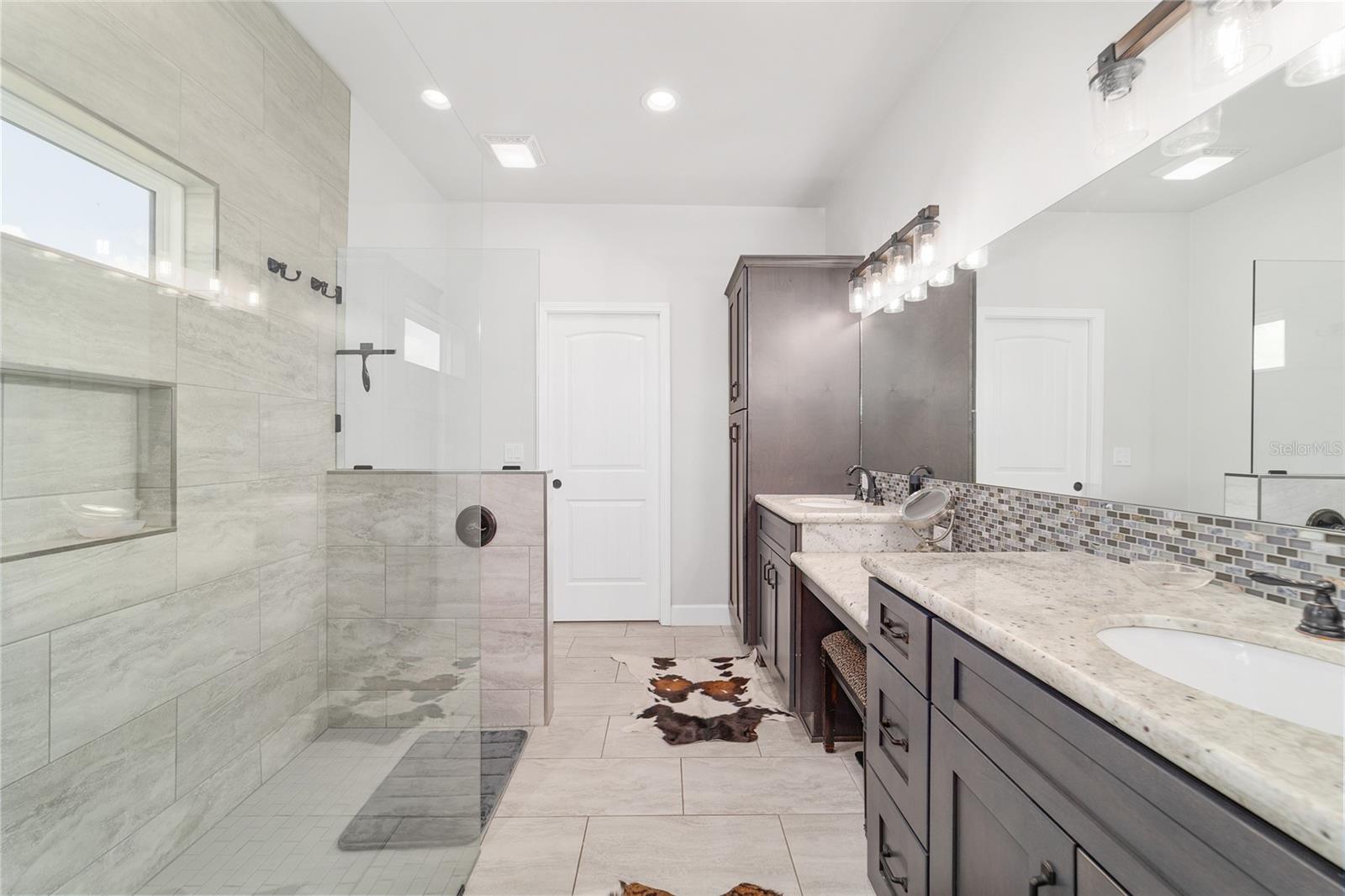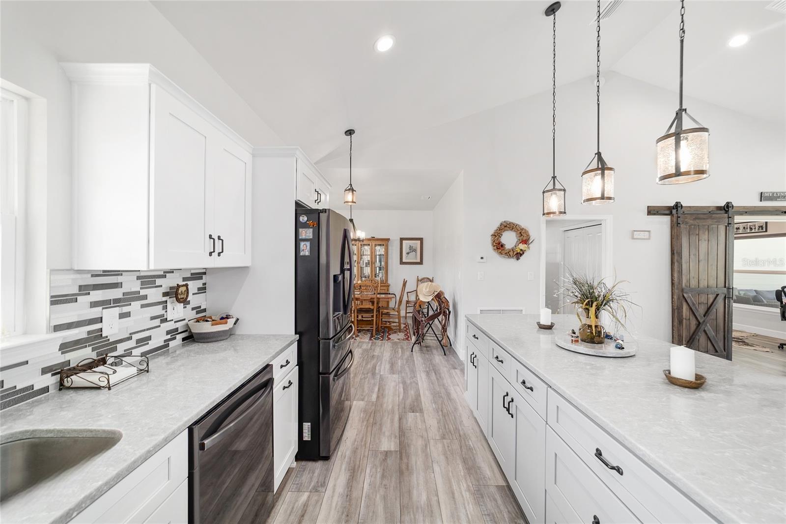 - Cathedral Ceiling(s), Ceiling Fans(s), Eat-in Kitchen, Kitchen/Family Room Combo, Open Floorplan, Primary Bedroom Main Floor, Solid Surface Counters, Split Bedroom, Walk-In Closet(s)