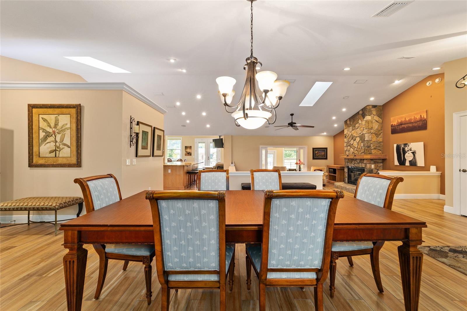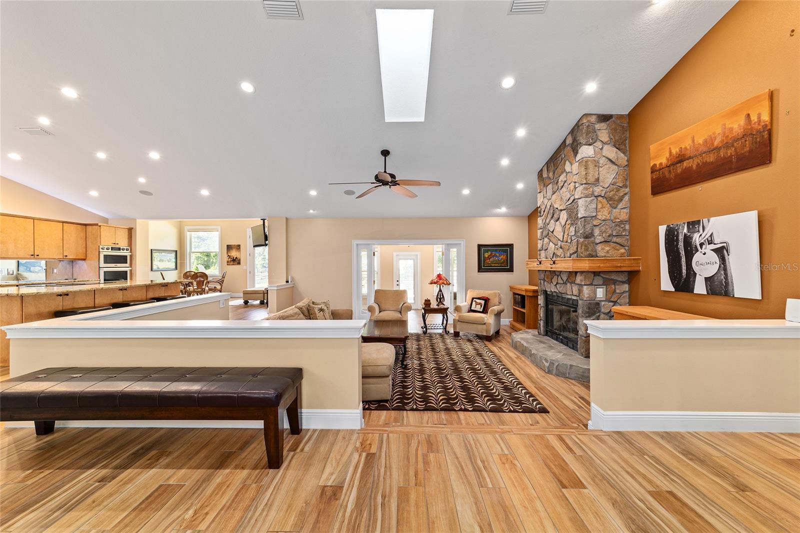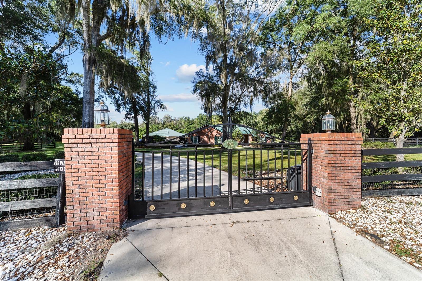 Under contract-accepting backup offers. No HOA, Home comes furnished- Move in ready! Escape to serene equestrian living in this beautifully maintained Southeast Ocala property set on more than 4 tranquil acres in the sought-after Turning Hawk Ranch community. Surrounded by grand oak trees and secured by fencing and a private gate, this property is 5 minutes to the Florida Greenway—perfect for trail rides or peaceful nature walks. Home is complete with 3 full bedrooms and 3 full bathrooms- Two Den/Offices areas- one of the Dens could be converted into a 4th bedroom. Inside, the single-story home welcomes you with an airy, open layout featuring vaulted ceilings, elegant porcelain tile floors, and an abundance of natural light streaming through skylights. The spacious living room centers around a stunning gas fireplace, creating a warm and inviting atmosphere. The chef’s kitchen offers generous cabinetry and counter space, premium JennAir stainless appliances, a center island with cooktop, and a well-organized pantry. Home complete with an electric fire pit & regular fire pit on the patio. The owner’s suite is a true retreat, complete with a walk-in closet and a luxurious bath that includes dual sinks, a walk-in shower, and a soaking tub. Two additional bedrooms, each with their own private baths, offer comfort and flexibility for guests or family. The home also includes a dedicated office or den, wet bar, and a formal dining area—ideal for entertaining. A breezeway connects to the detached two-car garage for convenience, while the expansive back deck and paver patio provide perfect spots for gatherings or quiet evenings under the stars. Home includes a whole house generator, reverse osmosis system- water softening system and security surveillance system. Equestrians will love the 4-stall concrete barn, thoughtfully designed with matted stalls, automatic waterers, fly spray system, wash racks, a tack room, and covered equipment storage. The paddocks are securely fenced and dotted with shade trees, making it ideal for horses of any discipline. Located just minutes from the Florida Horse Park and a short drive from downtown Ocala’s shopping and dining, this private estate combines comfort, functionality, and the equestrian lifestyle at its best—without the restrictions of an HOA.