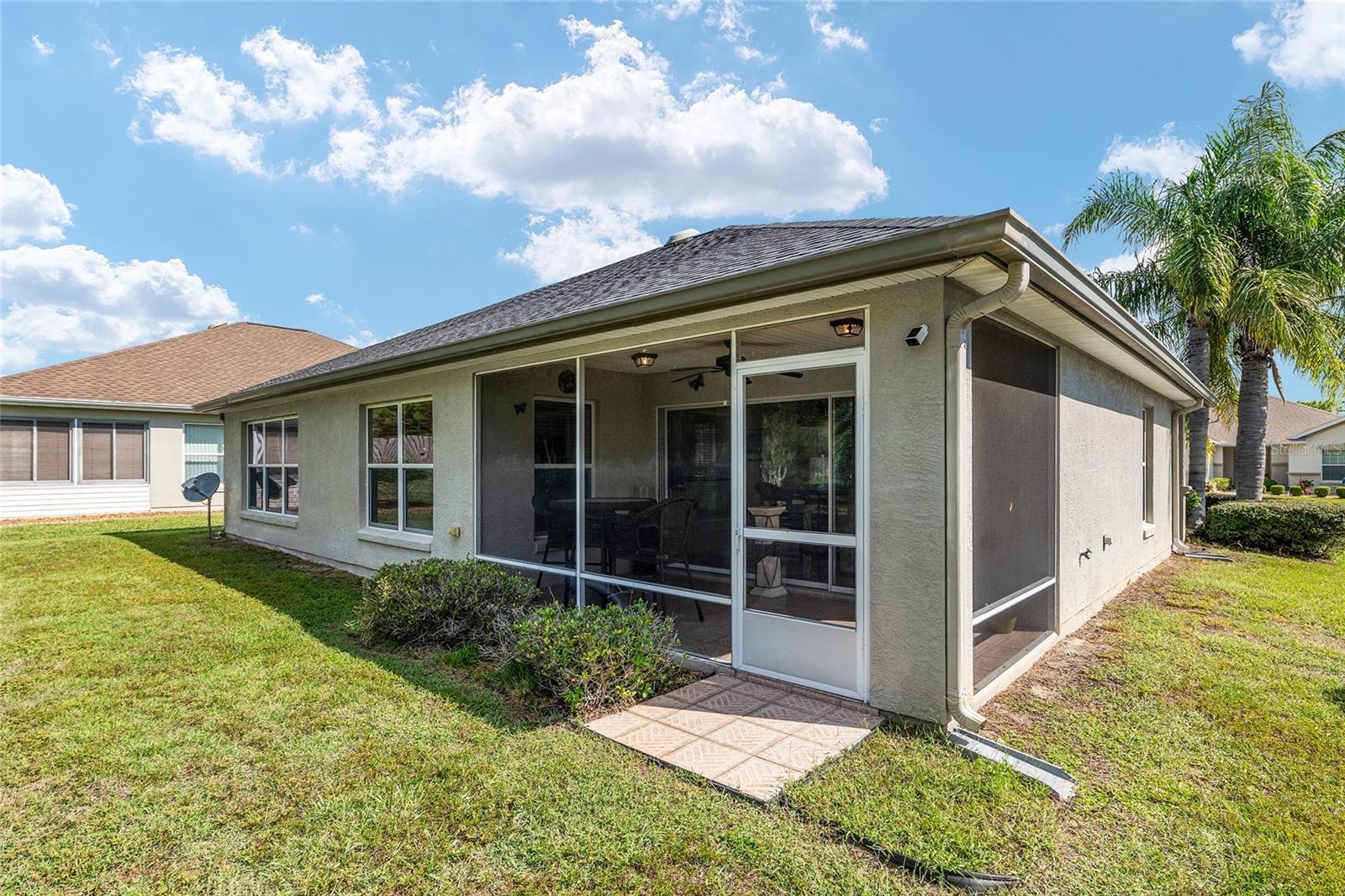 This beautifully maintained Alydar model offers 2 bedrooms, 2 baths, and 1,346 sq ft of comfortable living space. The home features tile flooring in the main areas, cozy carpeted bedrooms, and an open layout filled with natural light. The kitchen showcases stainless steel appliances and overlooks the living and dining spaces. A triple slider opens to the tiled, screened in lanai with quiet views of your semi private back yard. Additional features include an inside laundry room, paver driveway, roof replaced in 2019, and a new AC in 2024. Enjoy the active lifestyle and resort style amenities of Del Webb Spruce Creek Golf & Country Club including golf, pools, fitness center, and community clubs.