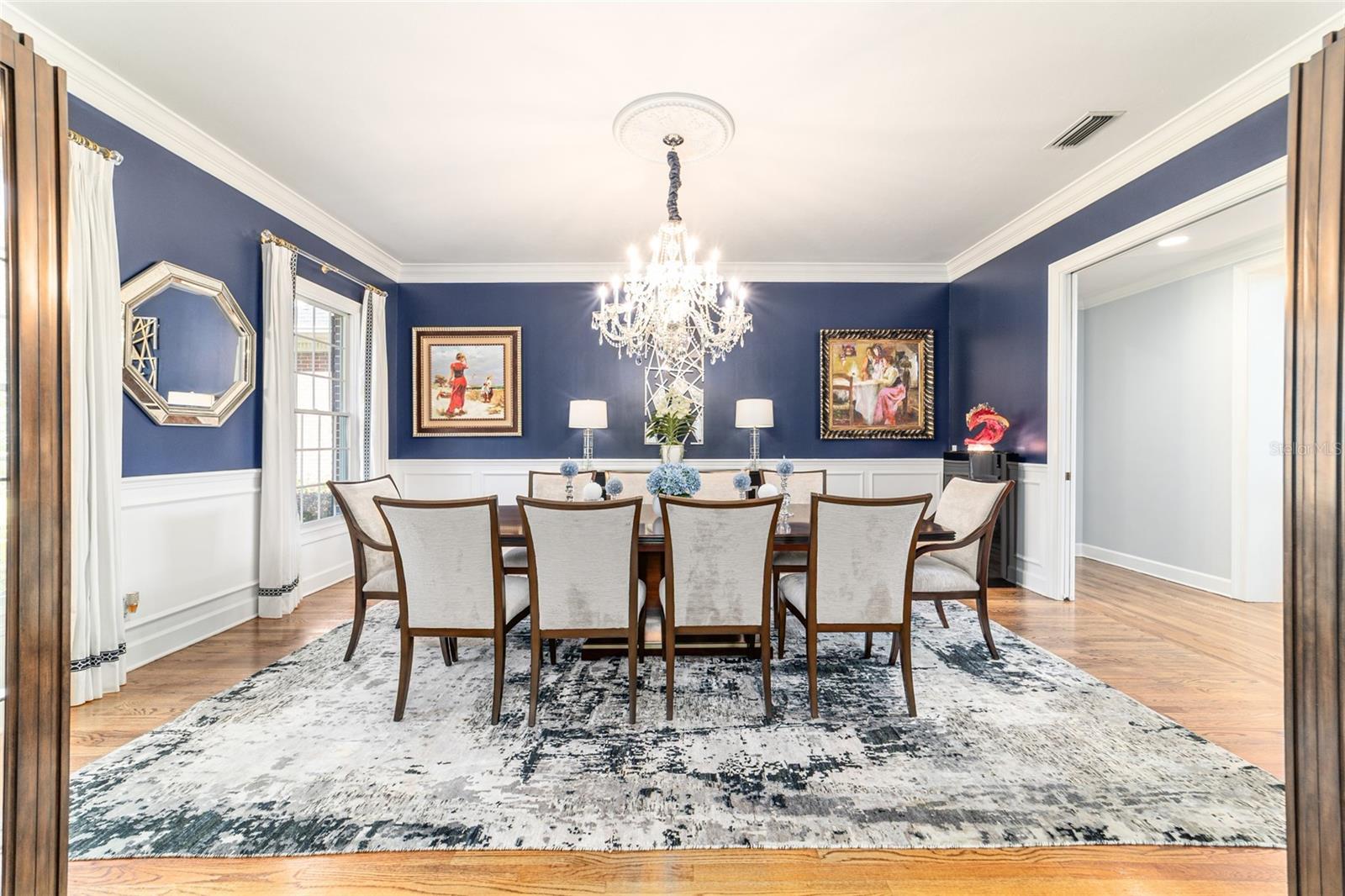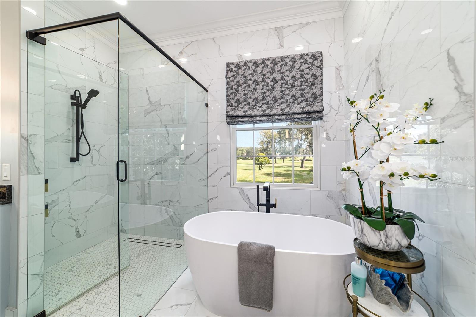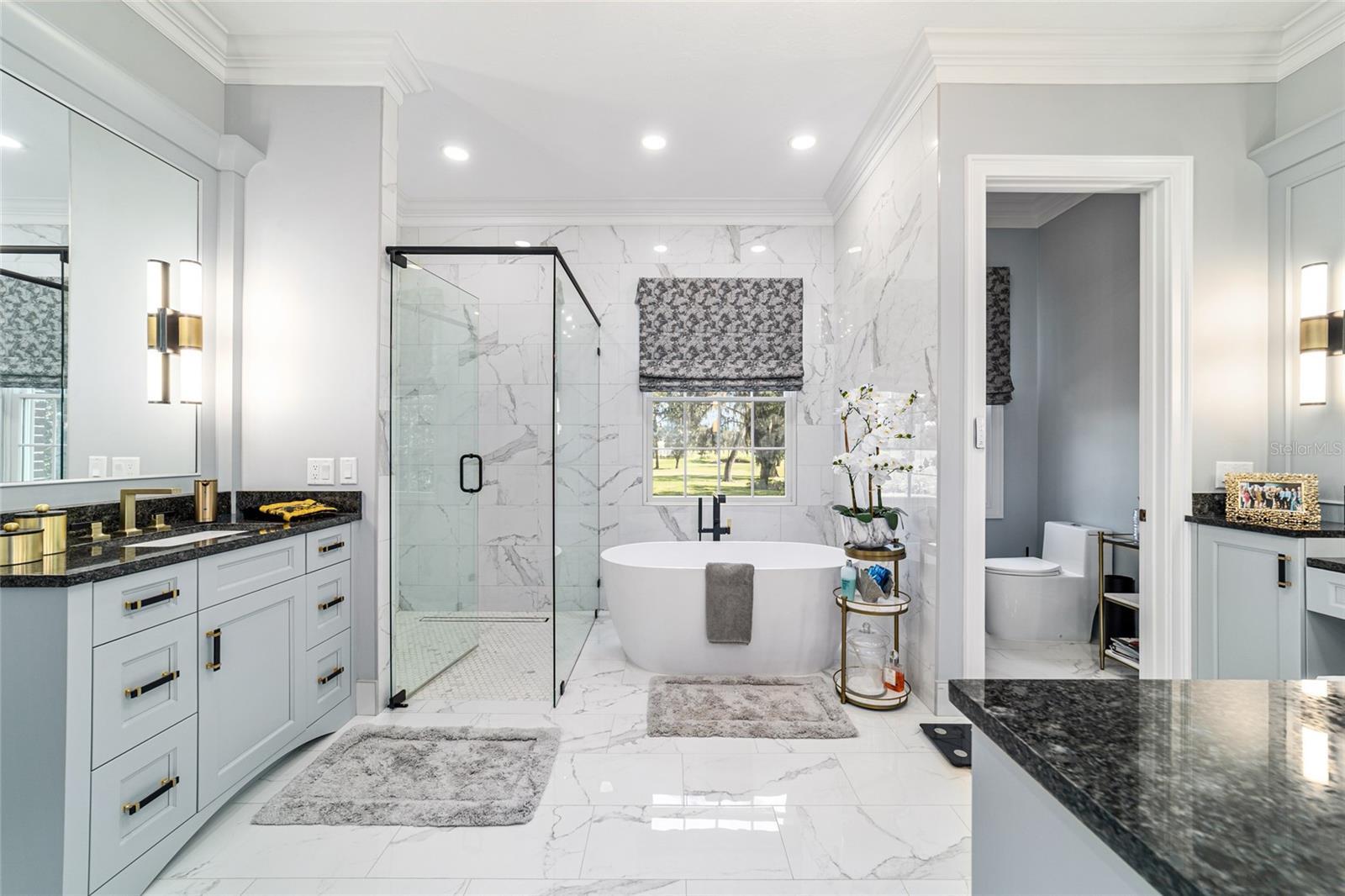 - Built-in Features, Crown Molding, Eat-in Kitchen, High Ceilings, Primary Bedroom Main Floor, Stone Counters, Walk-In Closet(s), Window Treatments
