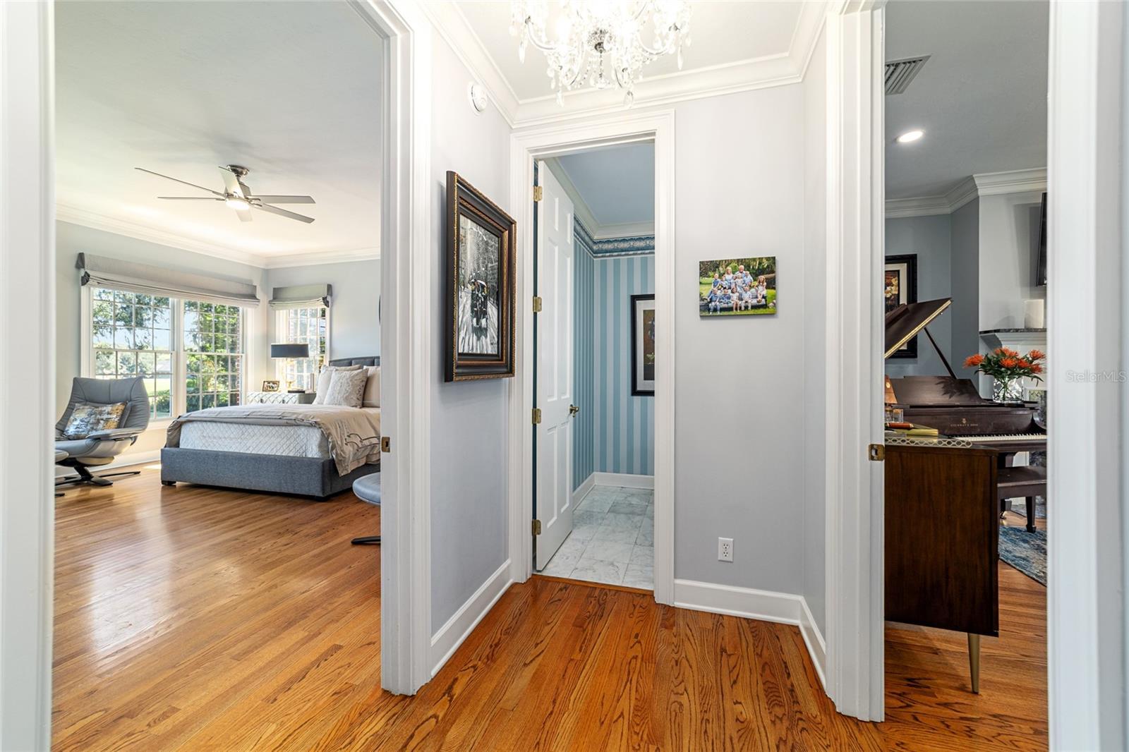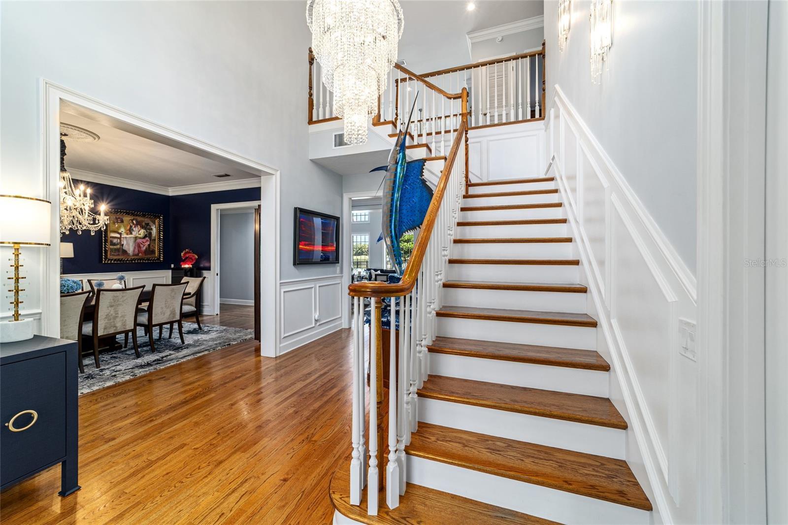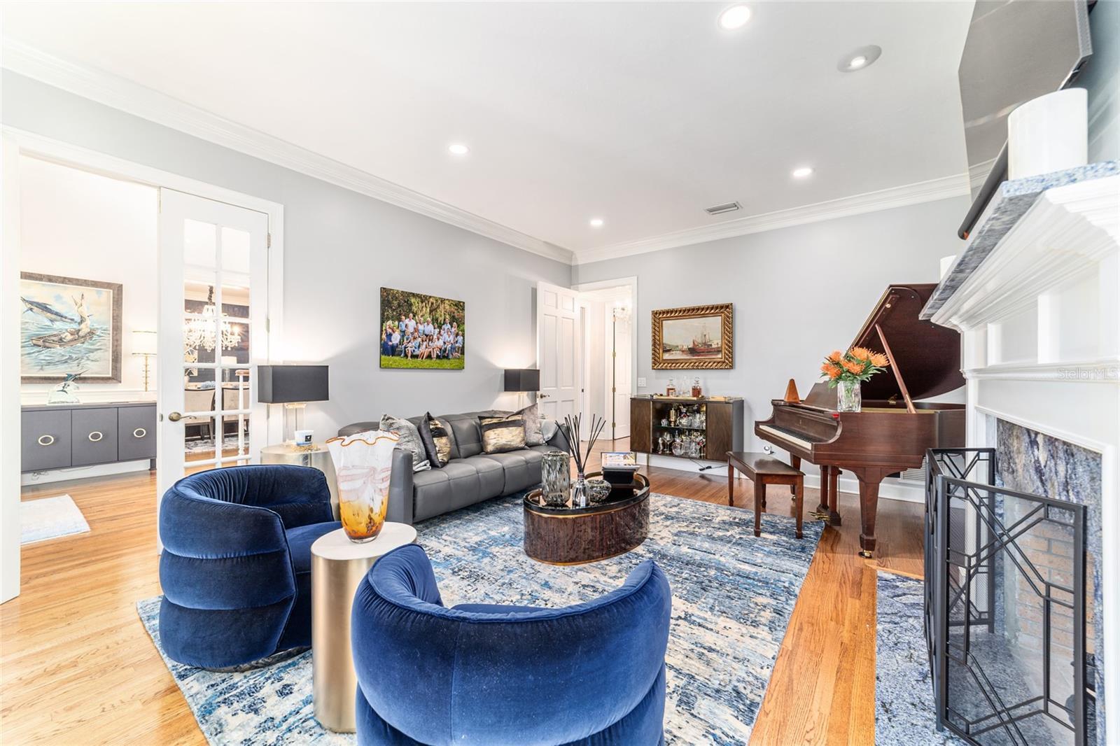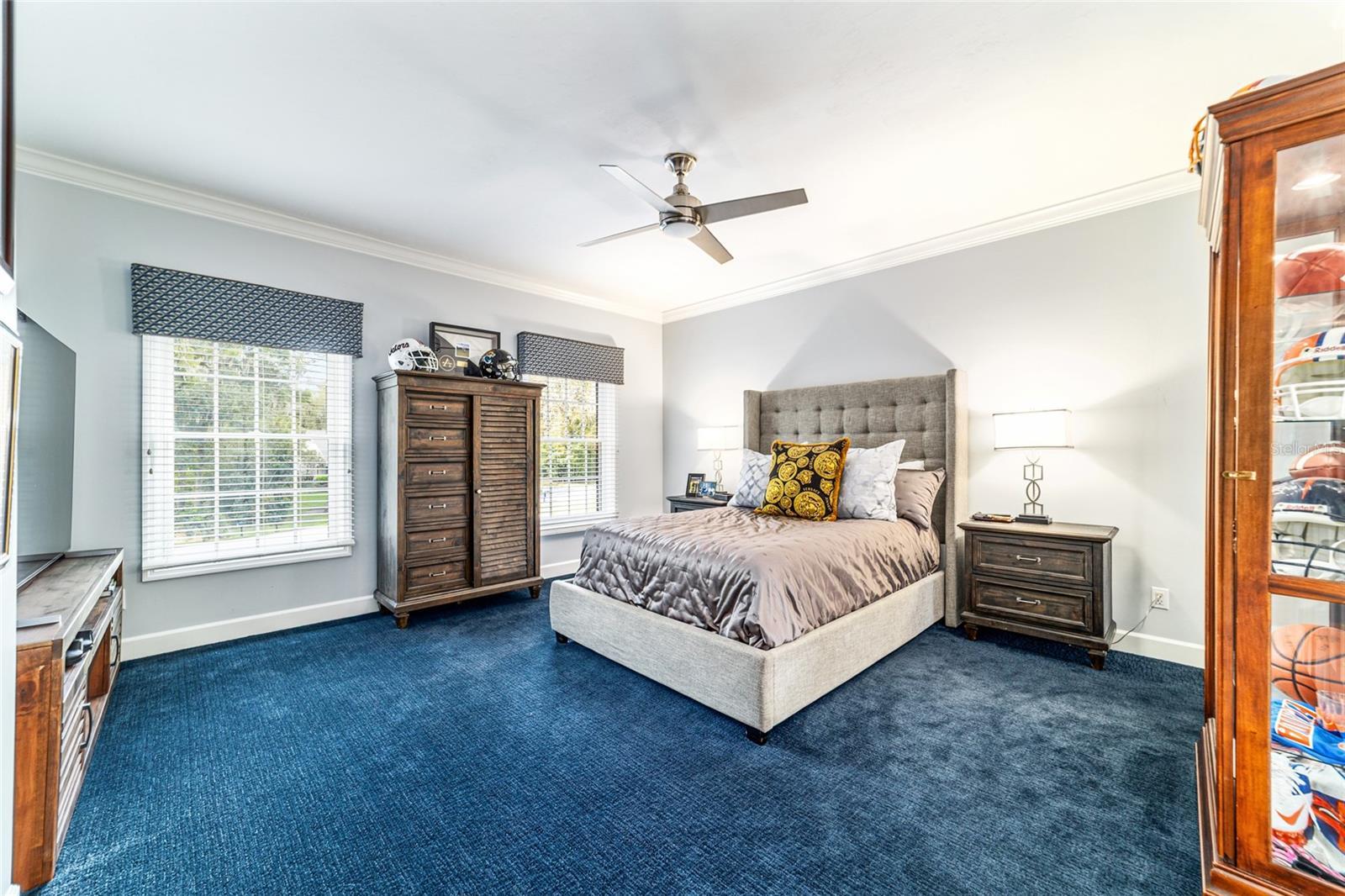 - Built-in Features, Crown Molding, Eat-in Kitchen, High Ceilings, Primary Bedroom Main Floor, Stone Counters, Walk-In Closet(s), Window Treatments