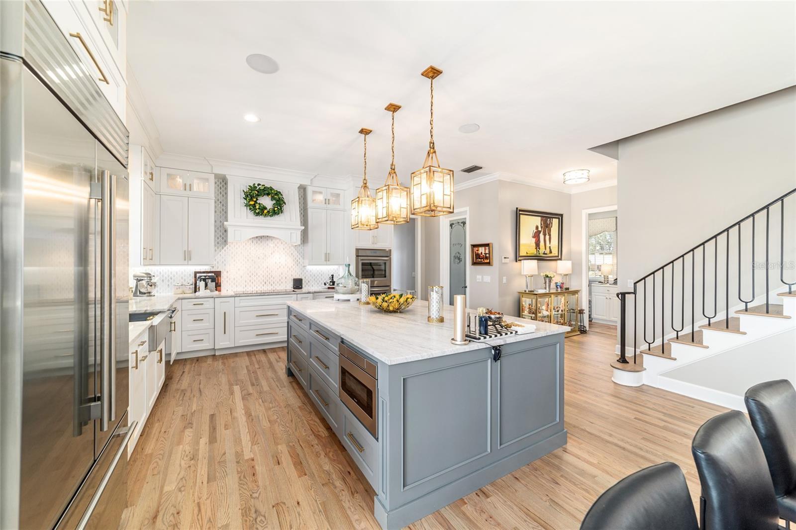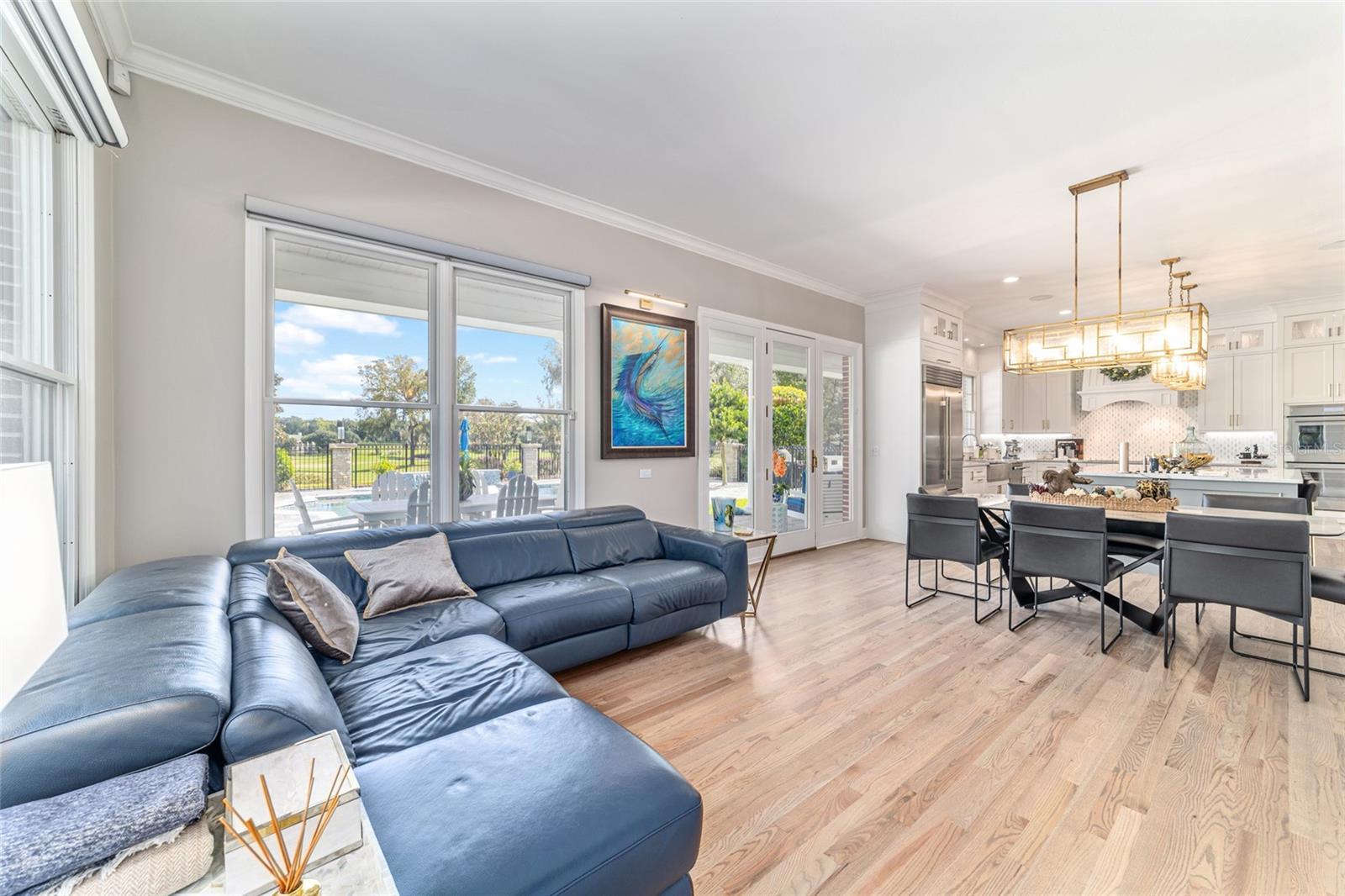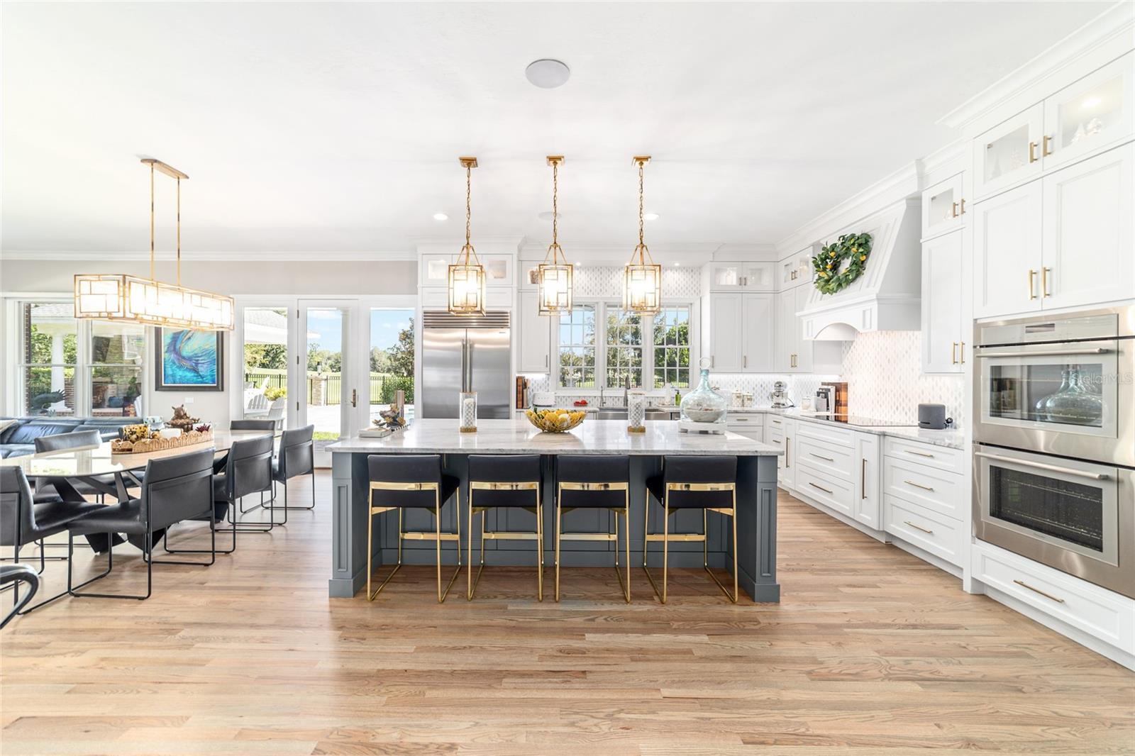 This stunning two-story red brick estate offers timeless charm, modern updates and breathtaking golf course views overlooking the 15th hole and beyond. Featuring 4 bedrooms, 3 full baths and 2 half baths, every space has been thoughtfully designed for everyday living. Step through the foyer and you’re greeted by a custom staircase leading to the second floor of the home. The main floor features a formal living room with a fireplace and mantle that have been beautifully updated, a spacious formal dining room and a family room that extends 2 stories, where walls of windows fill the space with natural light. A second wood-burning fireplace framed by custom built-ins anchors this inviting gathering space. The gourmet kitchen, fully remodeled in 2018, truly is the heart of the home with white wood cabinetry, gorgeous granite countertops, double ovens and a thoughtful layout that opens to a breakfast area and cozy sitting room, complete with a built in cabinet and beverage bar. The refinished hardwood floors flow beautifully throughout this space, extending to the staircase that leads to a large bonus/media room. The primary suite, completely redesigned in 2023, has exquisite finishes and a spa-inspired bath. Up the main staircase, you’ll find a loft area with a built-in desk and three additional bedrooms, with two sharing a Jack-and-Jill bath and one with a private ensuite, both featuring updated showers and modern touches. Outdoors, enjoy your own private oasis. The saltwater pool, fully redone in 2024 with new marcite, stone and updated pool equipment is surrounded by beautiful bluestone pavers and is fully fenced with a gate for privacy. Entertain year-round under the 25' x 25' pavilion, complete with a wood-burning fireplace and TV hookup, making it the ultimate space for weekend gatherings or quiet evenings by the fire. In addition, the grounds are beautifully landscaped and enhanced by extensive landscape lighting. Additional highlights include an air-conditioned and tiled 3-car garage, perfect for a workshop or home gym. The laundry room update (scheduled for completion December 2025) will feature custom cabinetry matching the kitchen for a cohesive, elevated look throughout the home. This home also has a tankless hot water heater, whole house generator, brand new sub zero refrigerator and all electric drapes. Don't miss this one in the beautiful Country Club of Ocala.